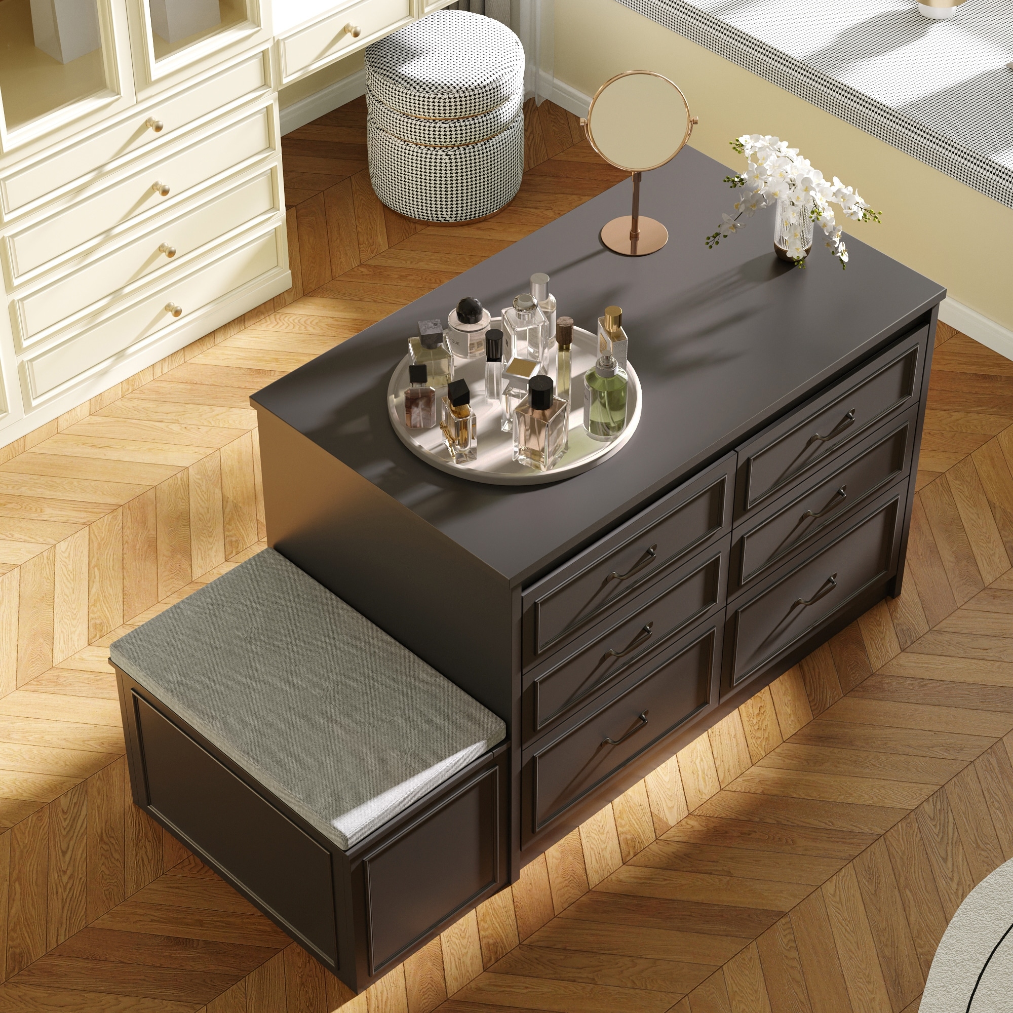 White Dresser with Seat and Storage 6 Drawer Closet Island Cabinet Bedroom Organization Bench