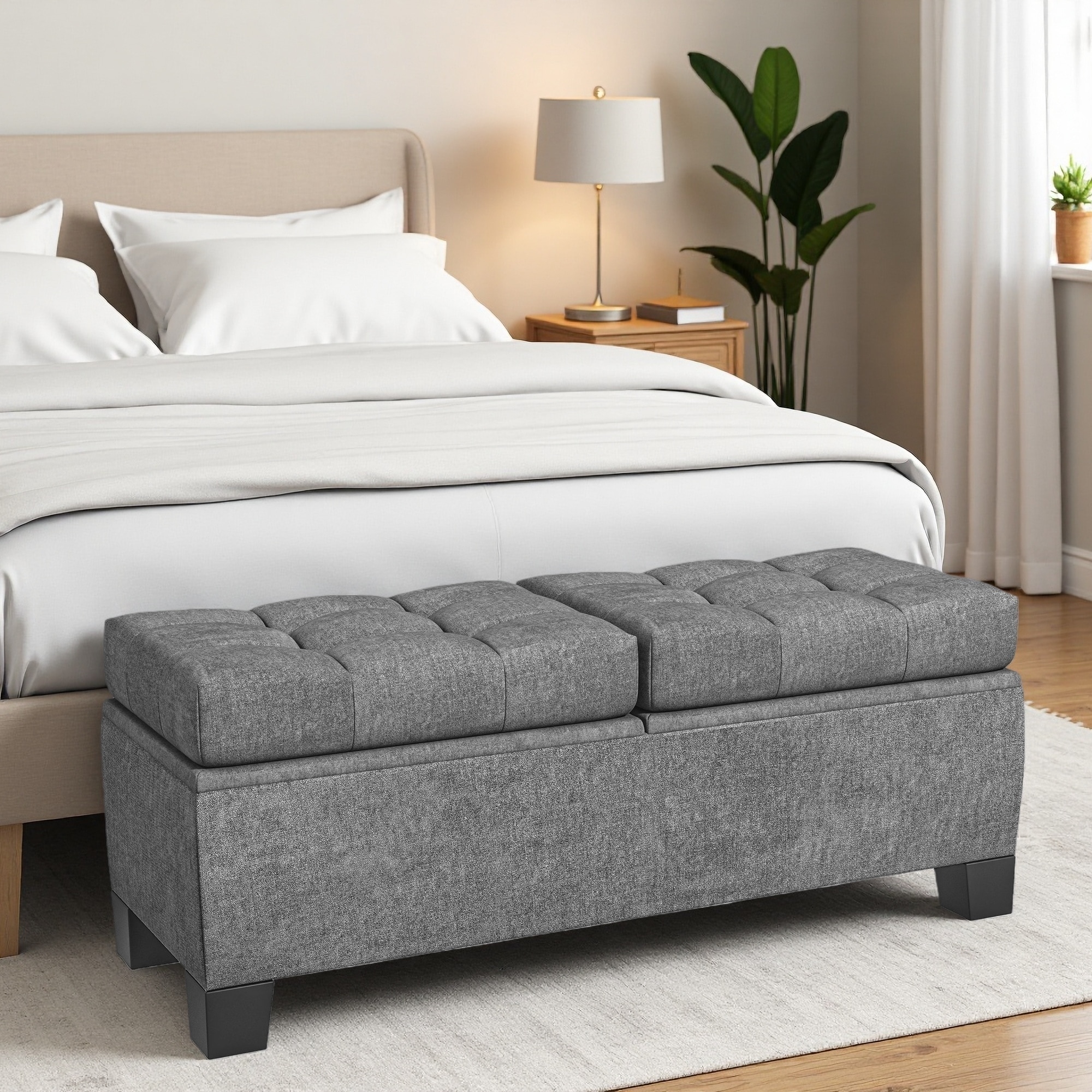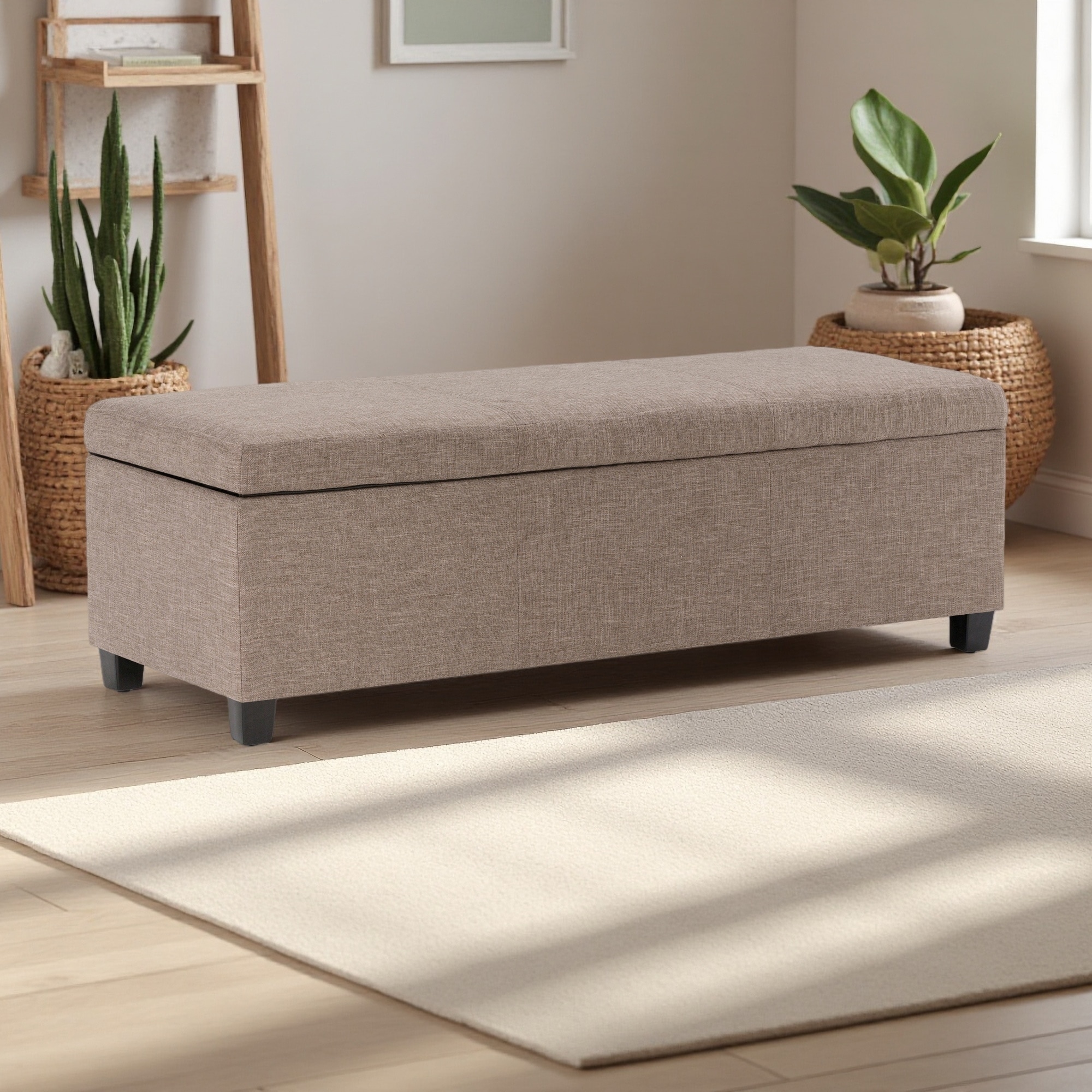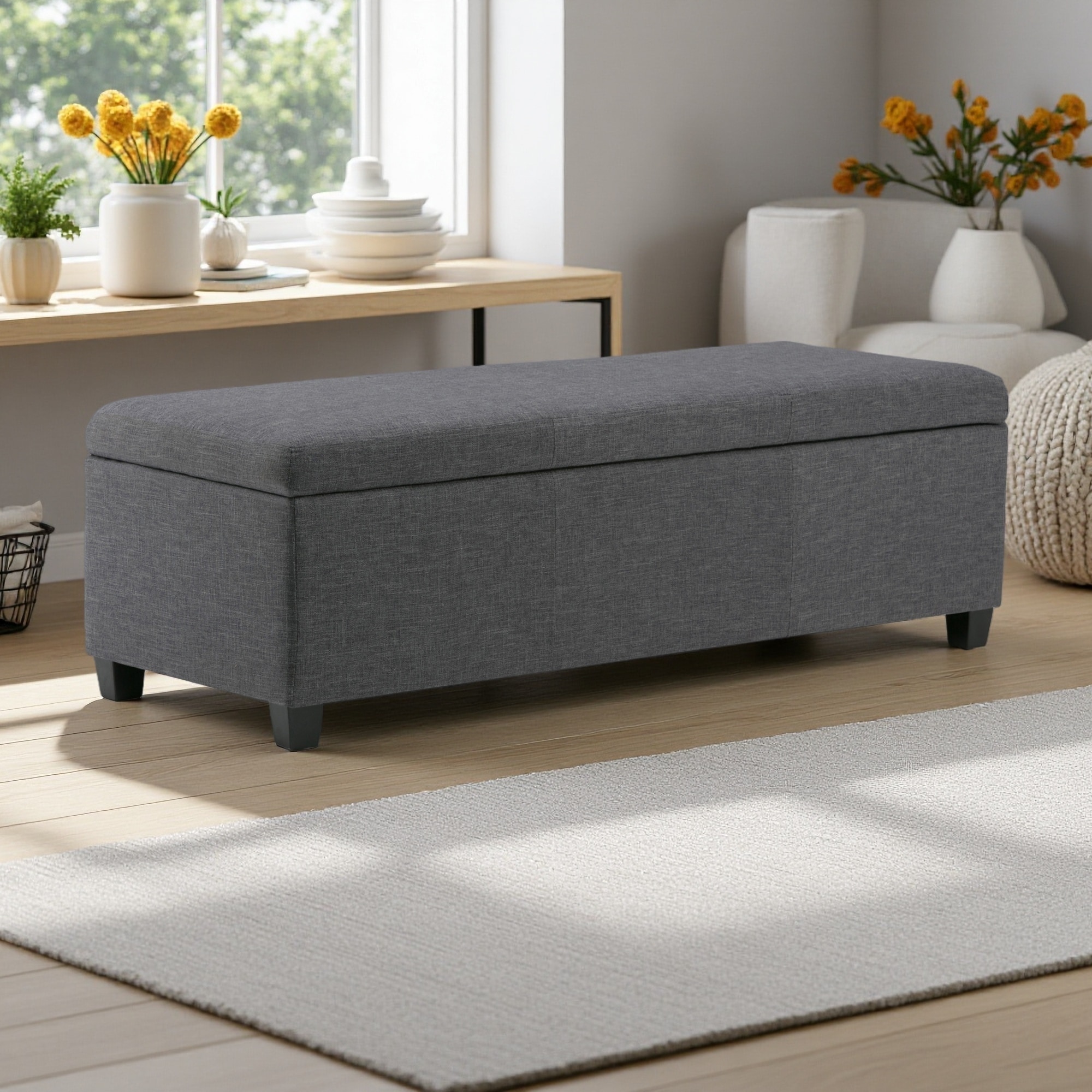 48"L Storage Ottoman Bench - Linen Look Fabric, Large Interior Storage, Child Safety Hinge, Multifunctional Contemporary Design