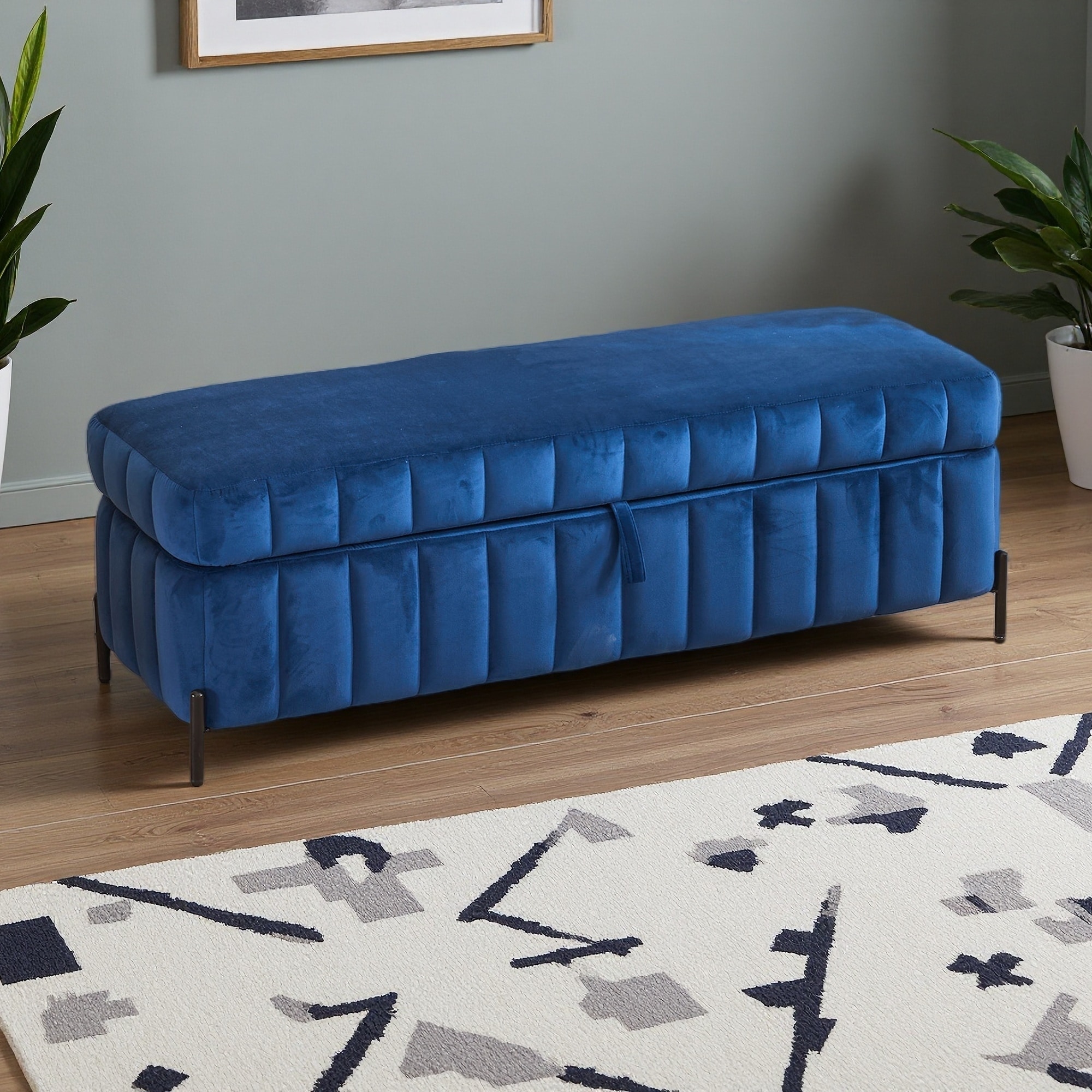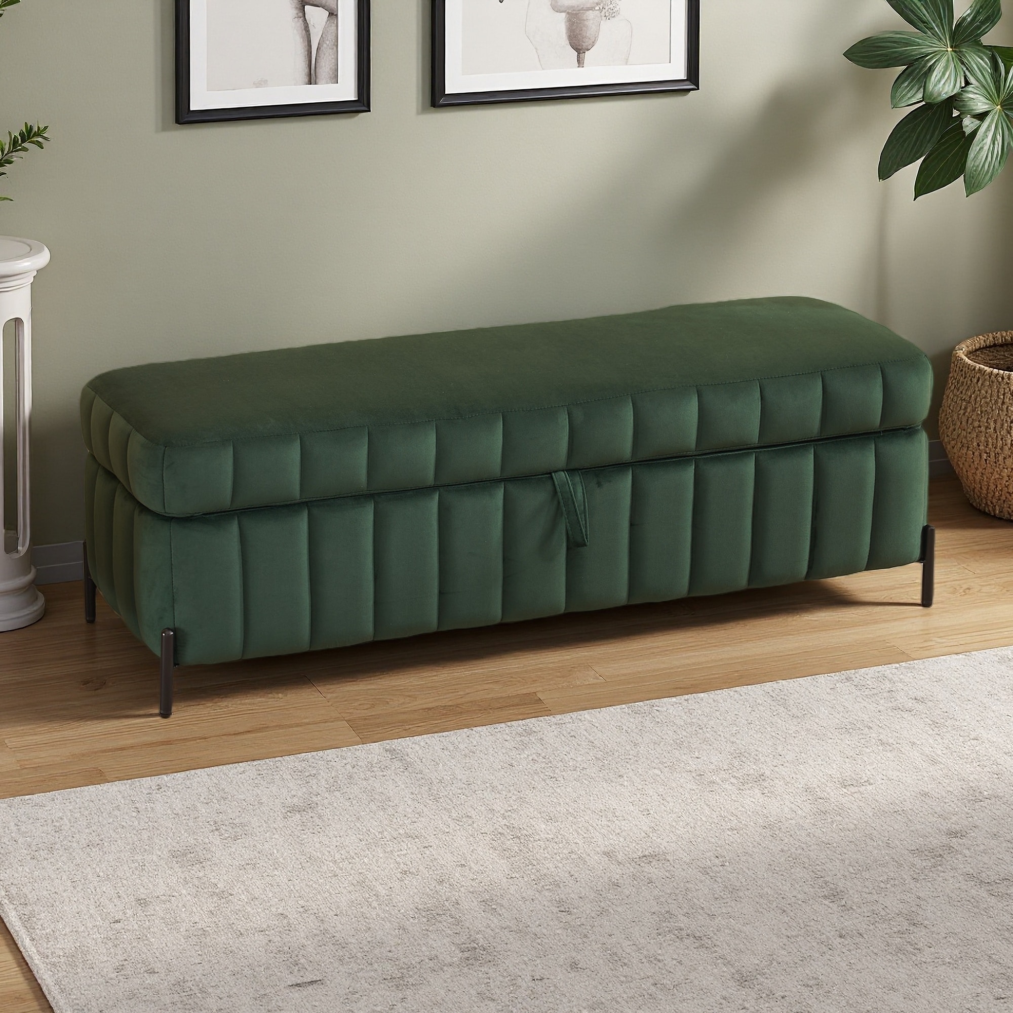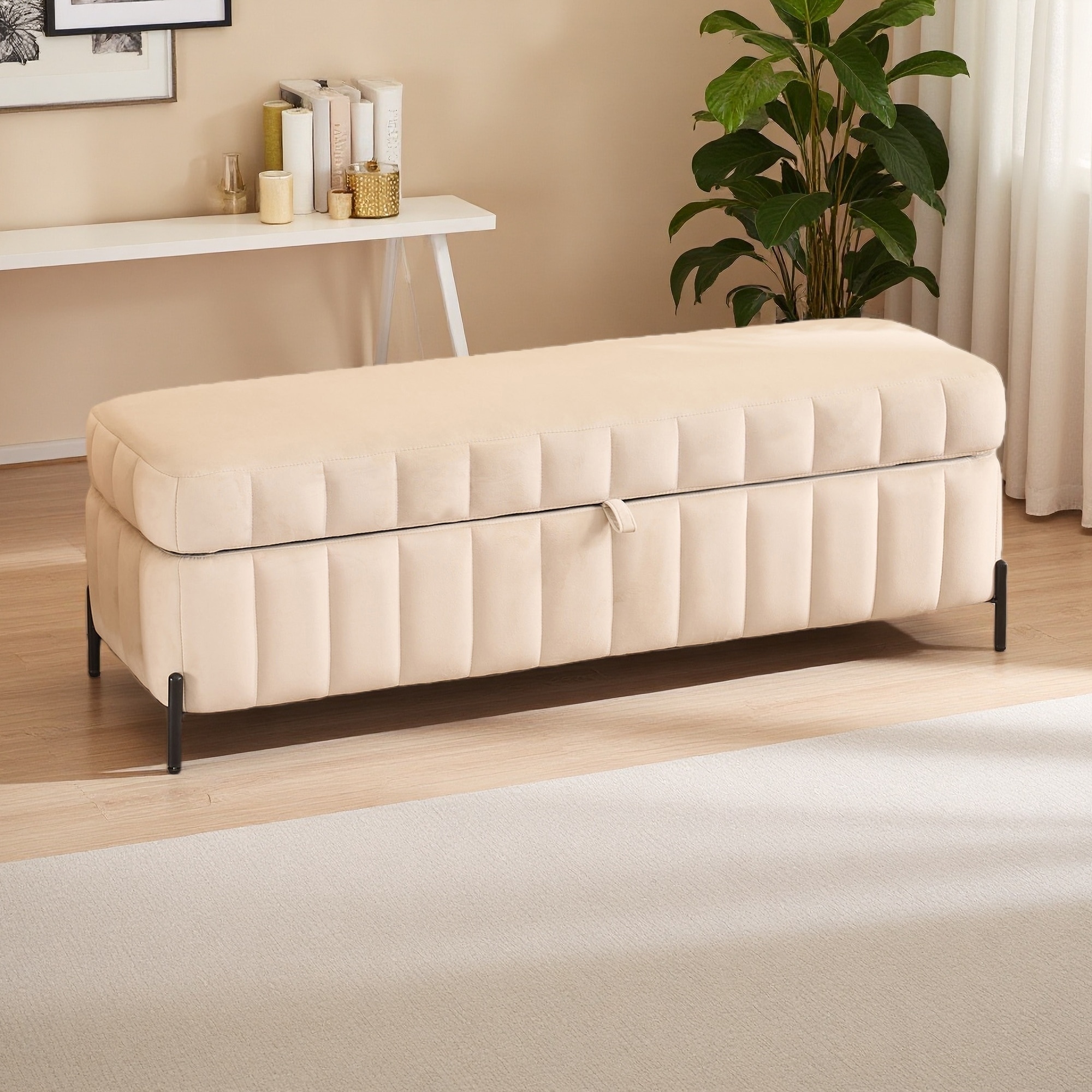 49.21"L Velvet Upholstery & Foam Padding Hidden Storage Compartment & Metal Legs, Soft Storage Bench for Bedroom with Footrest