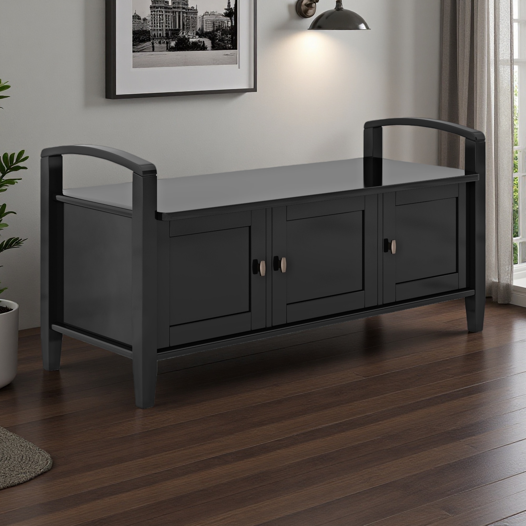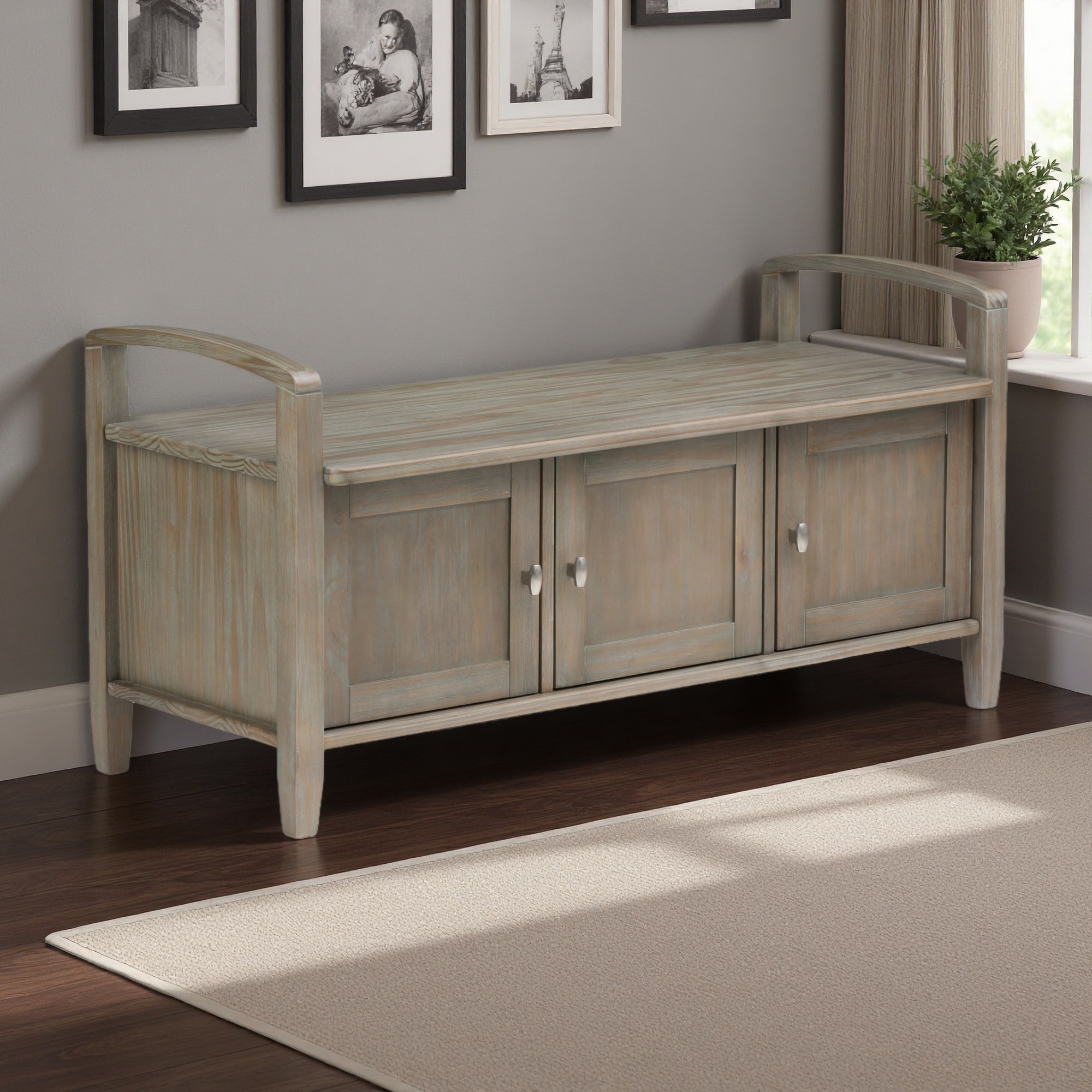 Storage Bench with Doors and Adjustable Shelves