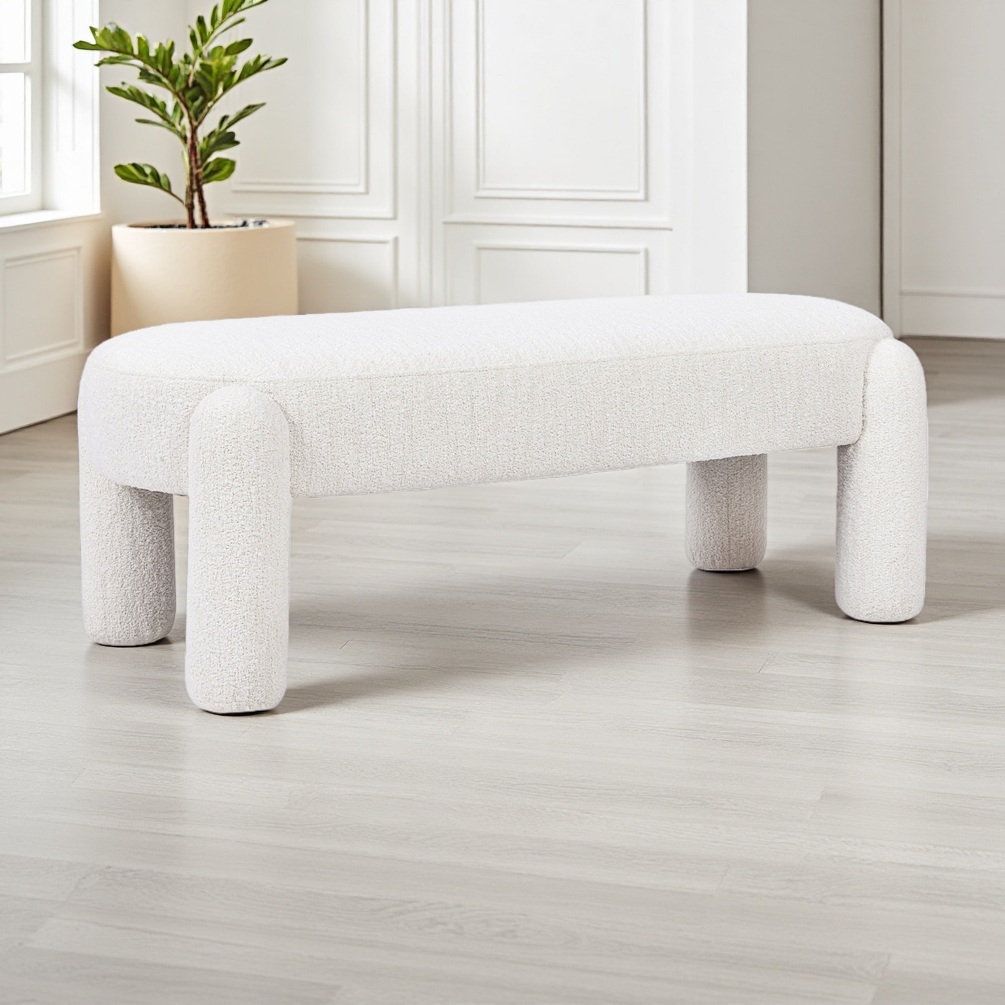 49"L Oval Boucle Fully Upholstered Bench with Textured Upholstery and Rounded Legs