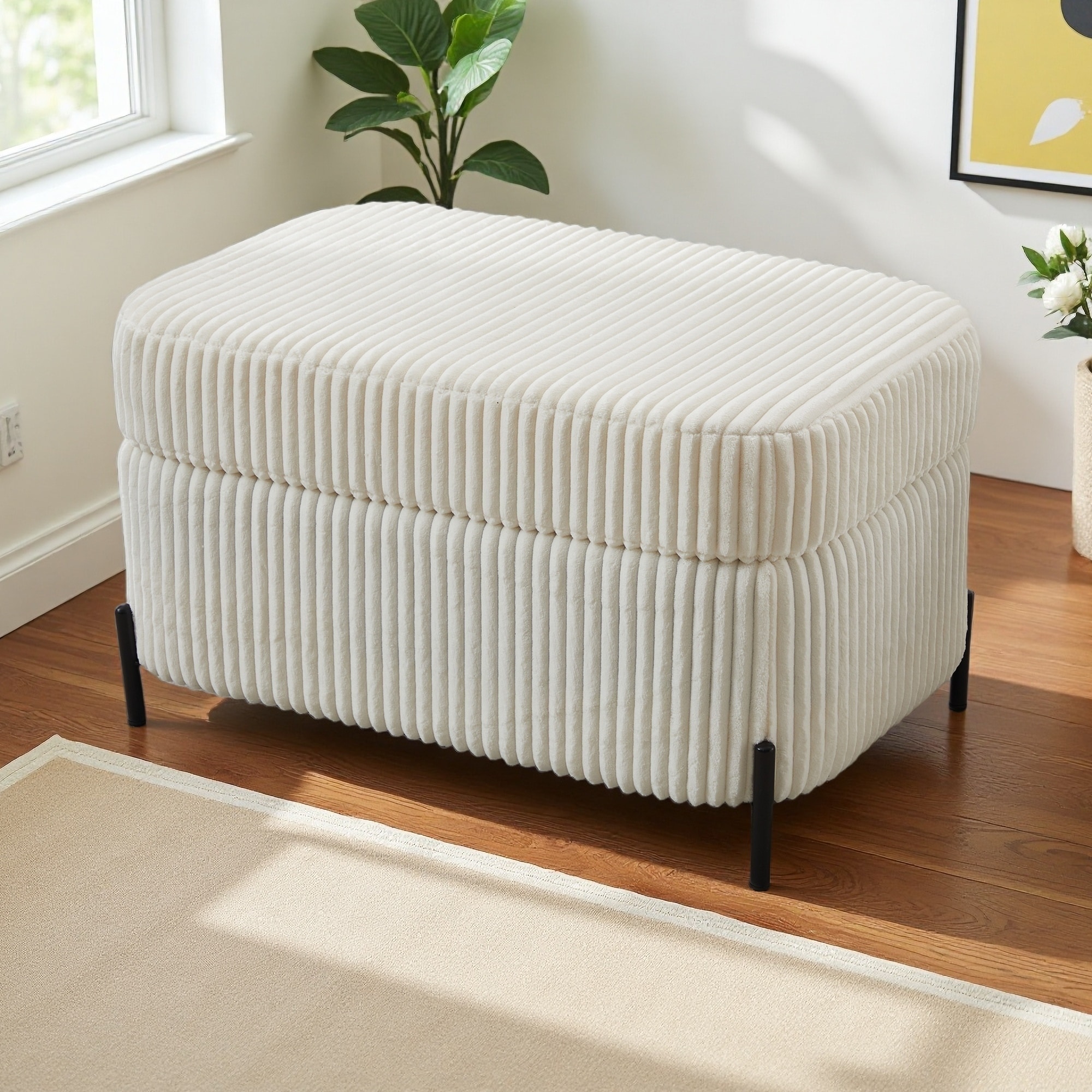 30.3"L Corduroy Upholstered Storage Bench, Large Ottoman with Hidden Storage, Plywood Frame, Metal Legs, for Entryway, Hallway
