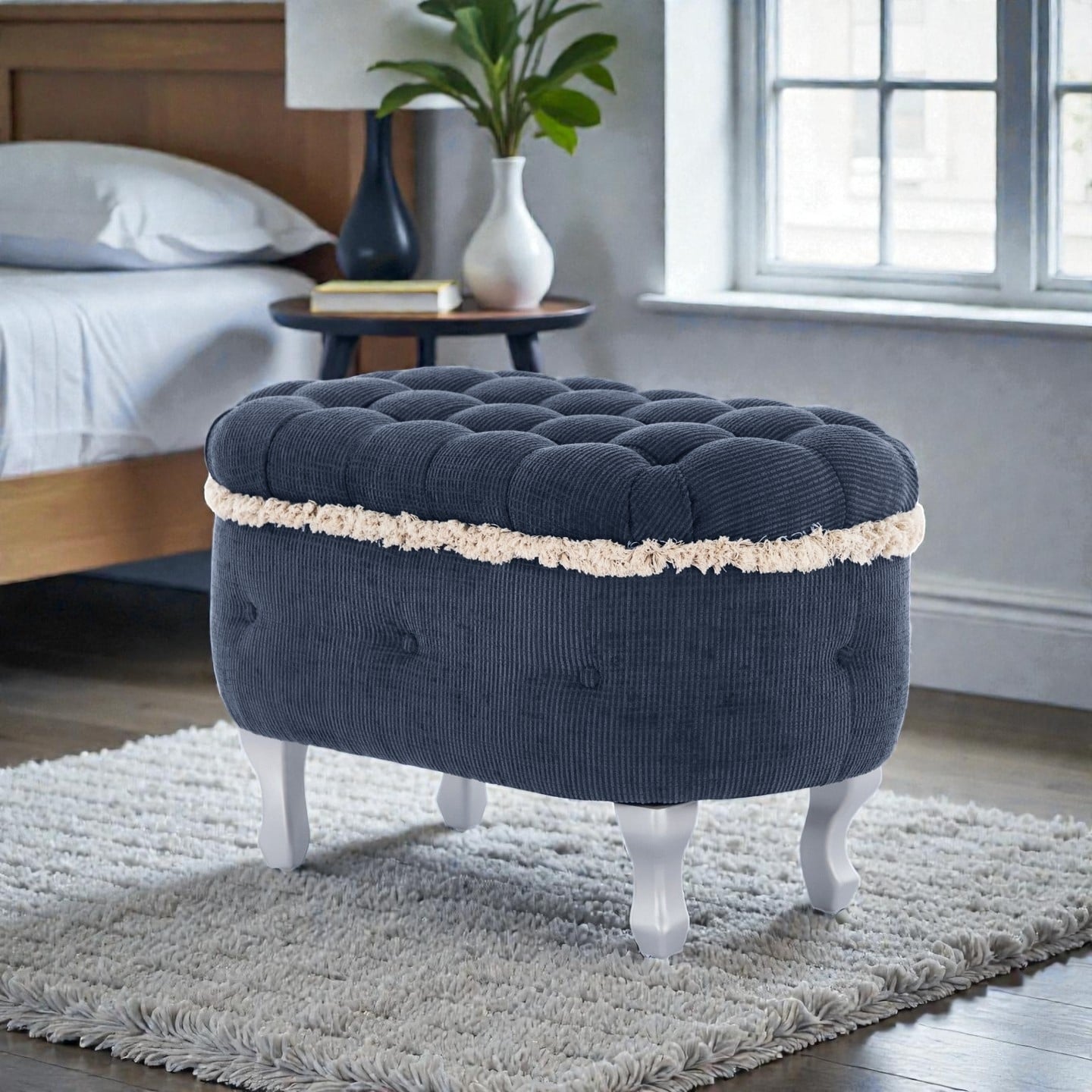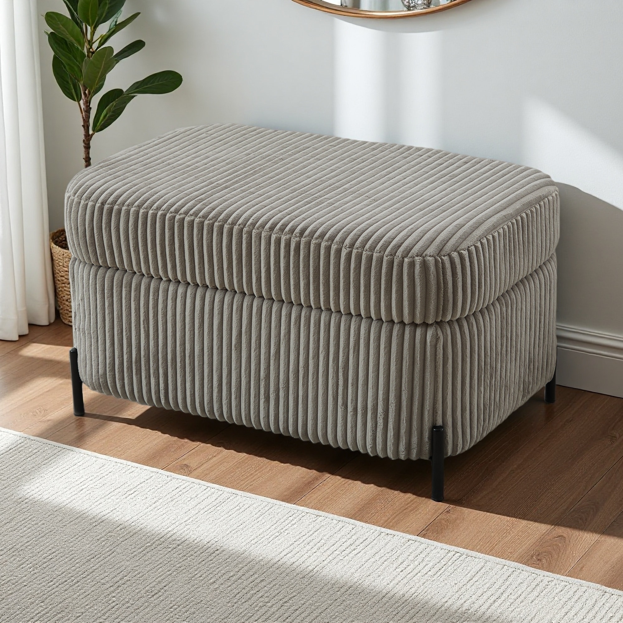 30.3"L Corduroy Upholstered Storage Bench, Large Ottoman with Hidden Storage, Plywood Frame, Metal Legs, for Entryway, Hallway
