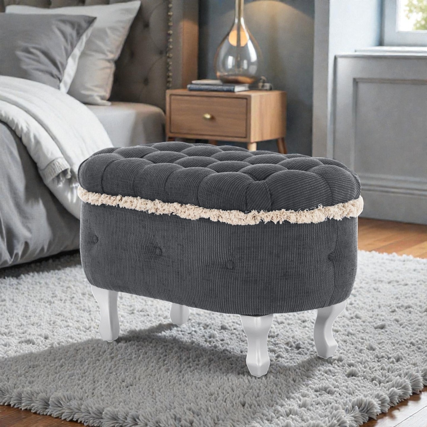 29.5" Upholstered Storage Ottoman Bench with Button Tufting and Fringe, End of Bed or Window Bench for Bedroom Entryway - Fabric