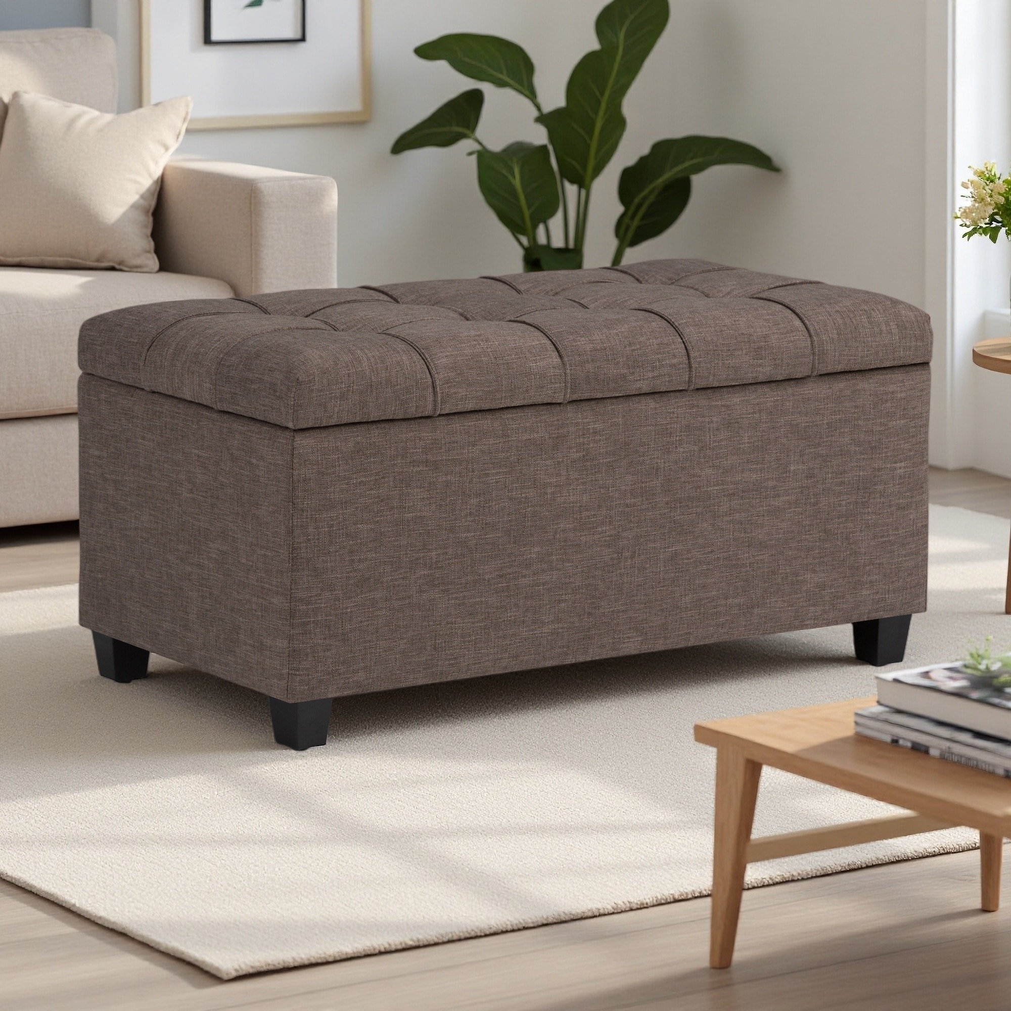 33"L Storage Ottoman Bench, Slate Grey Linen Look Fabric, Large Storage, Multi-functional Foot Stool with Tufted Detailing