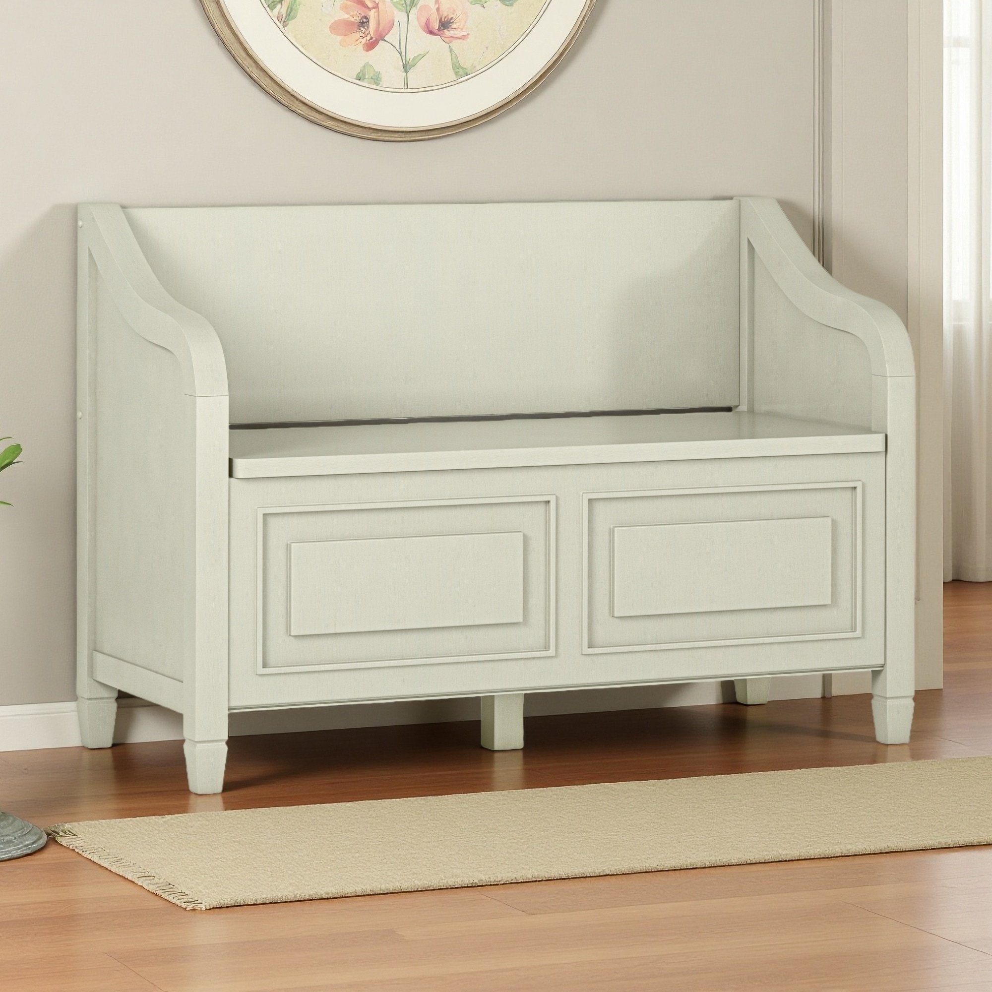 42"L Solid Wood Entryway Storage Bench with Lift-Up Lid, Two Spacious Compartments, Safety Hinges with British Colonial Style