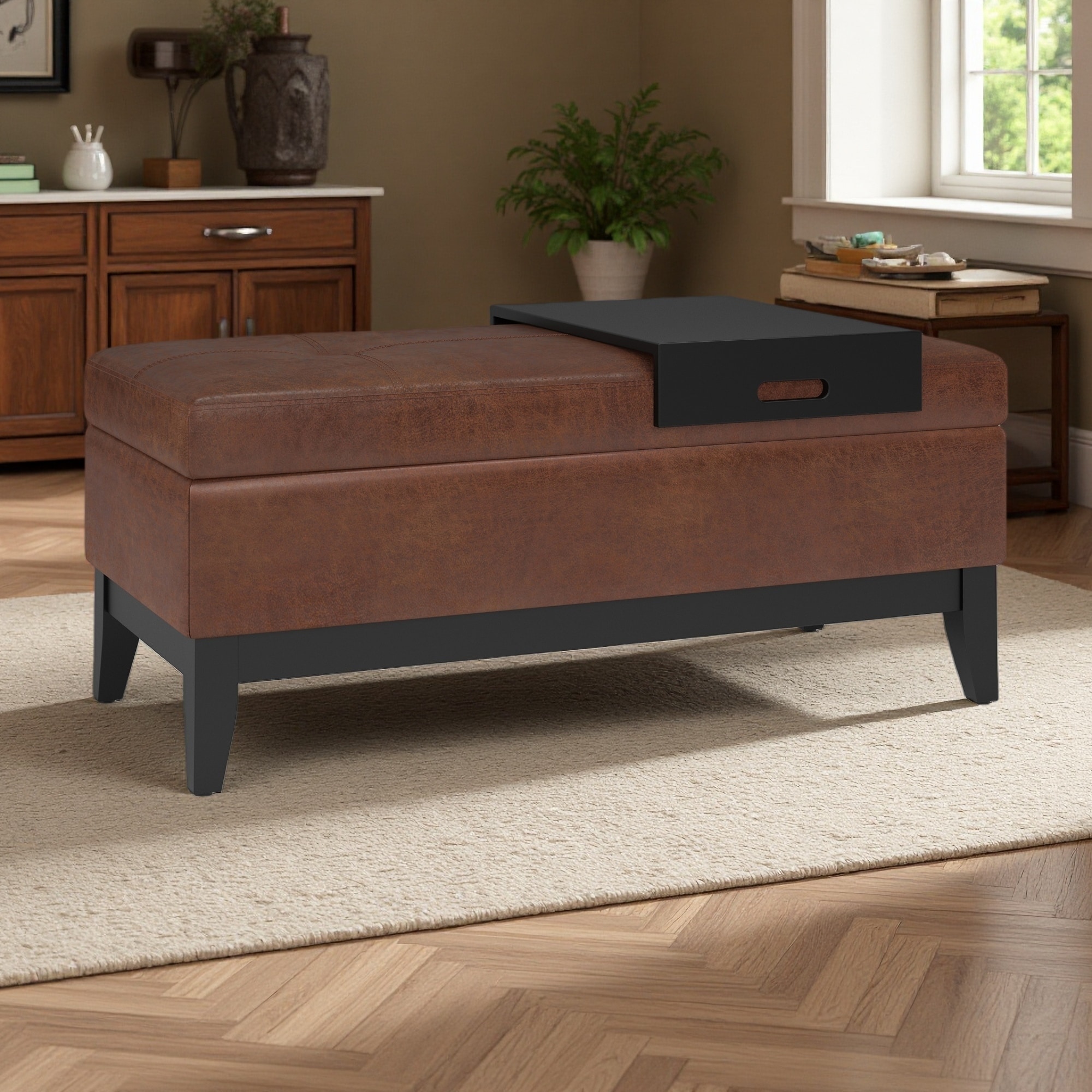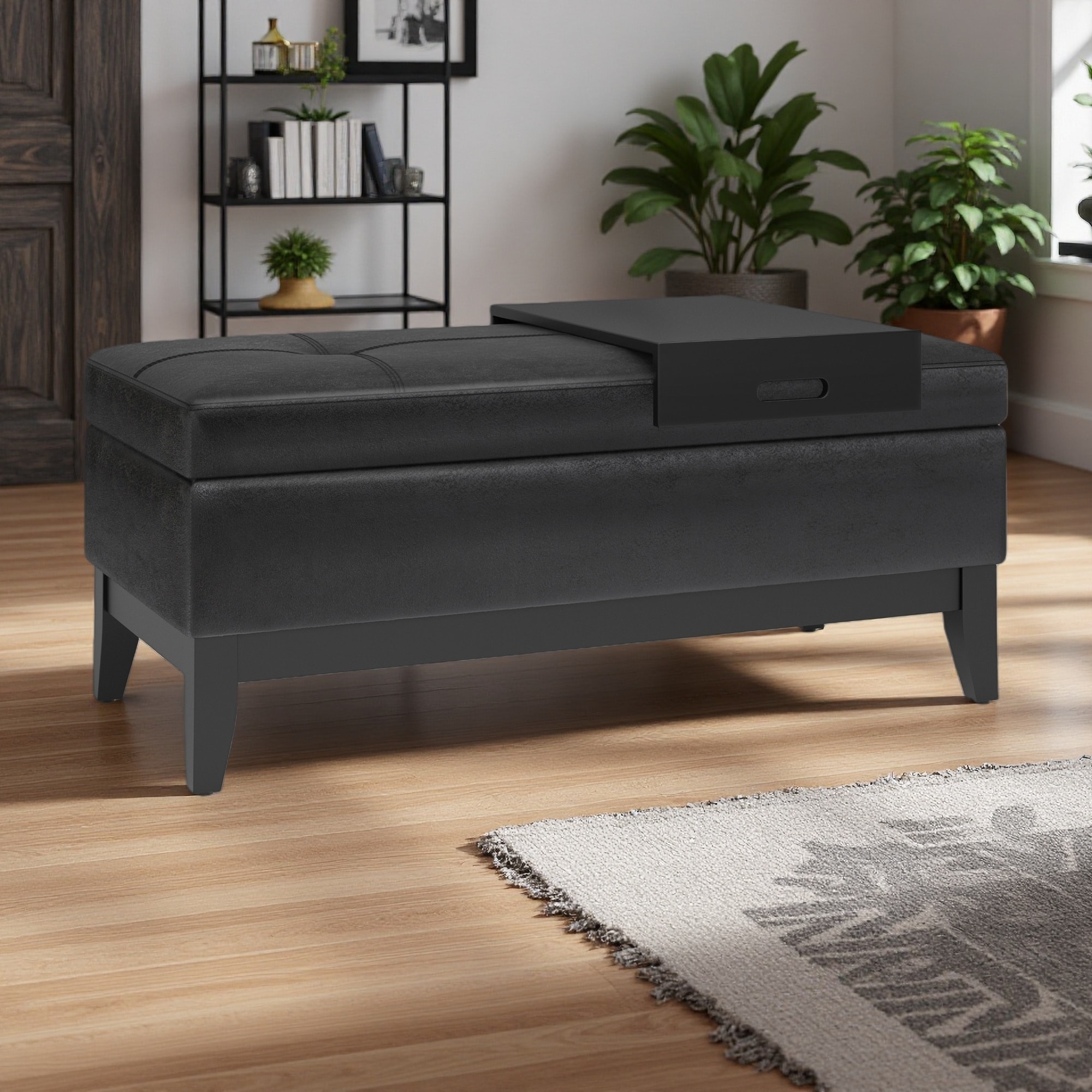 42"L Storage Ottoman Bench with Tray, Faux Leather Upholstery, Lift-Open Lid, Large Storage Compartment - Tufted Design