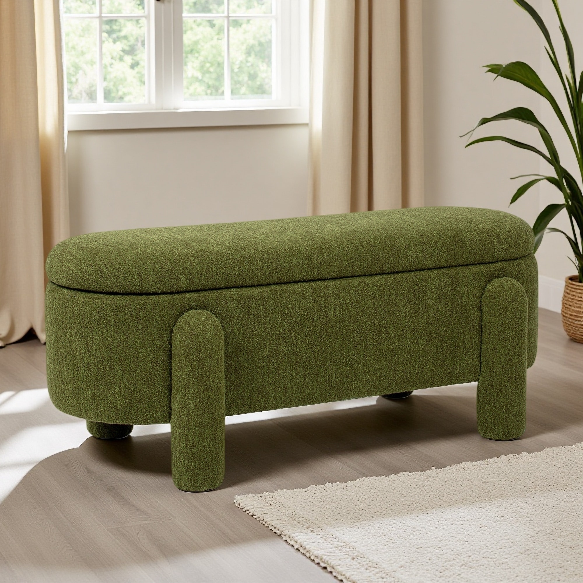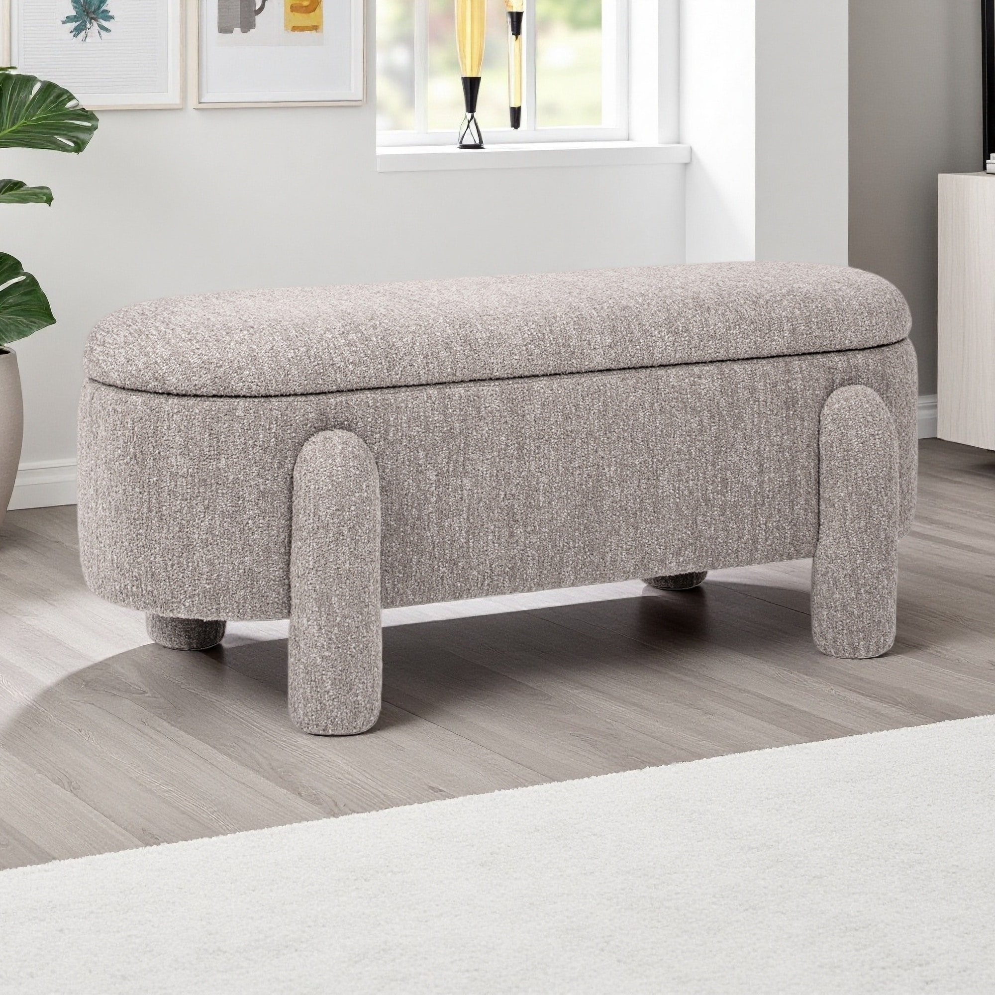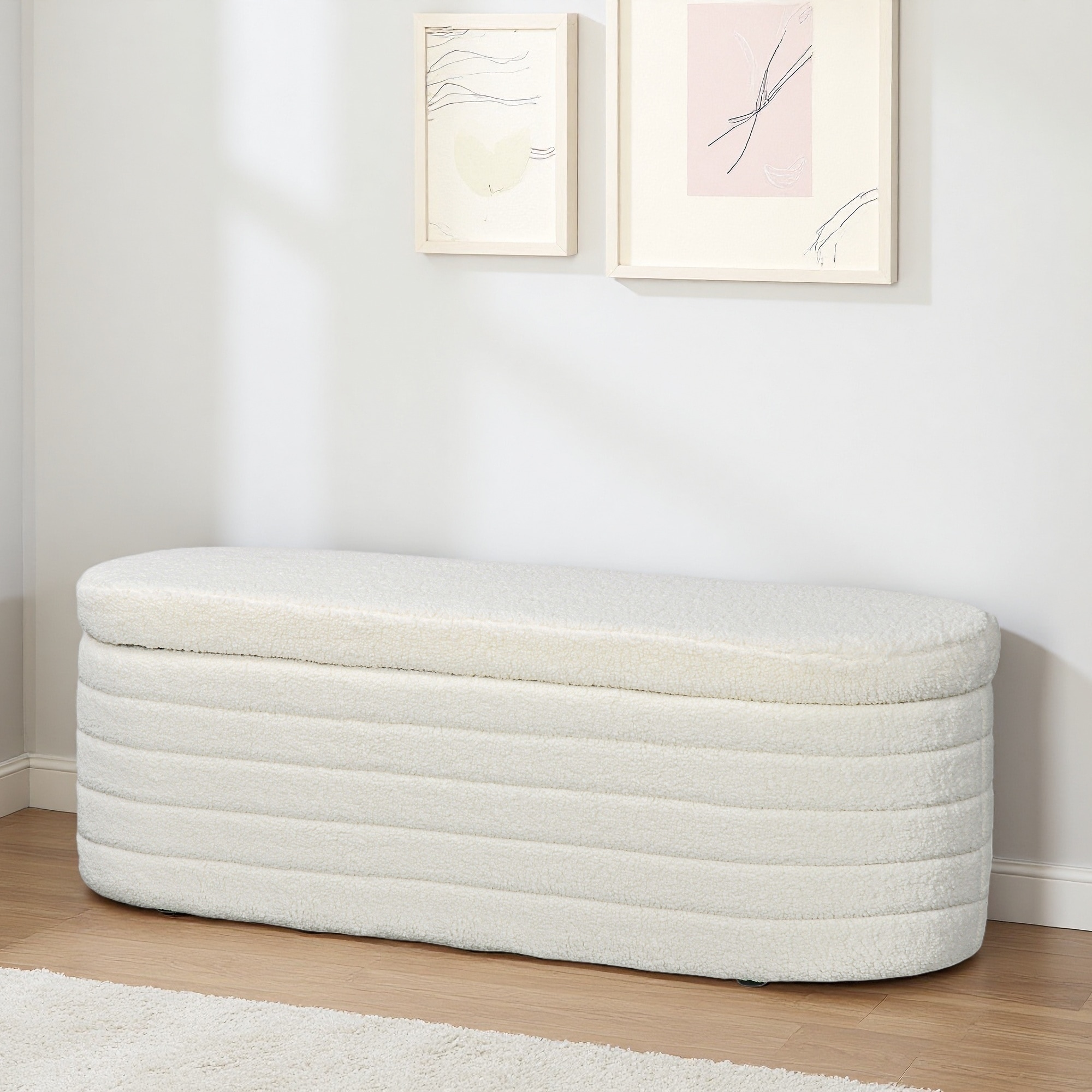 49"L Oval Boucle Fully Upholstered Storage Bench with Textured Upholstery and Rounded Legs