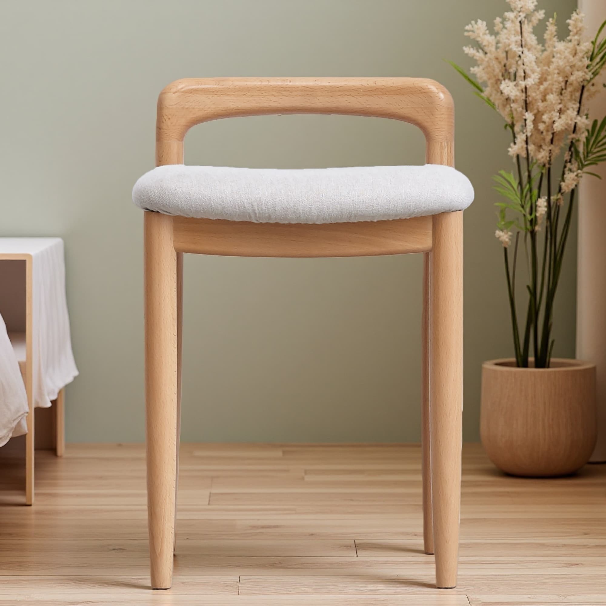 14"L Beech Wood Make-Up Stool with Soft Edges, Bed Bench for Dining Room or Bedroom, Supports Up to 300 LB, Stylish Design