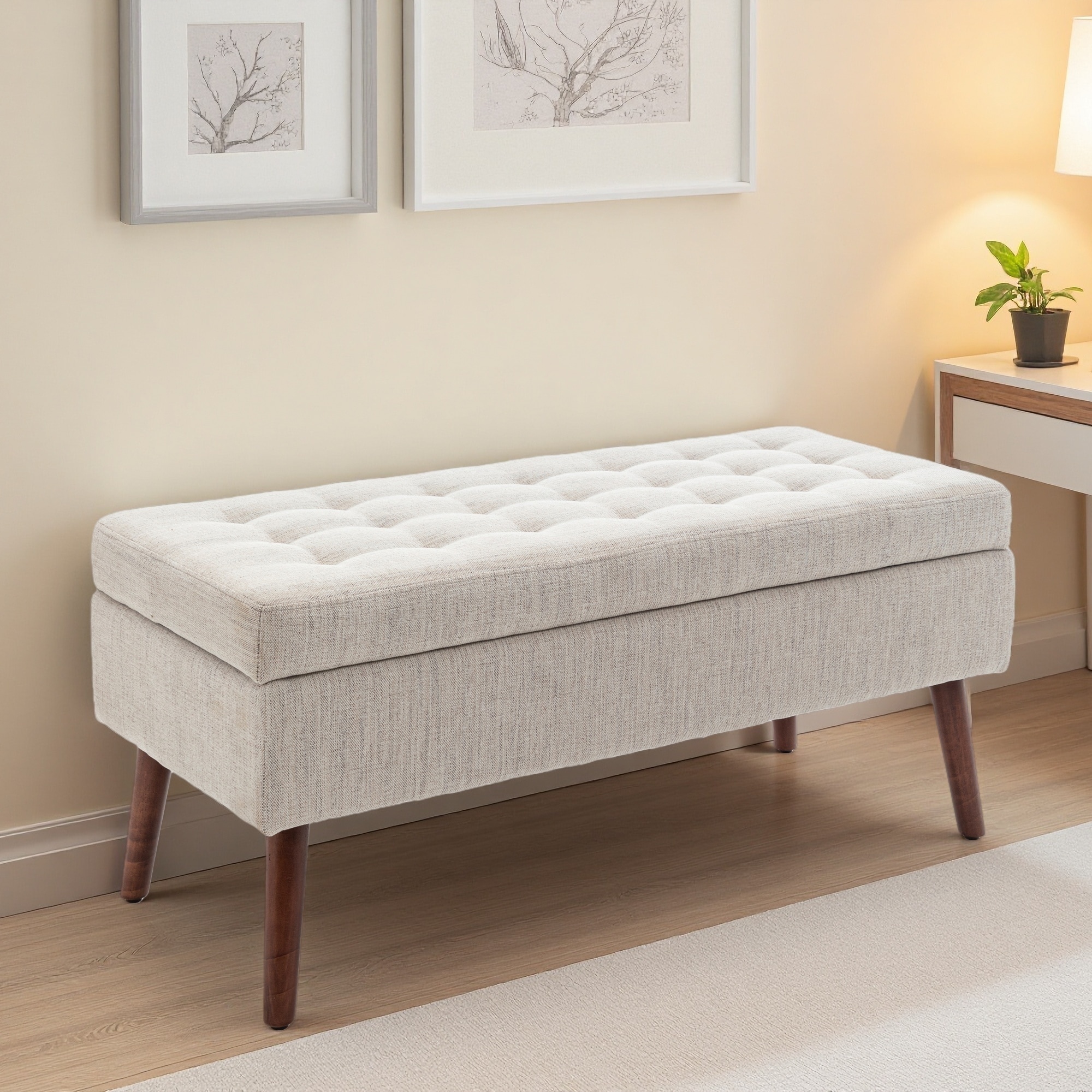 43"L Upholstered Storage Ottoman Bench for Bedroom, End of Bed Bench, Sturdy Storage with Solid Wood Legs, Holds up to 300 lbs