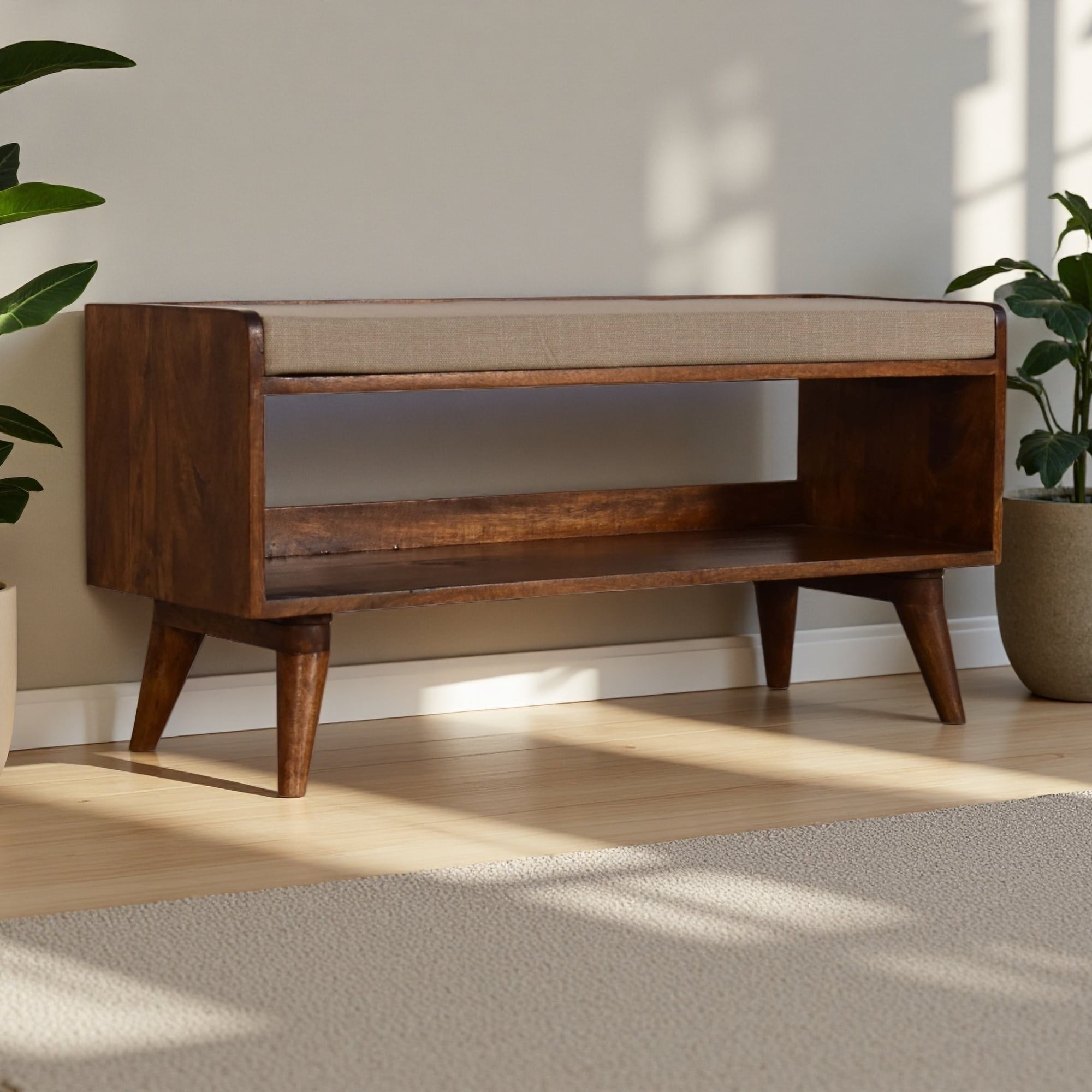 48 Inch Bench with Espresso Wood Legs for Entryway or Hallway - 48” x 17” x 20”