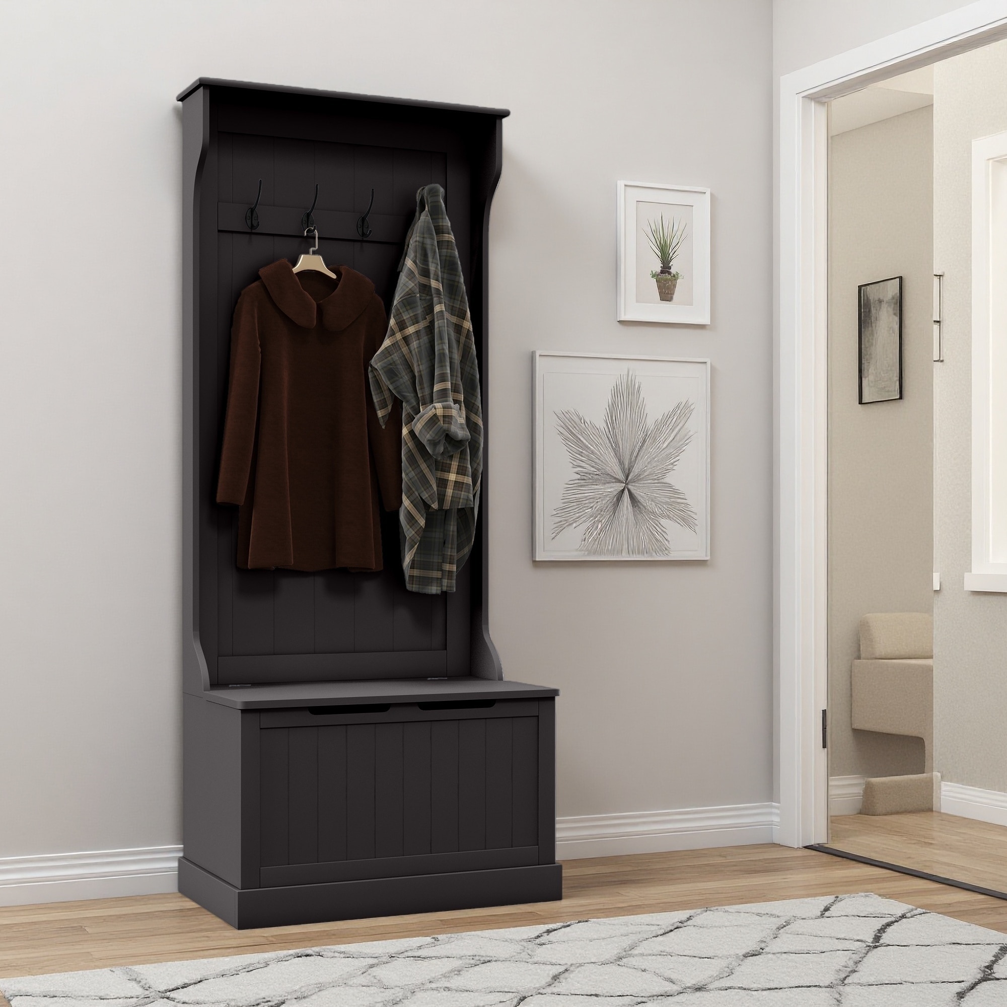 28"L 3-In-1 Entryway Hall Tree with Storage Bench, Coat Rack with Four Hooks and Shoe Storage