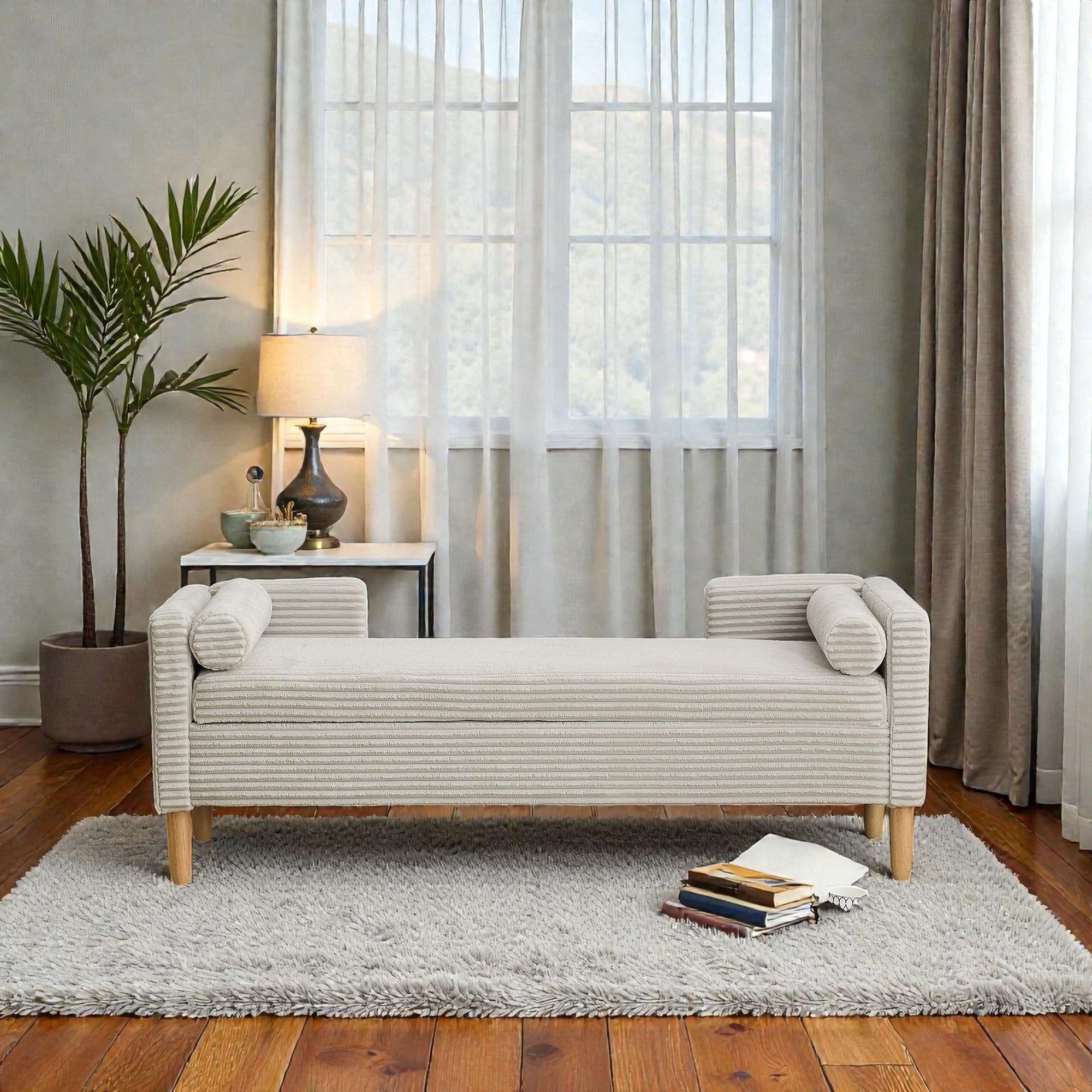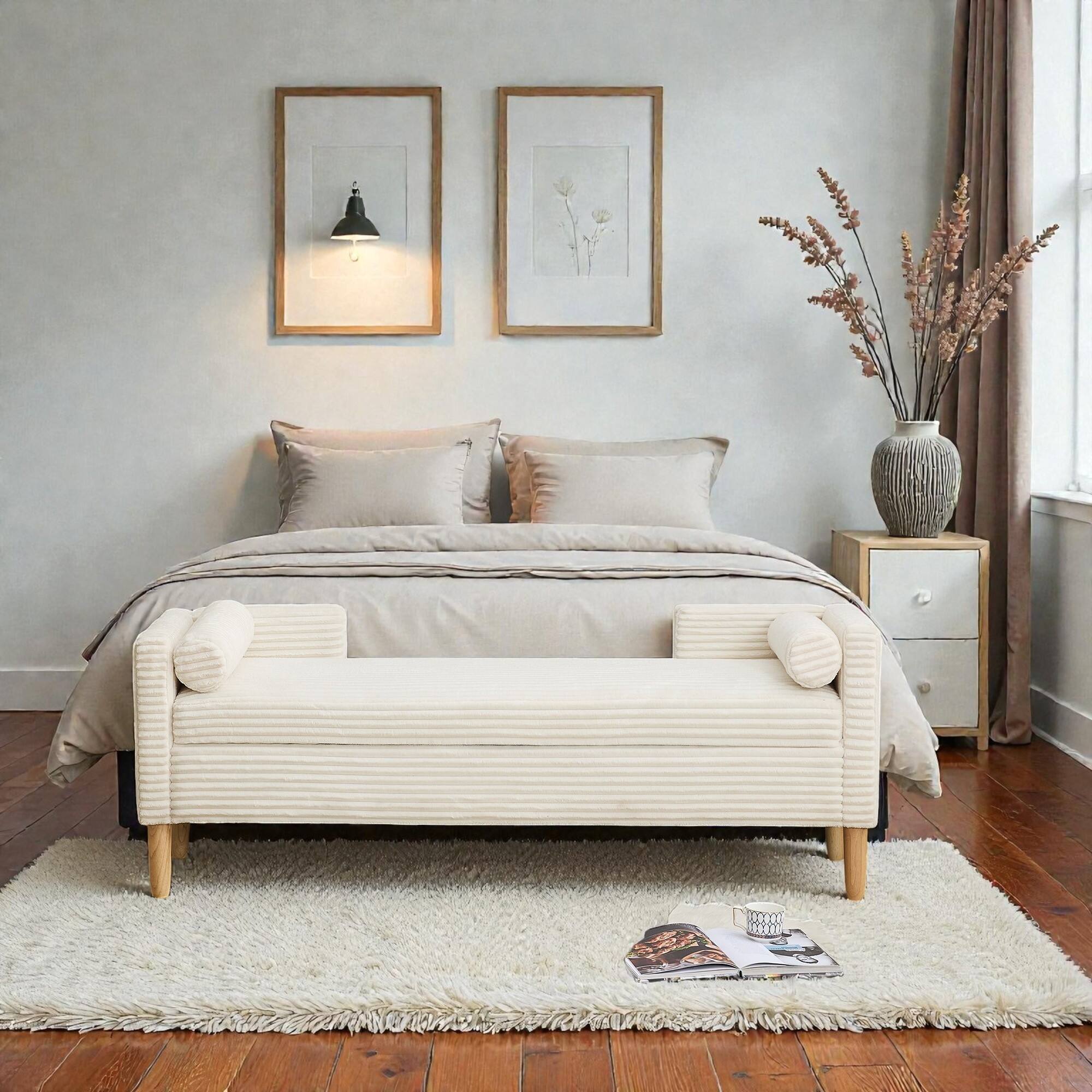 65.35" Upholstered Corduroy Storage Bench with Backrest, Armrests and Pillows, Bedroom Entryway Shoe Ottoman Seat