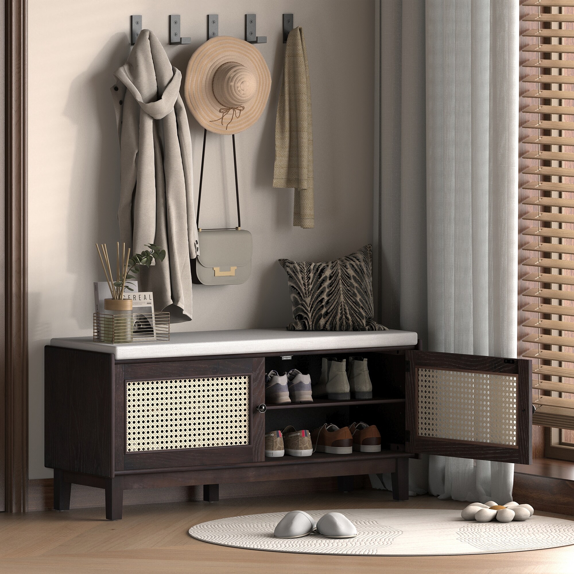 Boho Rattan Shoe Storage with Washable Cushion & Adjustable Shelves by Harper&Bright Designs