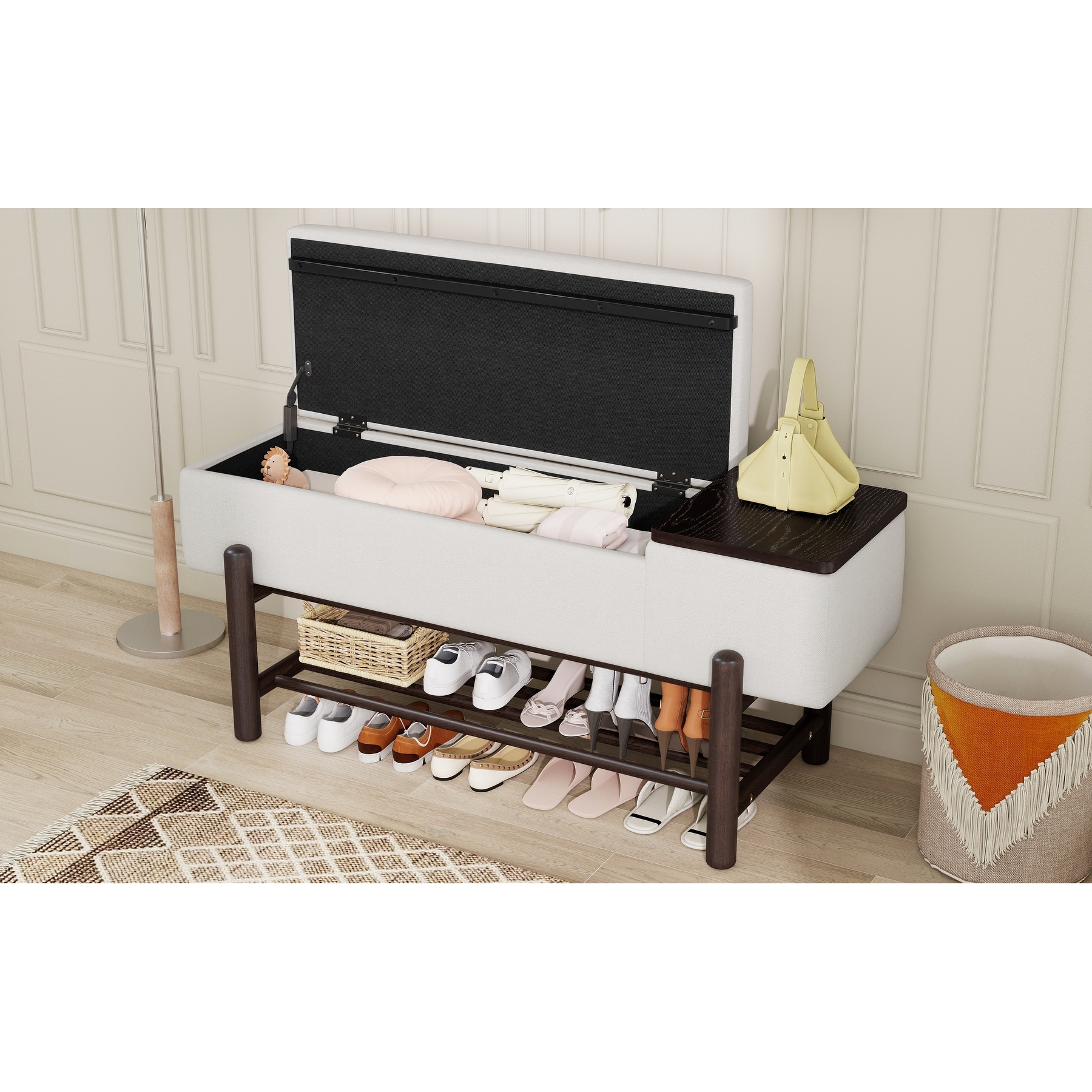 Farmhouse Upholstered Storage Bench with Hidden Compartment