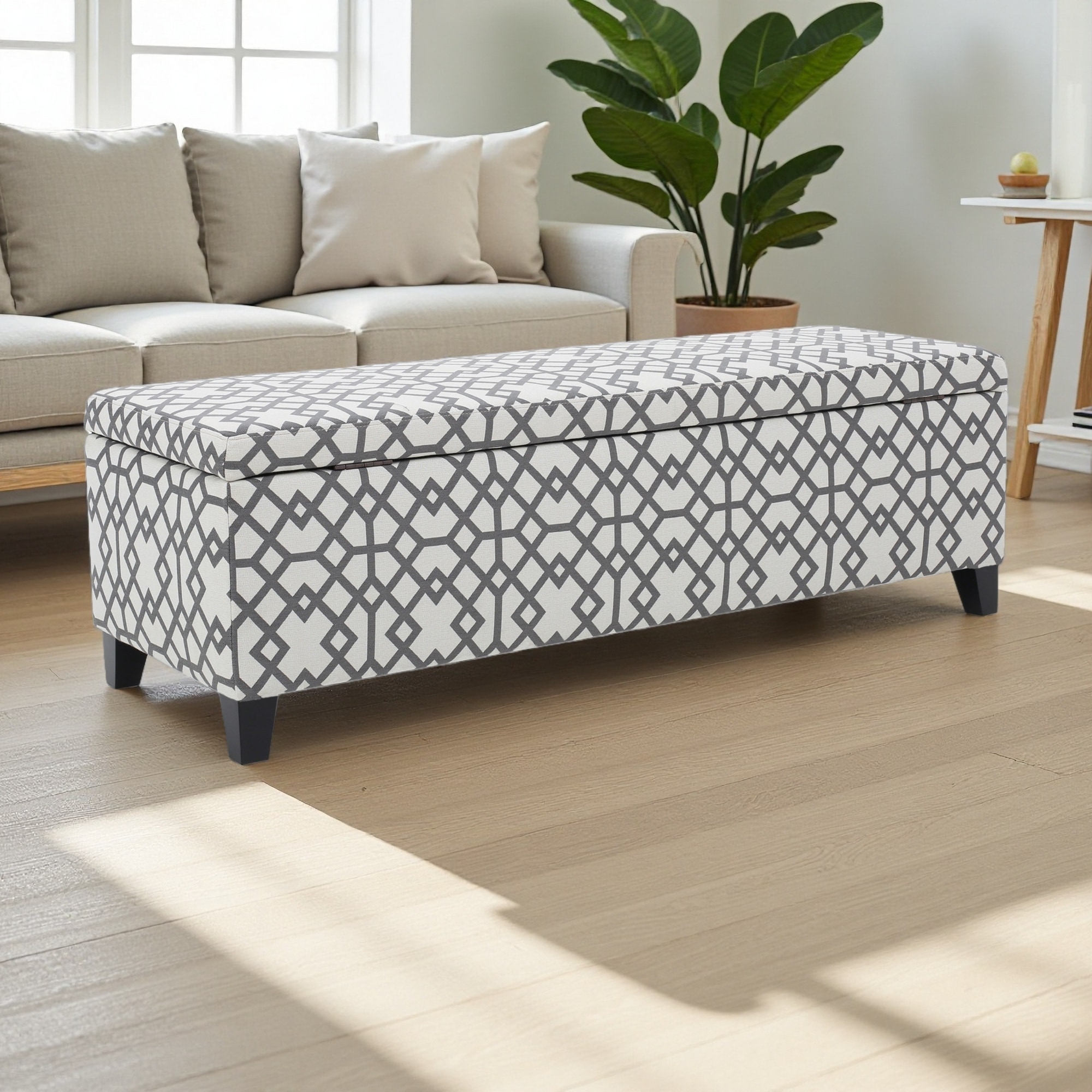 51"L Polyester Storage Ottoman with Tapered Wood Legs - Upholstered Bedroom Bench with Hidden Storage and Extra Seating