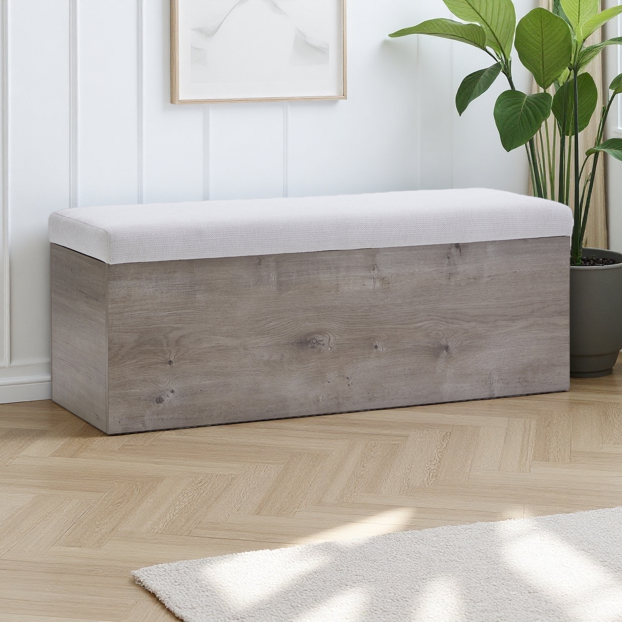 45.9"L Upholstered Flip Top Storage Bench, Canvas Chenille, Wood Base, Modern Farmhouse Style, Spacious Storage Compartment
