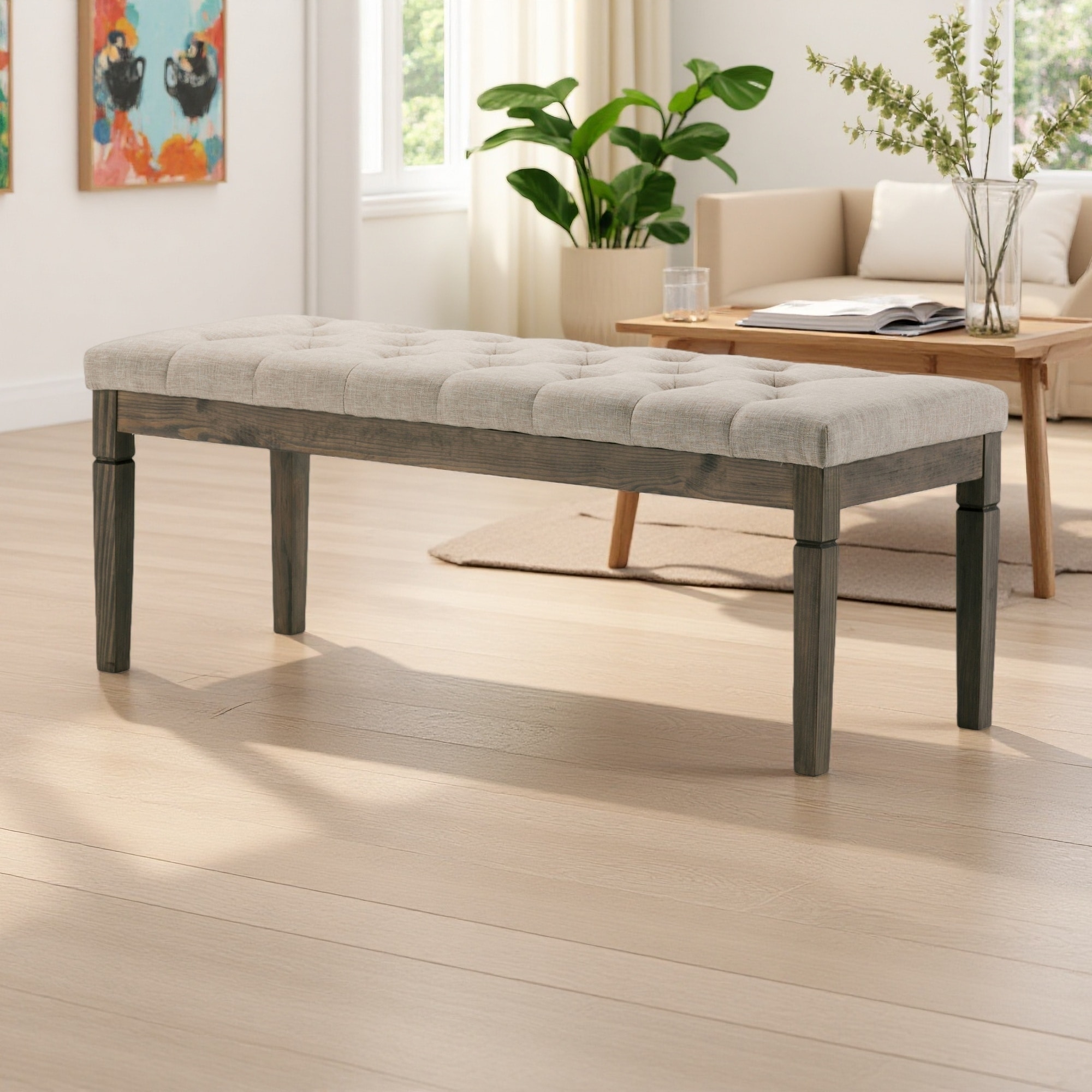 Characteristic Entryway Footrest Bench Indoor Bench with Nailhead Trim, Leisure Stool Dining Bench with Wooden Legs