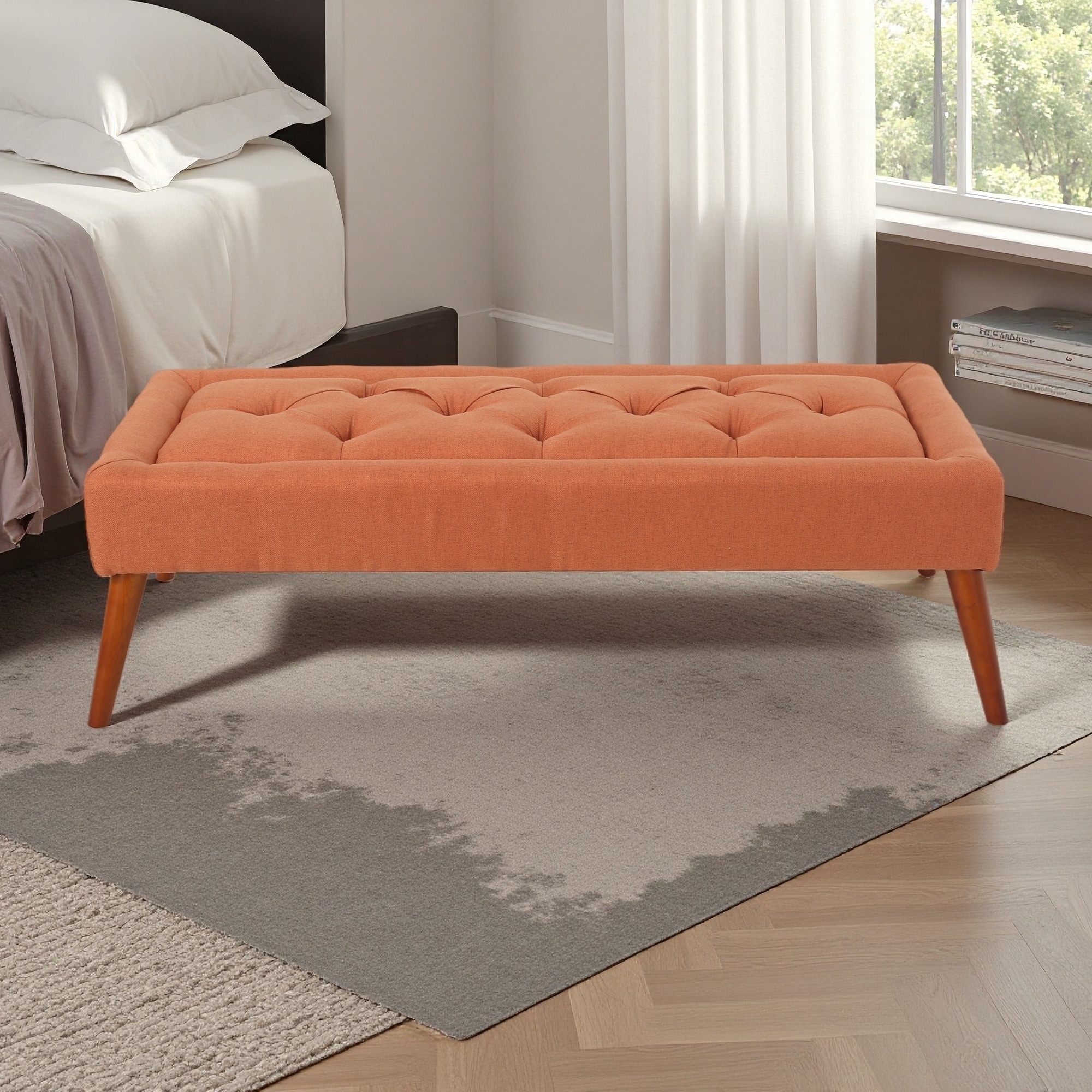 50"L Upholstered Ottoman Bench with Birch Wood Legs Button-Tufted Footstool for Bedroom, Living Room, Entryway, Spacious Storage