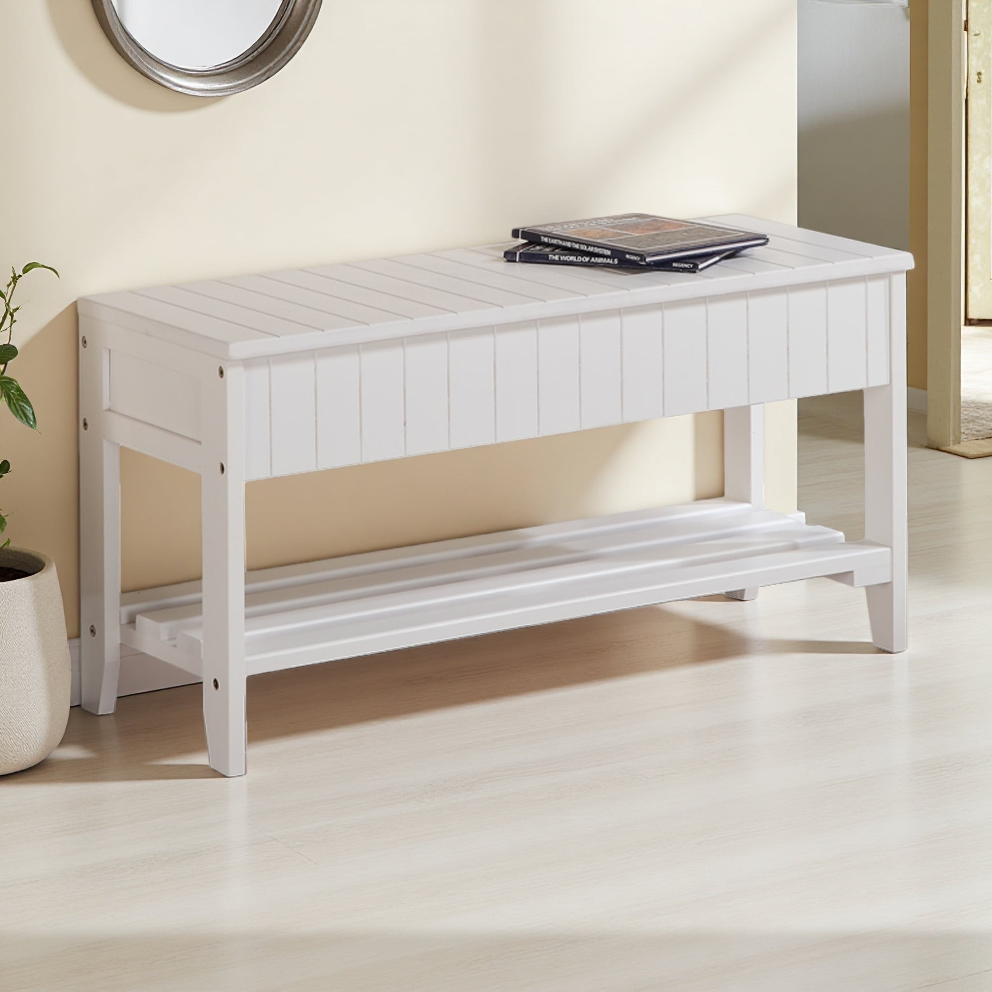 35.5"L Solid Wood Shoe Bench with Storage, Sturdy Construction, Easy Assembly