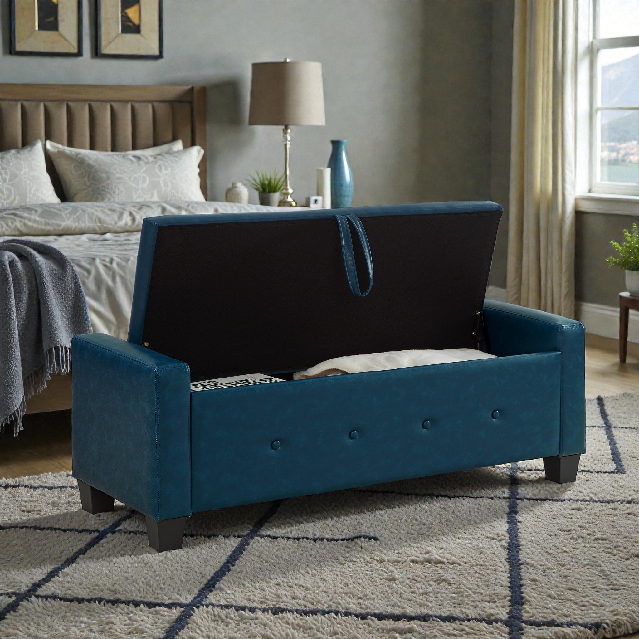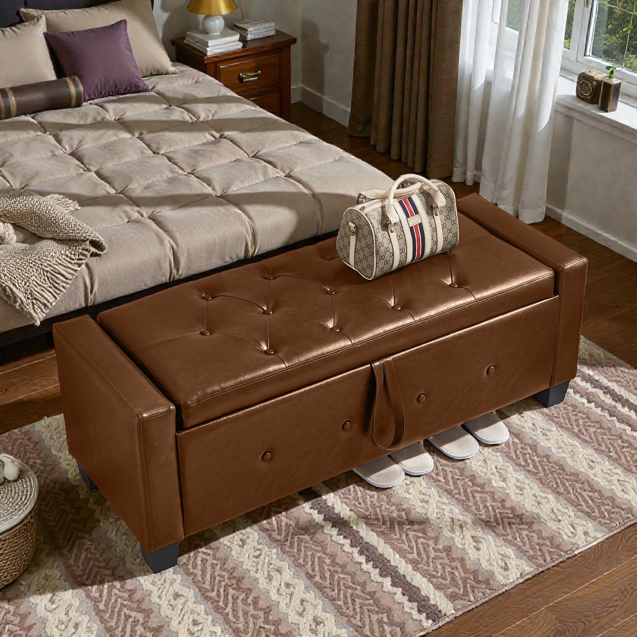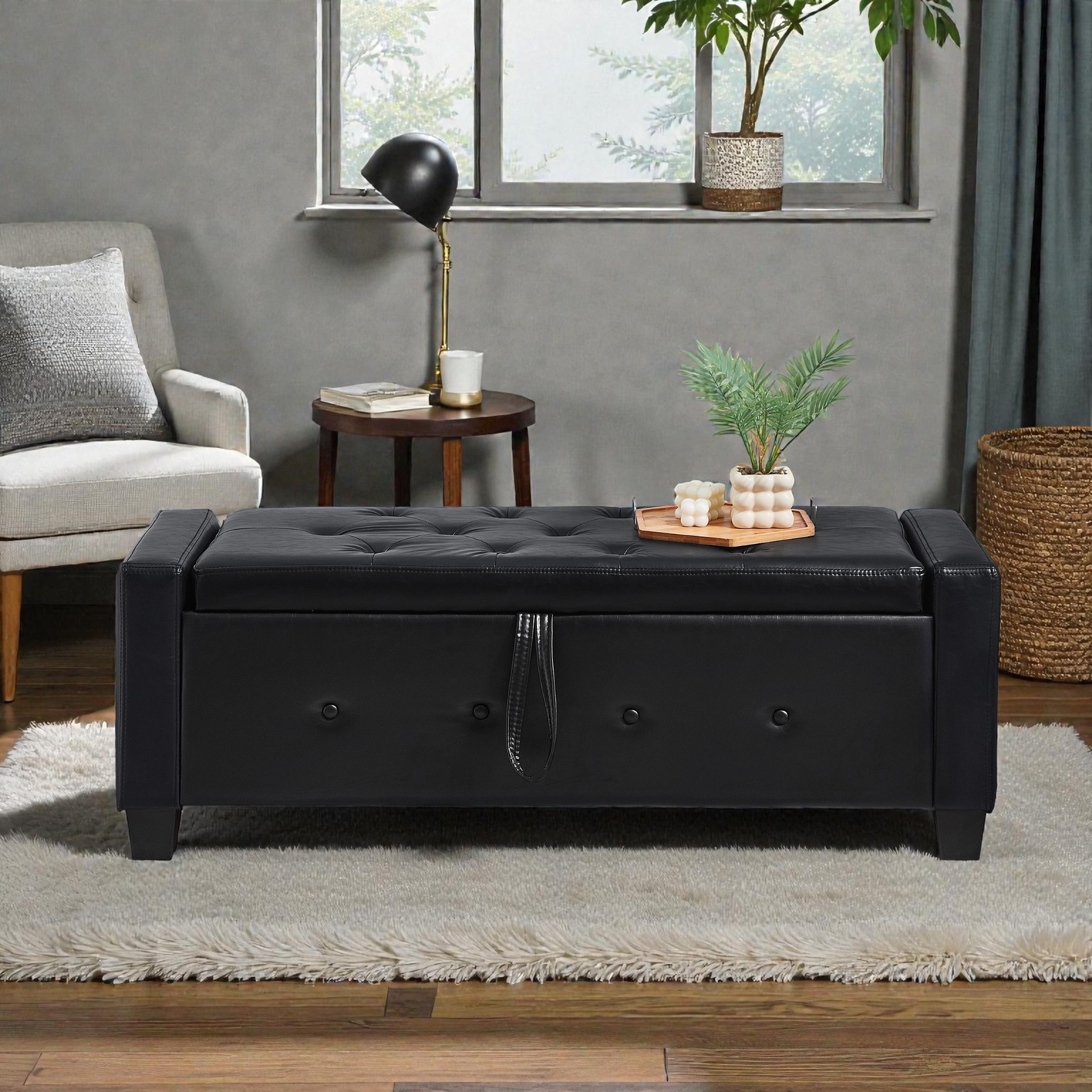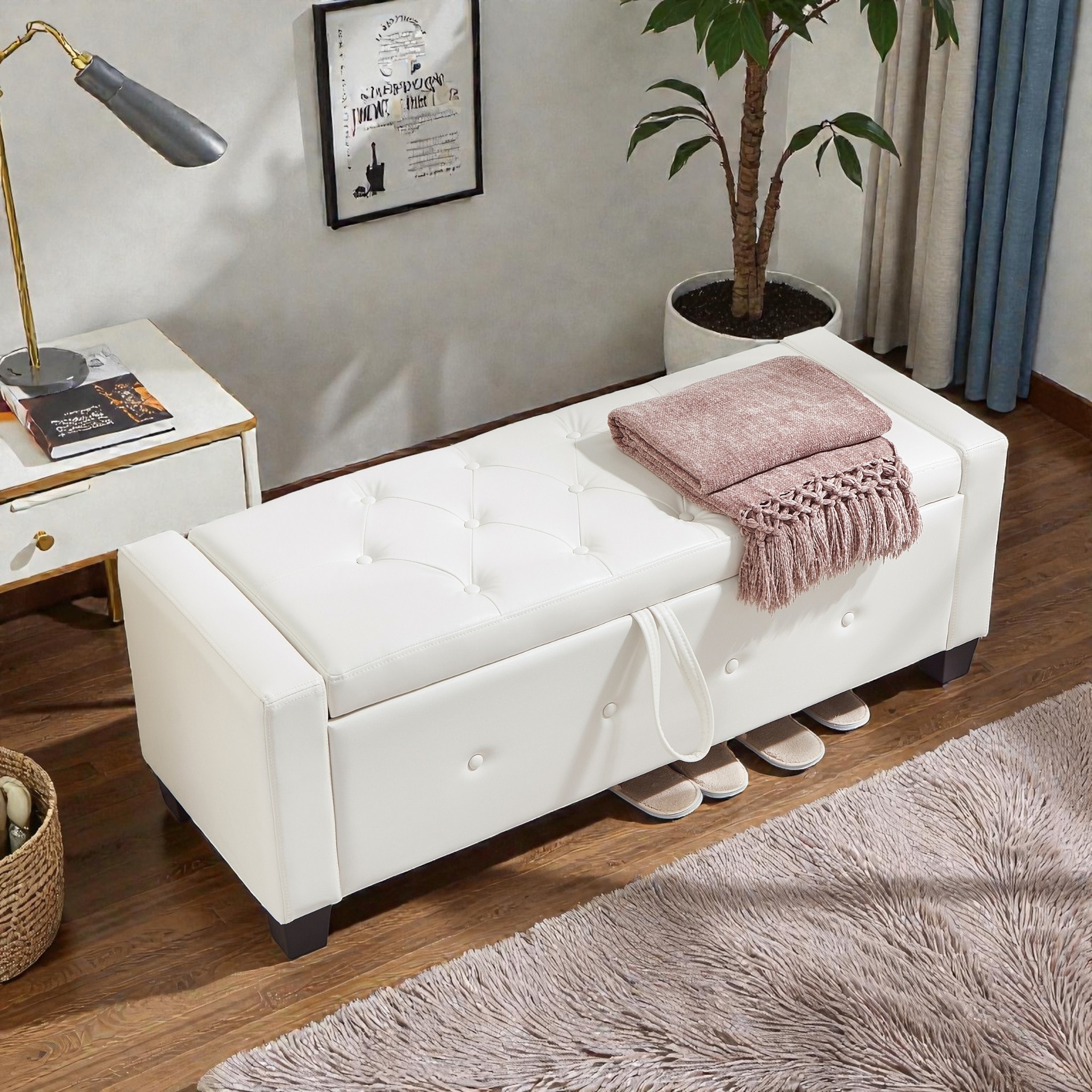 48" Upholstered Ottoman Bench with Hidden Storage, Faux Leather Tufted Bench for Bedroom, Living Room, or Entryway - PU