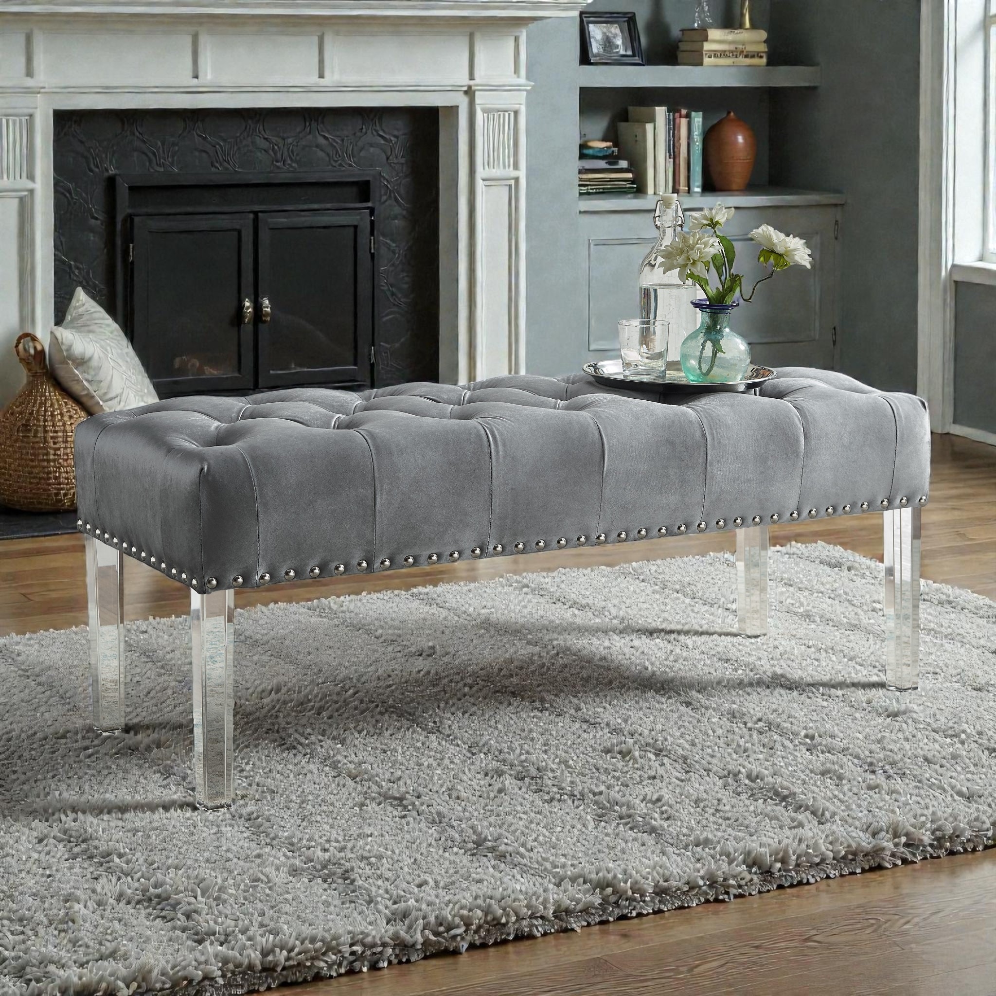 Velvet Upholstered Living Bench with Button Tufted Seat, Acrylic Legs, Nailhead Trim, Upholstery Bench 49"x19"x19"