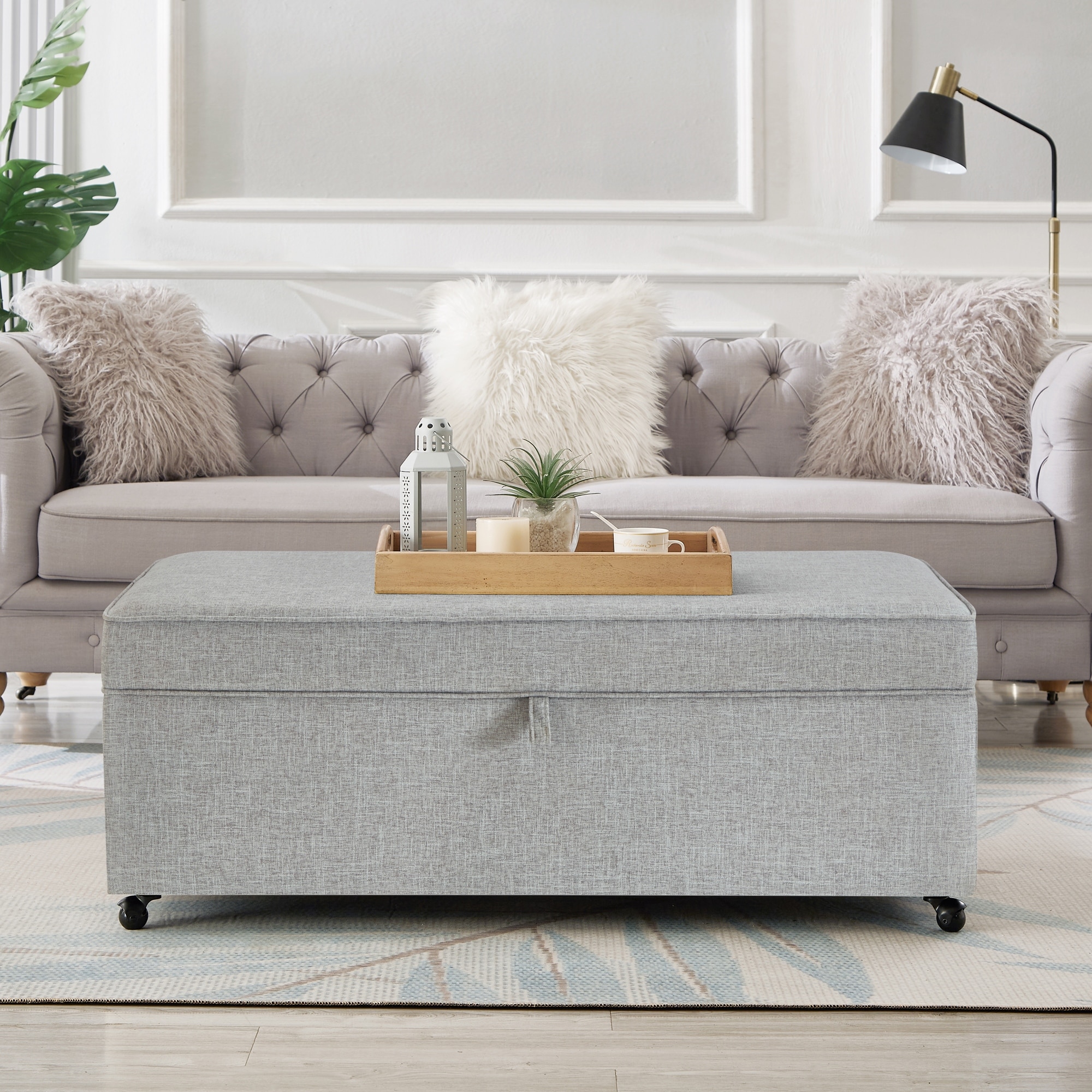 Entryway Footrest Seat with Solid Wood Frame and Swivel Casters, Upholstered Seat, Indoor Bench Storage Bench