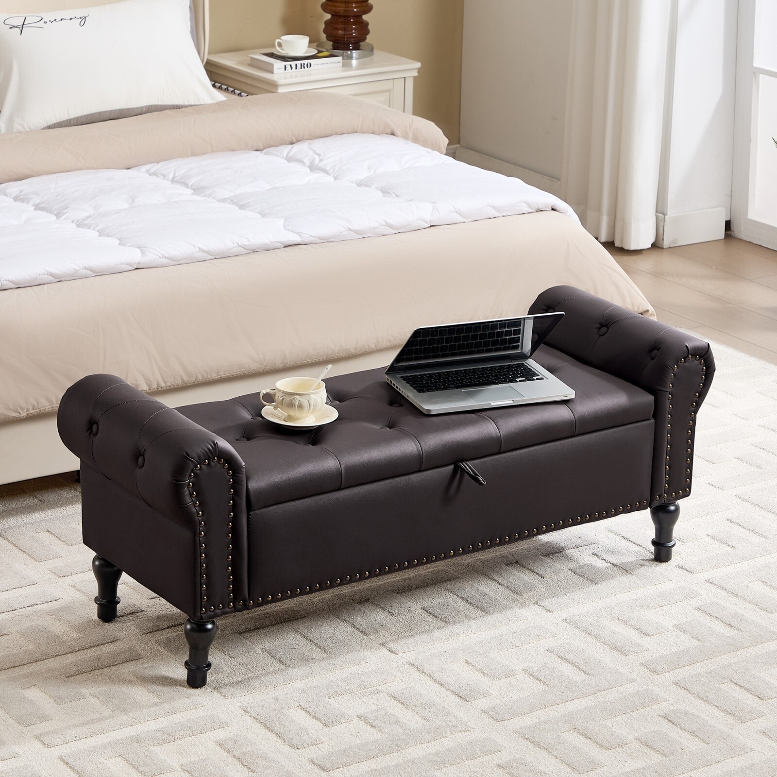 HOMYKA 51.18" European Style Tufted Storage Bench with Rolled Arms