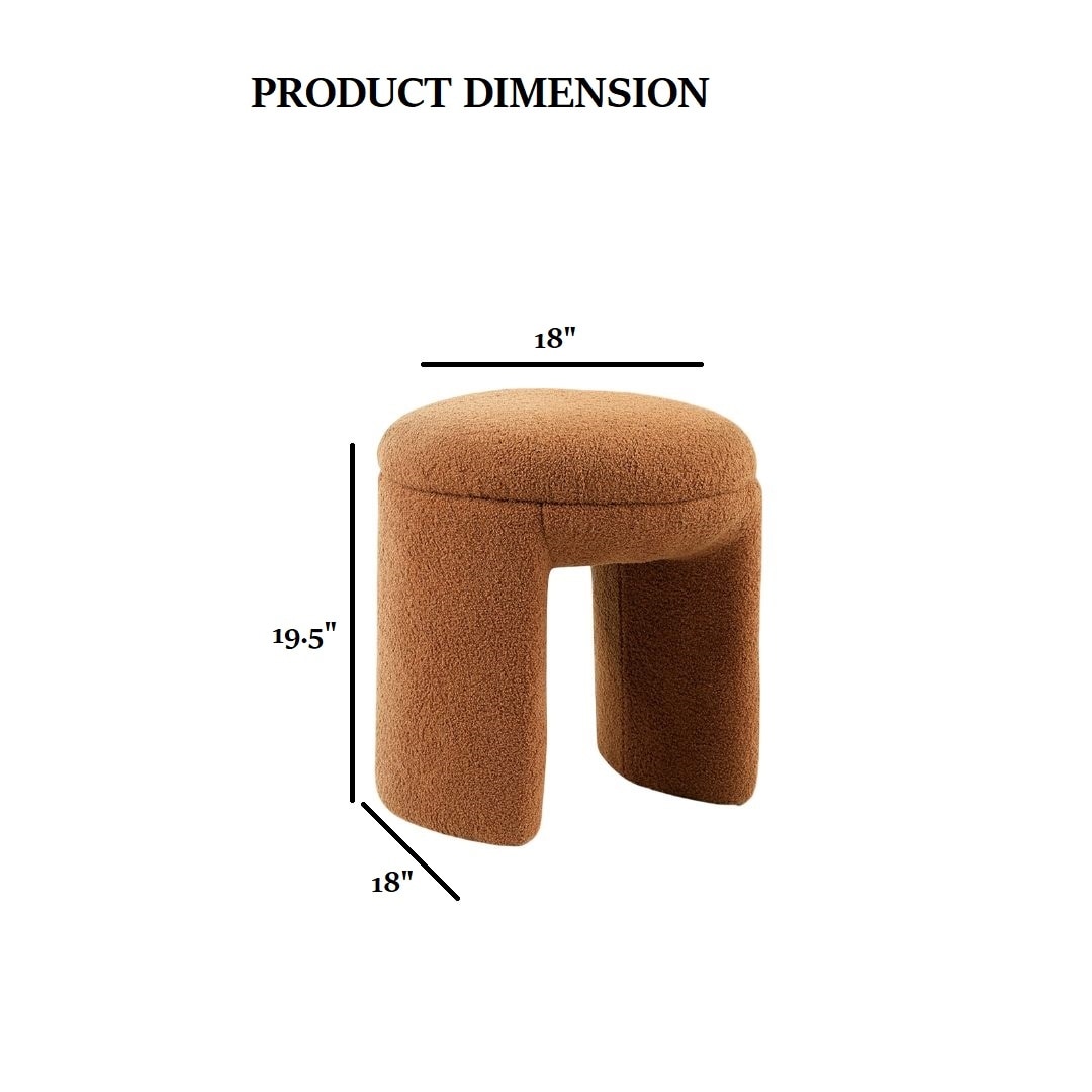 Contemporary Style Teddy Fabric Round Top 1pc Accent Stool Bench Design White Finish Primary Living Room