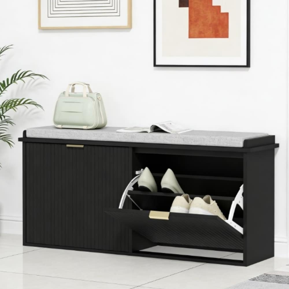 Classic Fluted Shoe Bench with Cushioned Top & Three Drawers by Harper&Bright Designs