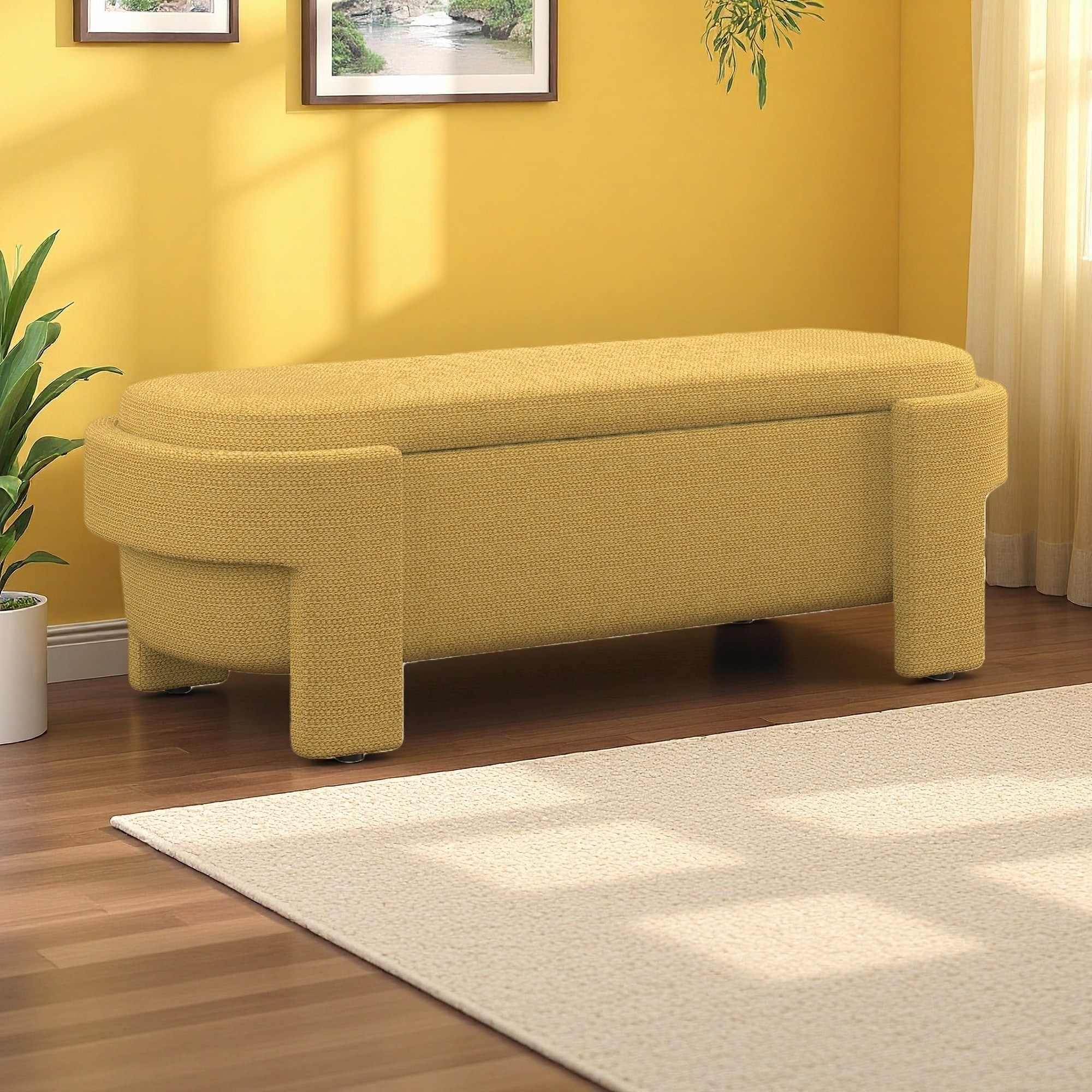 51.5"L Large Linen Upholstered Storage Bench with Foam Seat and Turned Legs, with Extra Storage for Living Room, Bedroom