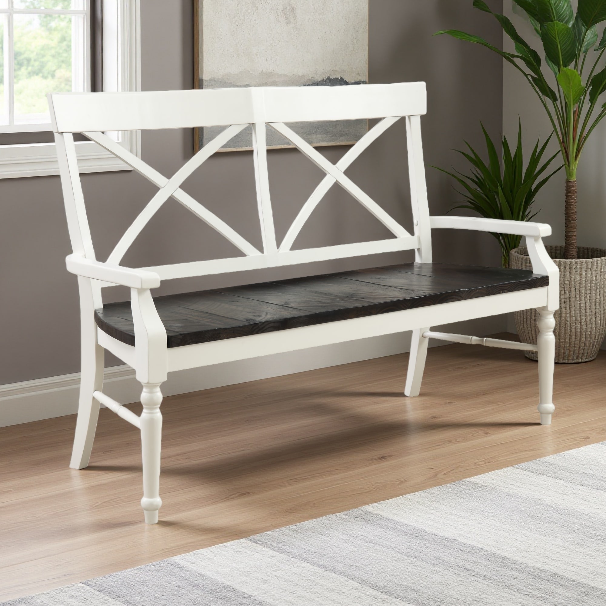59"L Long Country Style Bench in Dark Mocha & Antique White with Easy Assembly