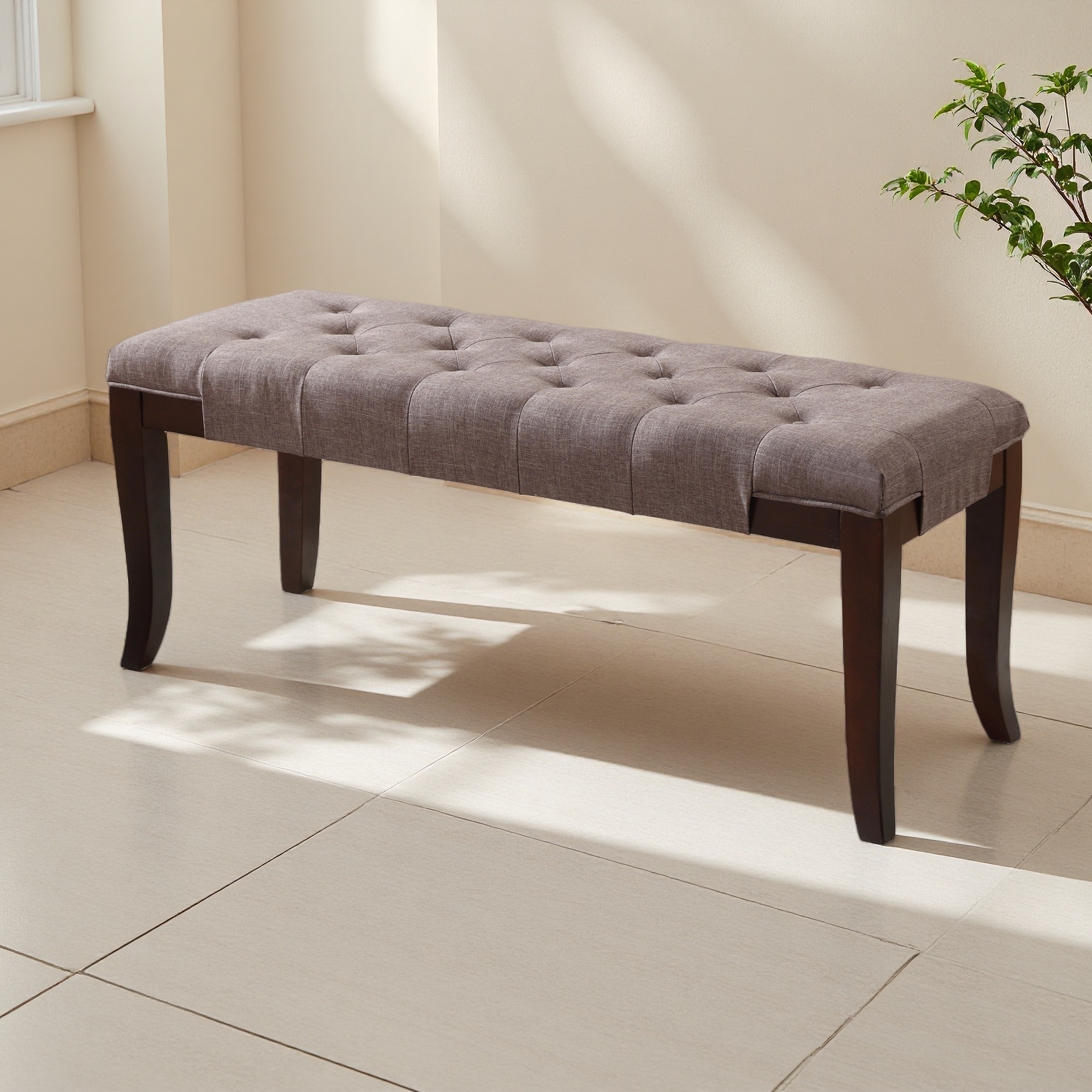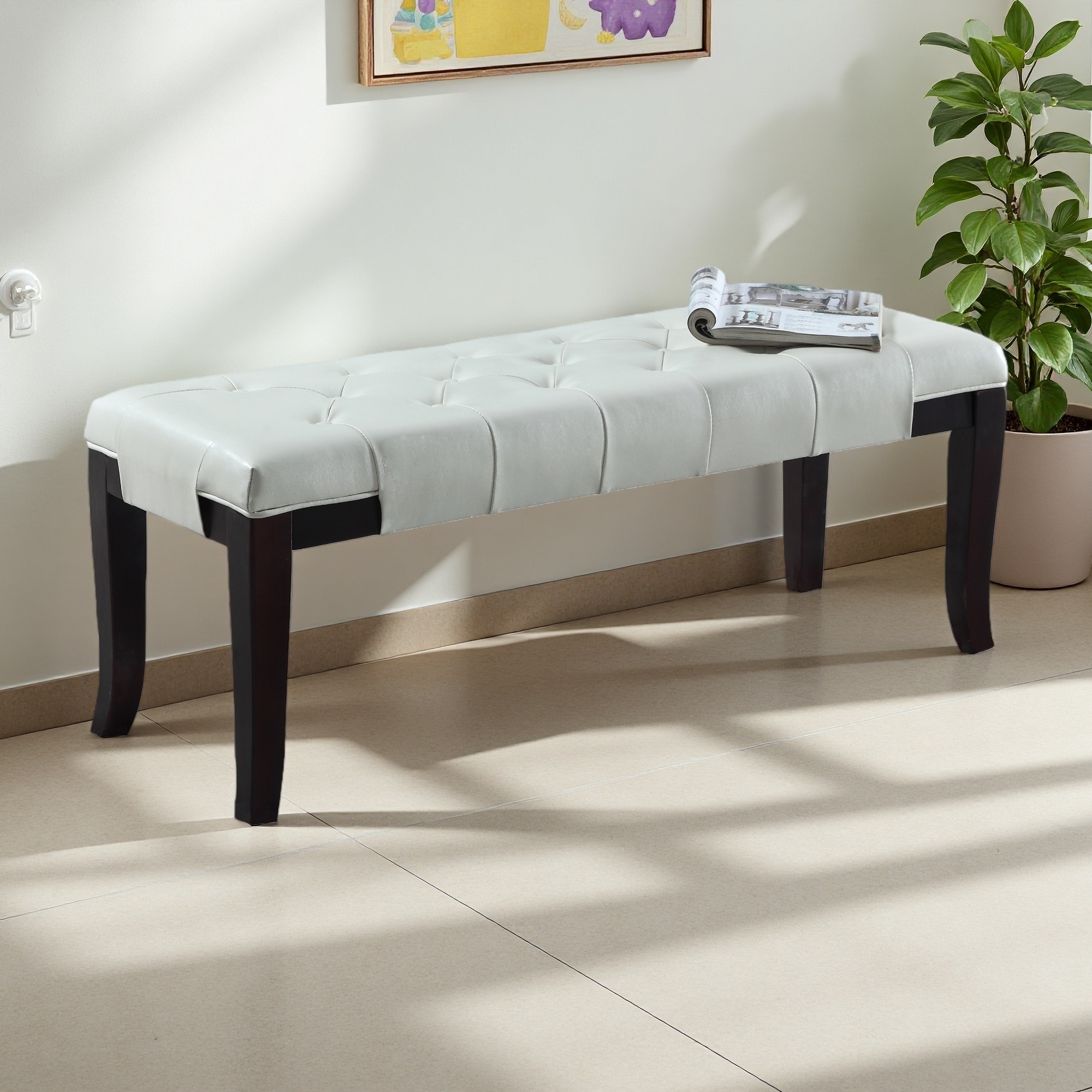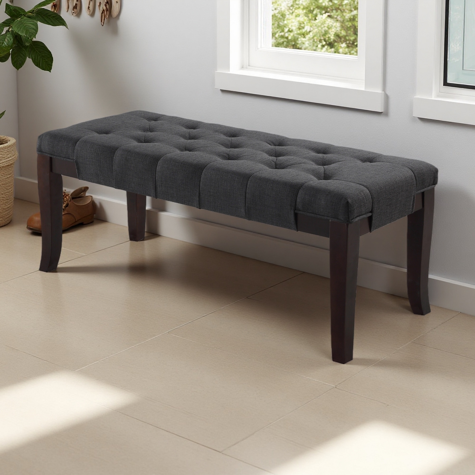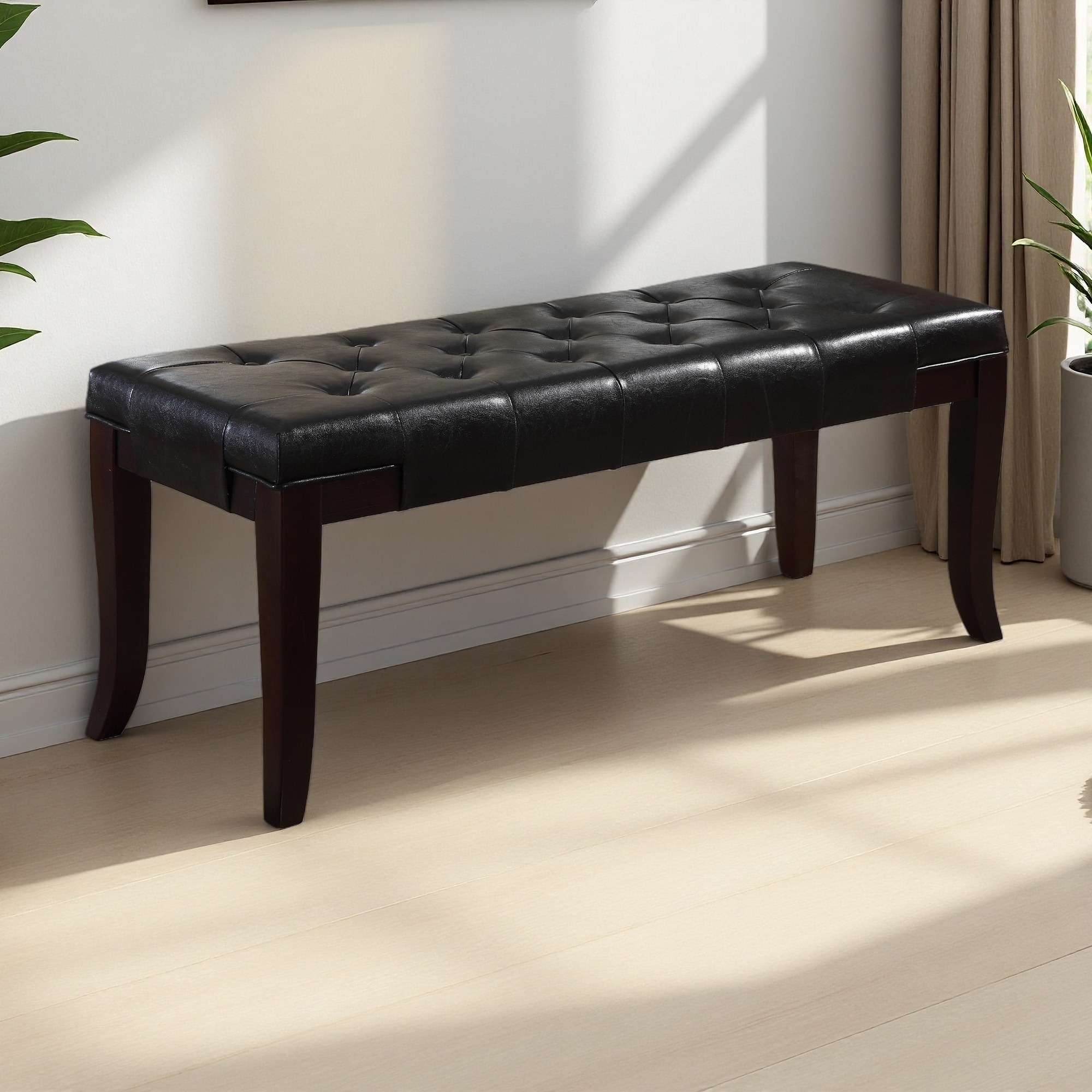 44"L Linon Tufted Bench, Faux Leather Upholstery, Hardwood Legs, Elegant Ottoman Design
