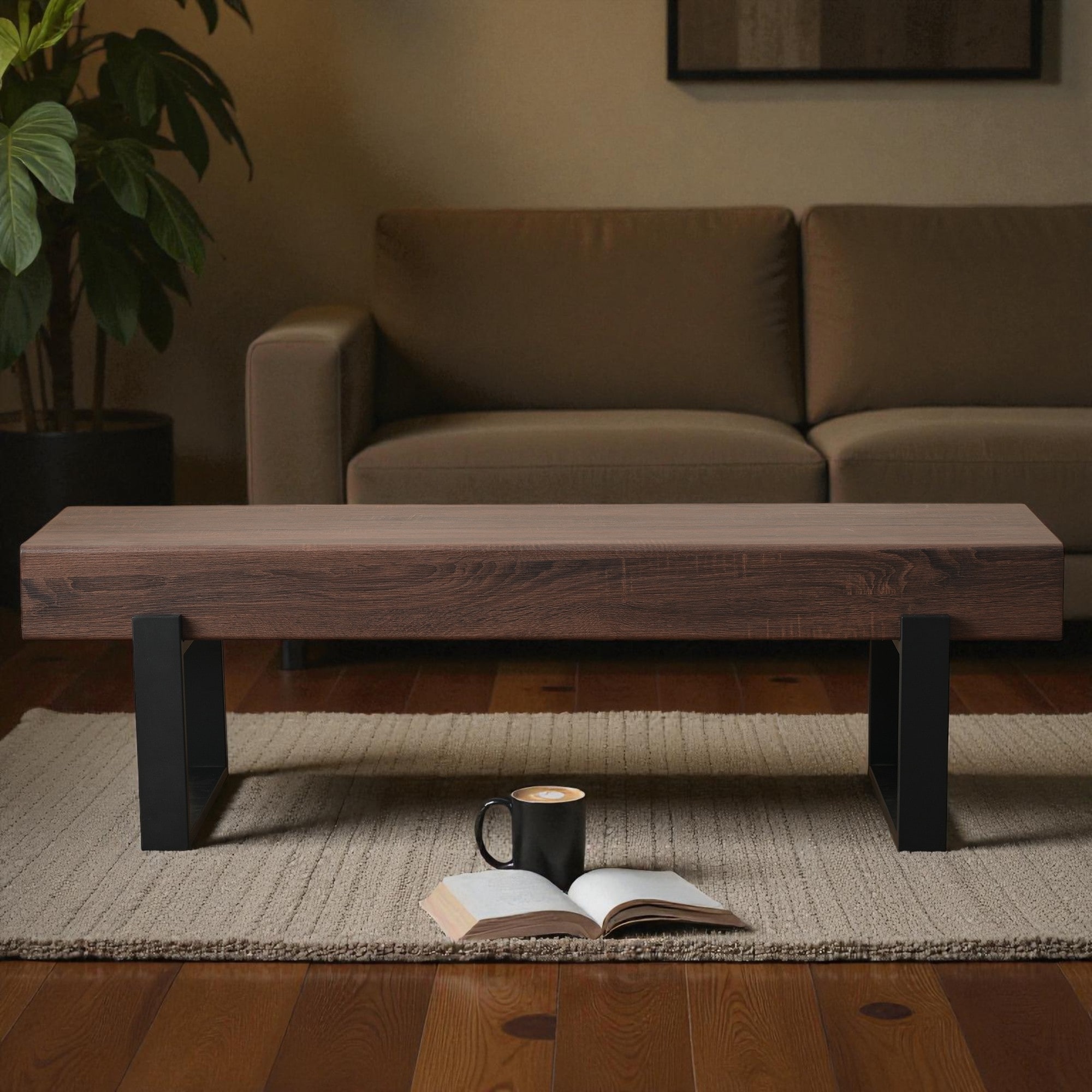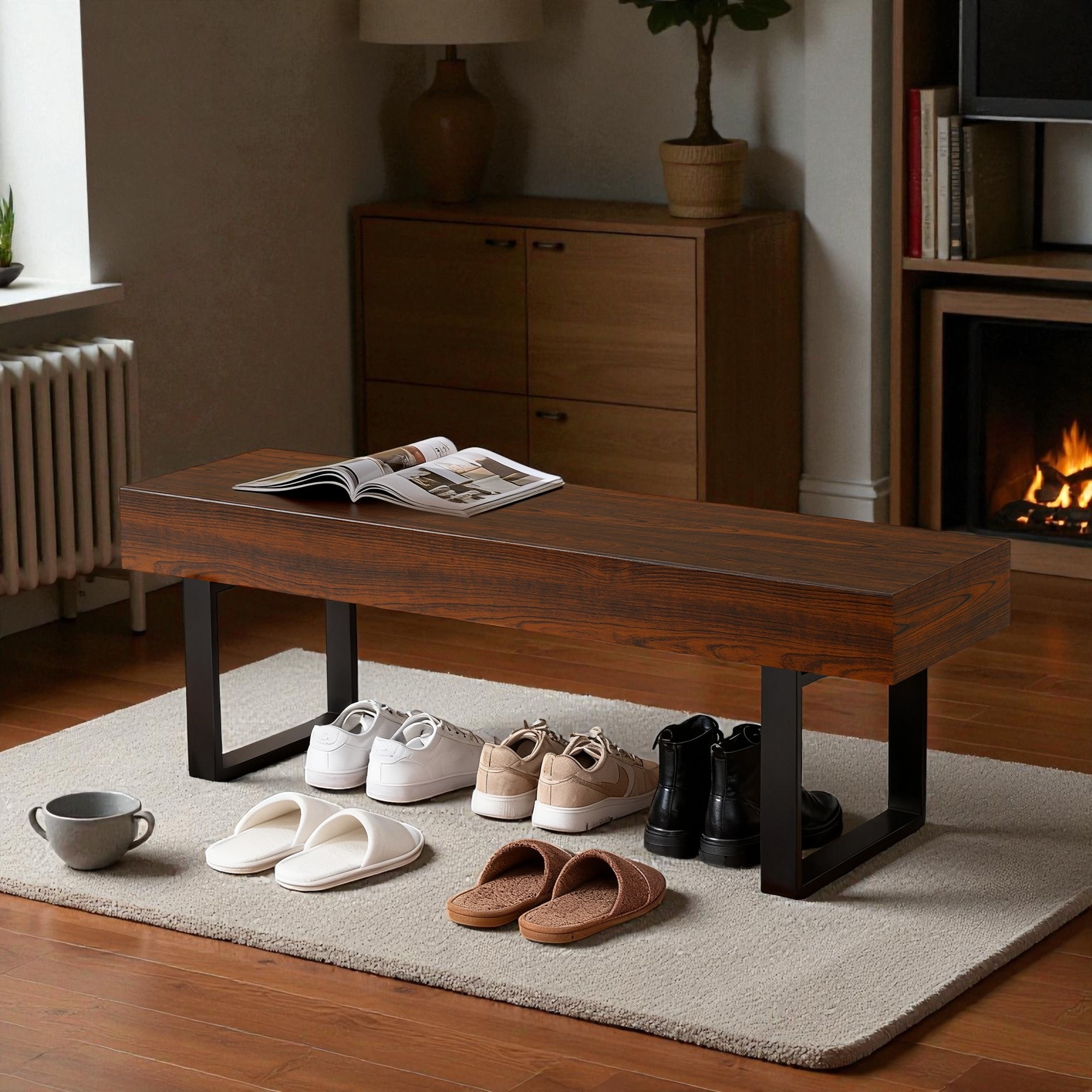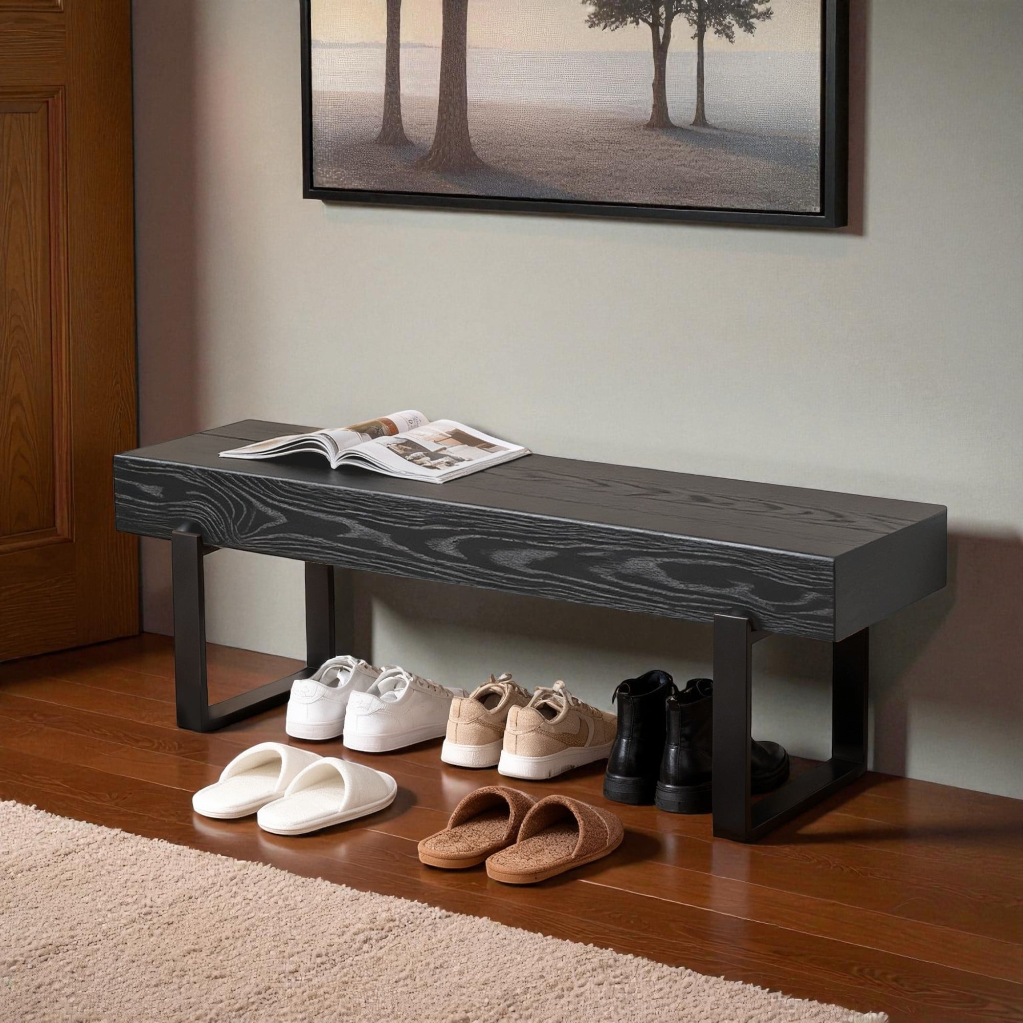 59" Farmhouse Living Bench with MDF Seat and Metal Legs, Entryway Bed Bench or Industrial Shoe Bench for Kitchen and Hallway