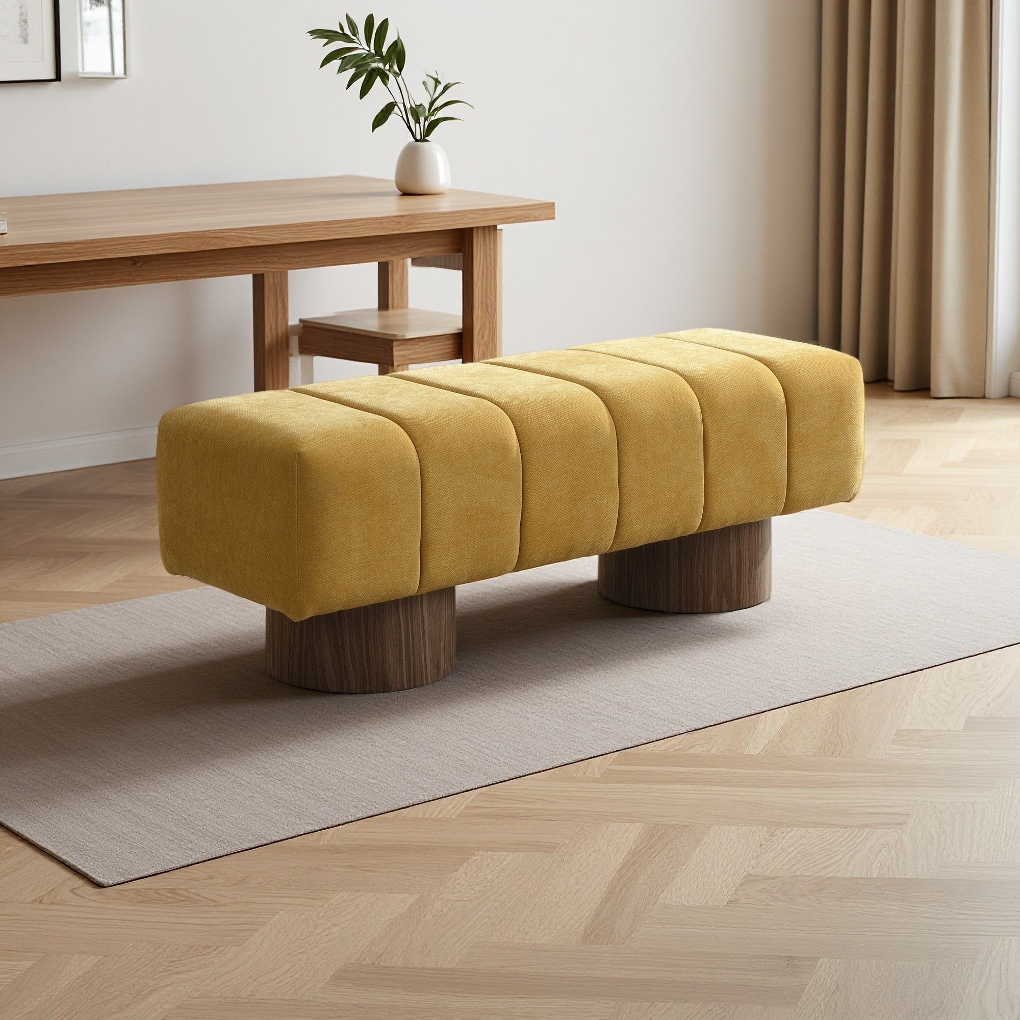 50"L Upholstered Dining Bench Chenille Fabric, High-Density Foam, Wood Legs, No Assembly, Multi-Functional for Dining Room