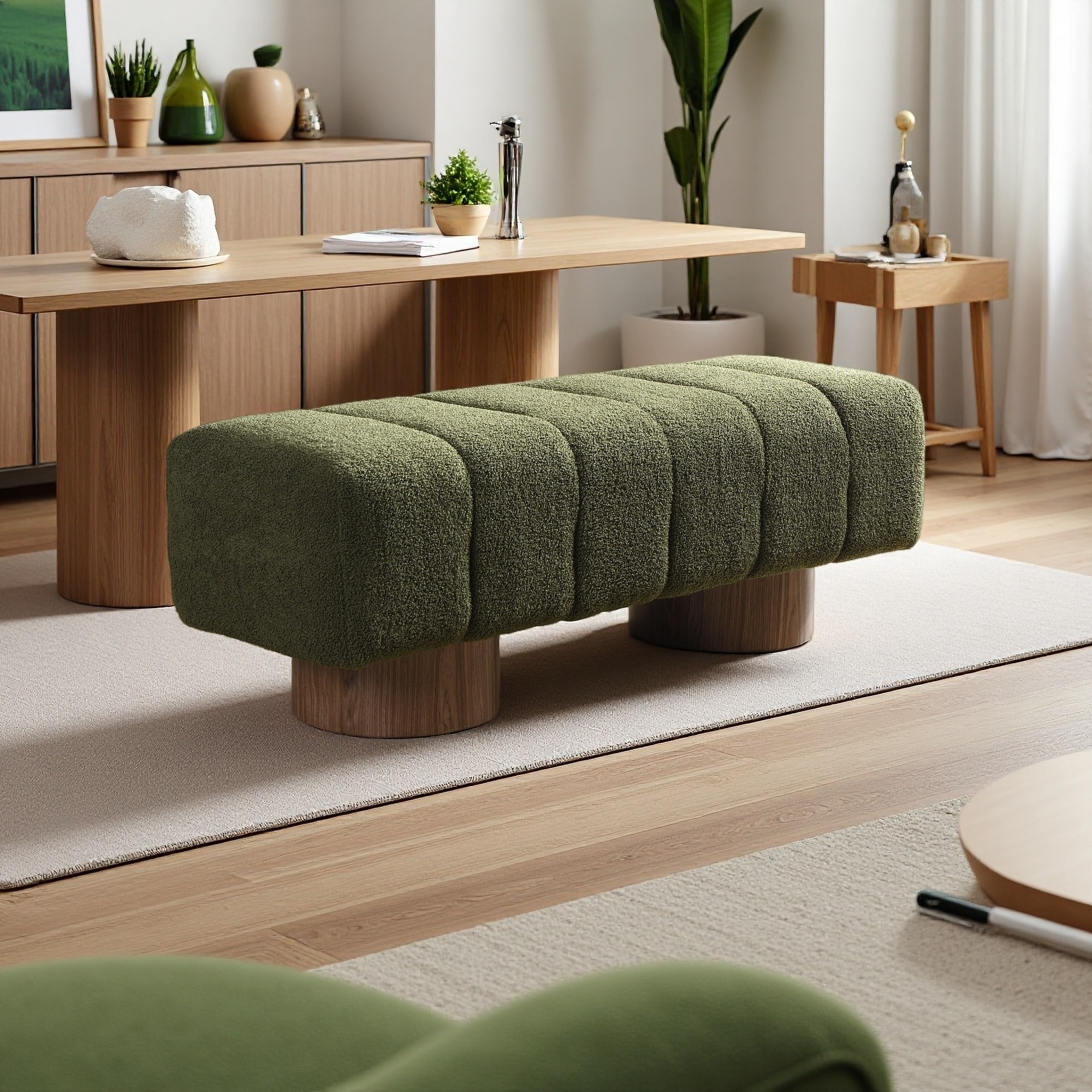 50"L Upholstered Dining Bench Boucle Fabric, High-Density Foam, Wood Legs, No Assembly Required - Multi-Functional for Entryway