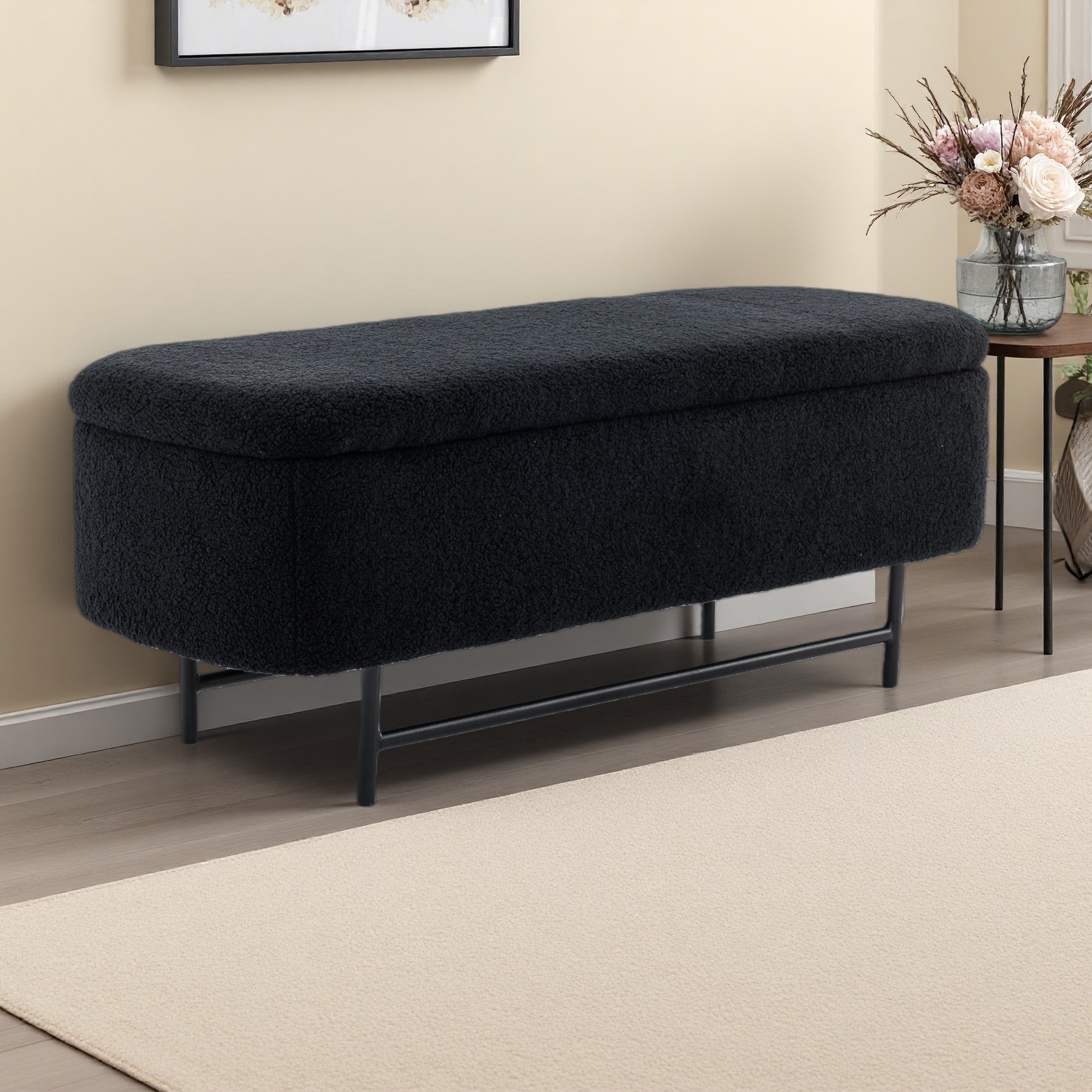 44"L Storage Bench, Soft Upholstered Fabric, Large Capacity, Rubberwood Legs, Safety Lift-Top, for Living Room/Bedroom/Entryway