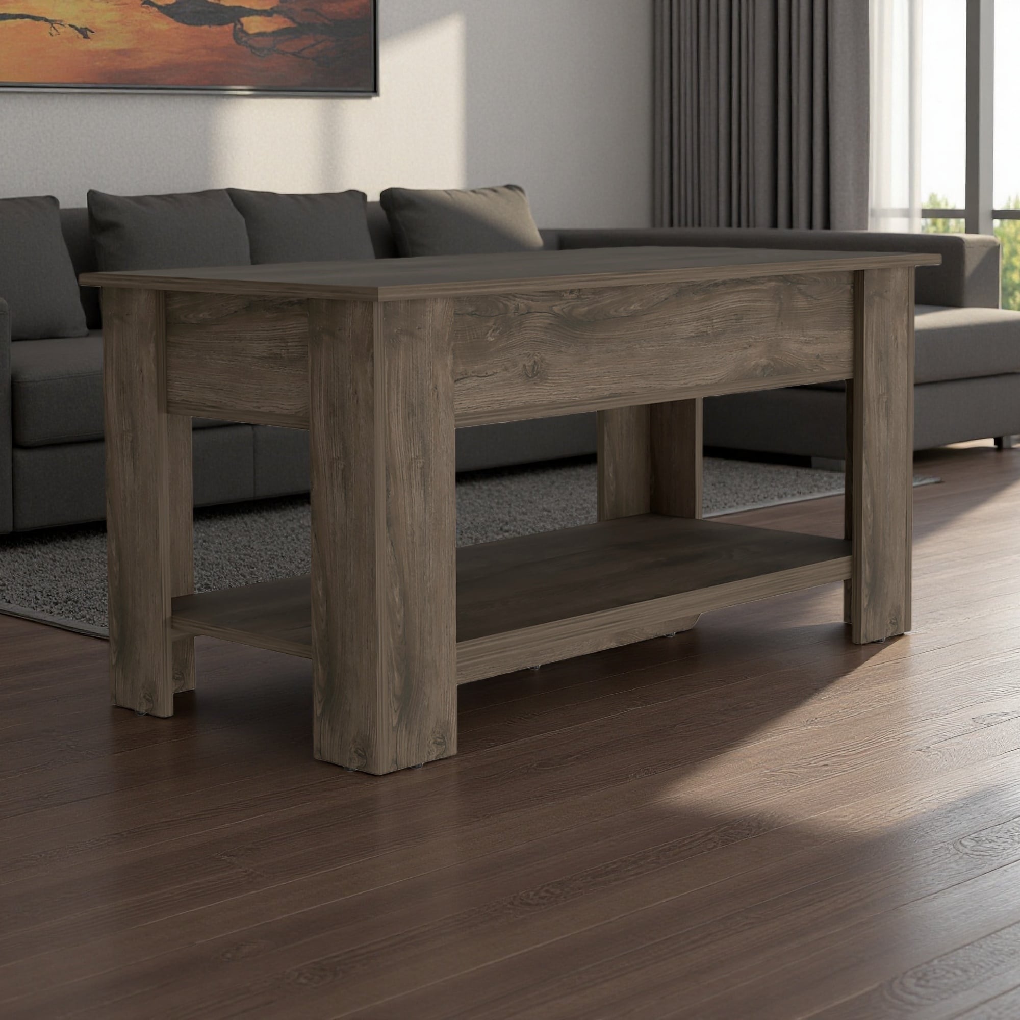 40"L Storage Table, Liftable Top, Metal Hinges, Four Legs, Lower Shelf, Shoe Rack, For Entryway, Living Room, or Bedroom