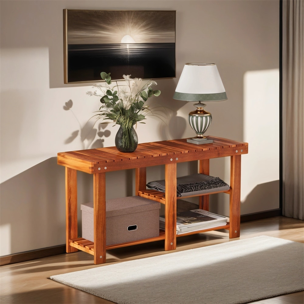 3-Tier Shoe Rack Bench Entryway Bench with Storage Shelves