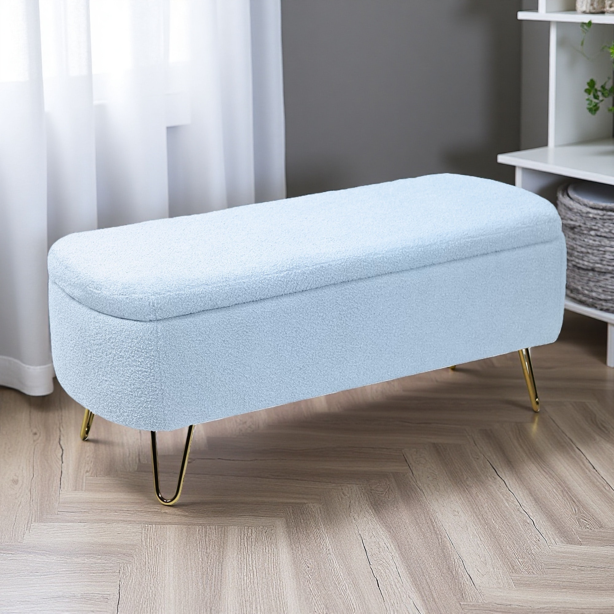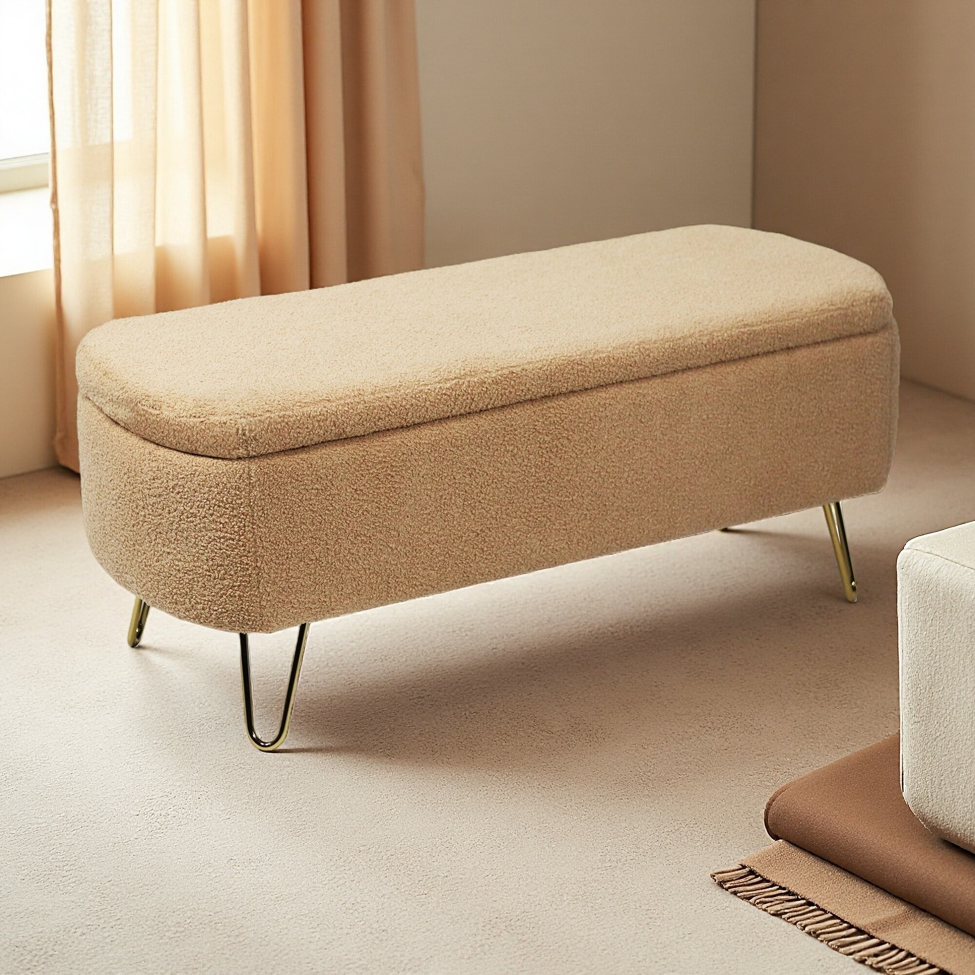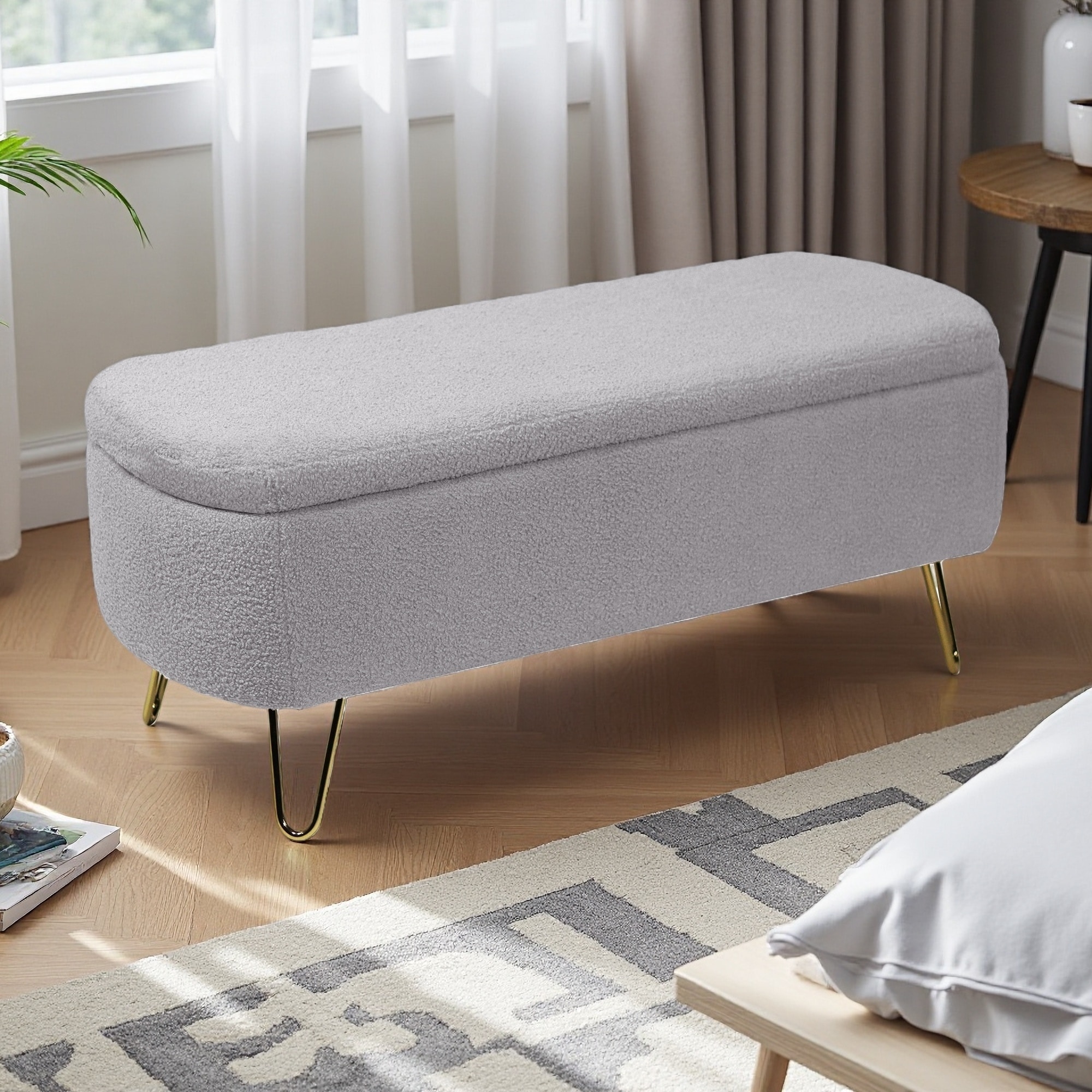 39"L Faux Fur Upholstered Storage Ottoman Bench for End of Bed, Padded Entryway Bench with Safety Hinge, Versatile Seating