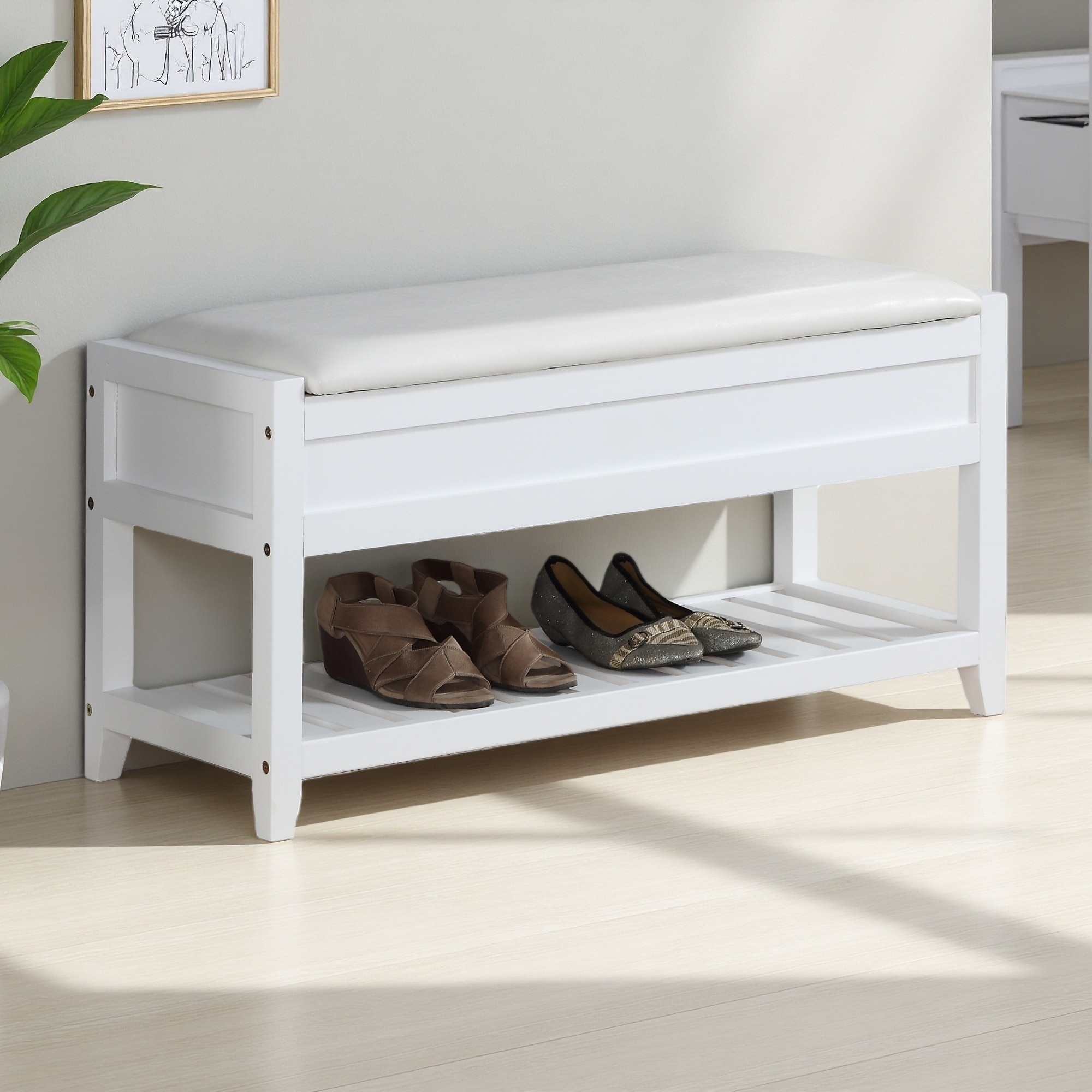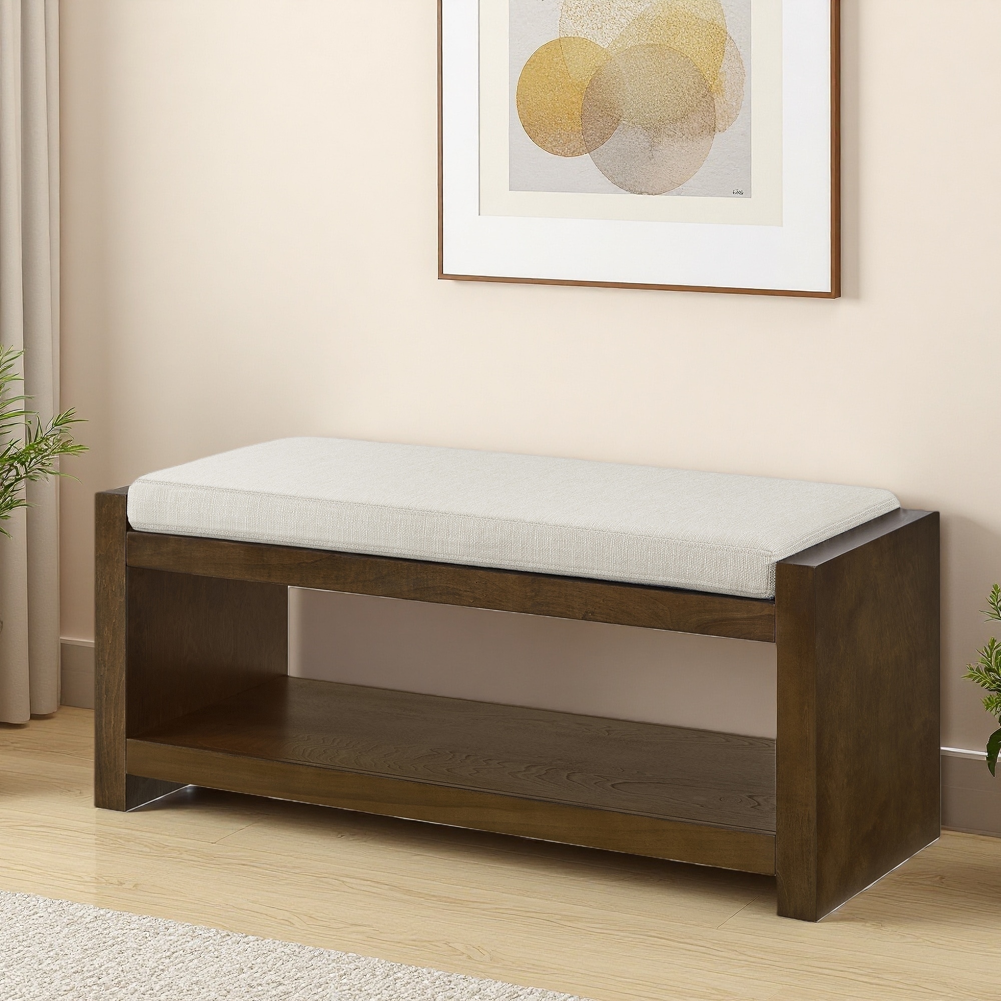 40"L Accent Bench with Lower Shelf Shoe Rack, Padded Seating for Living Room & Bedroom, Removable Cushion, Modern Bed End Bench