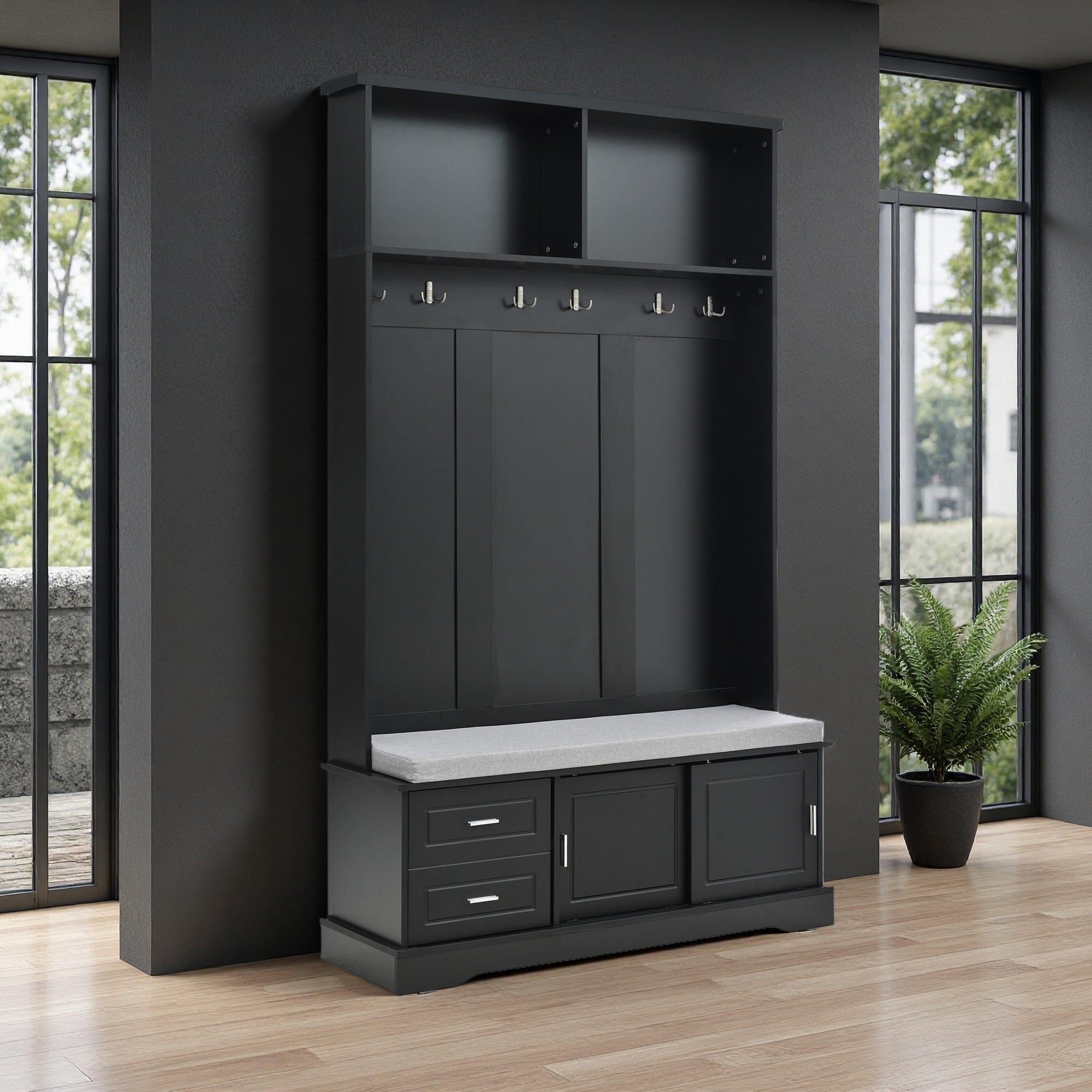 49.2"L MDF & Particleboard Hall Tree with Storage Shelves, Drawers, Cabinet, and Bench, Coat Rack for Entryways with Hooks