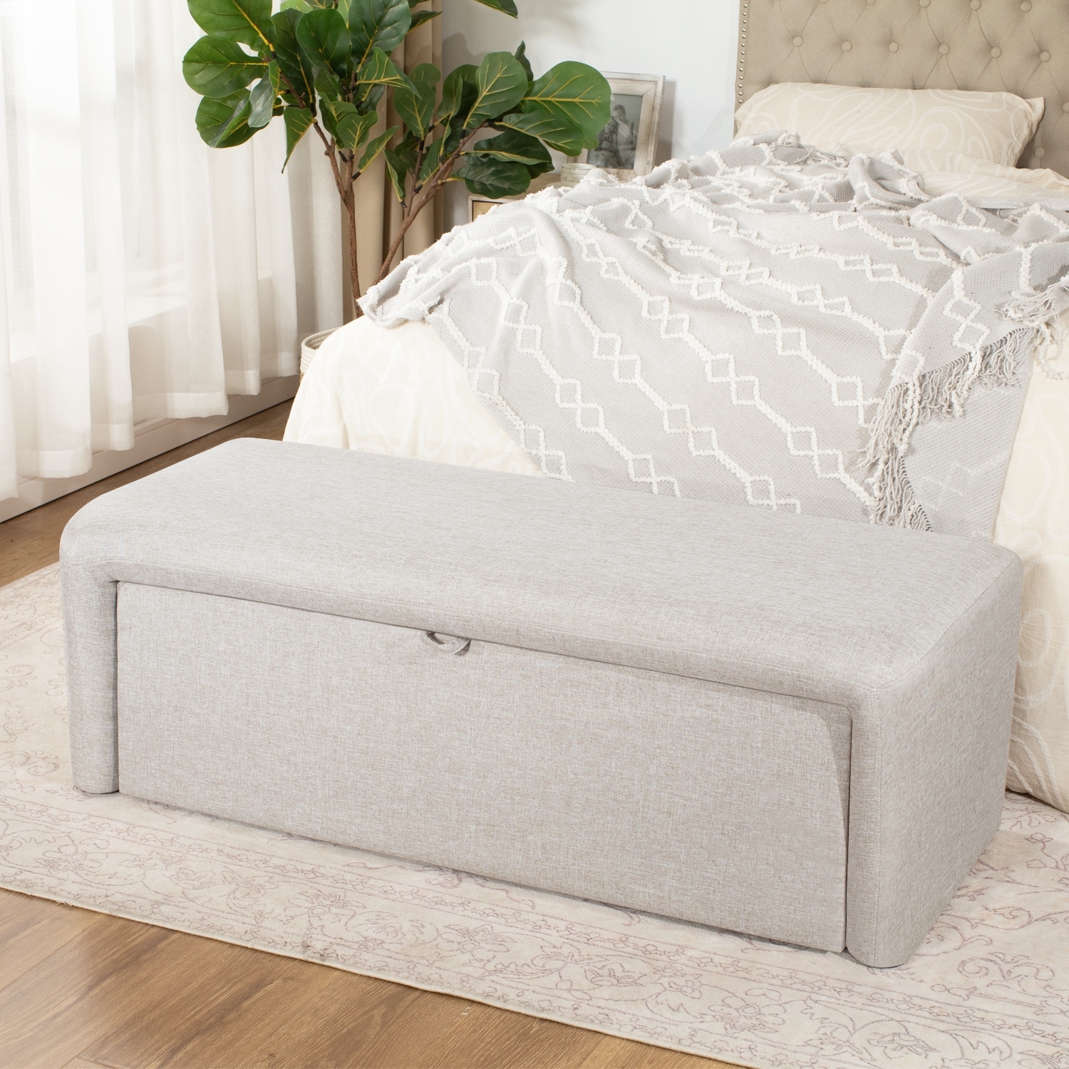 KISRAIS 43.5" Wide Fabric Storage Bench