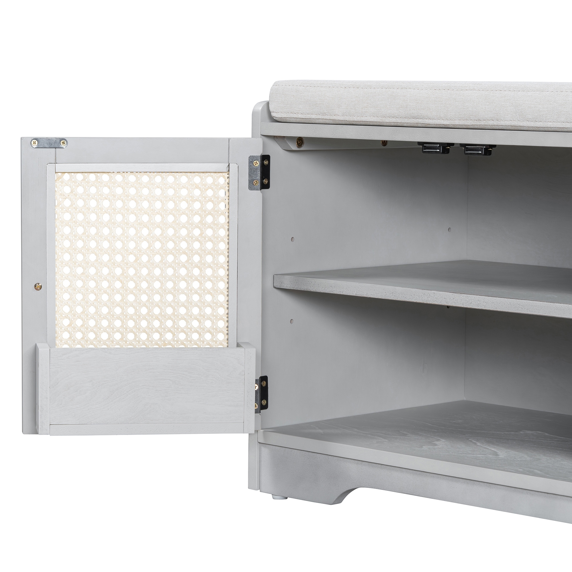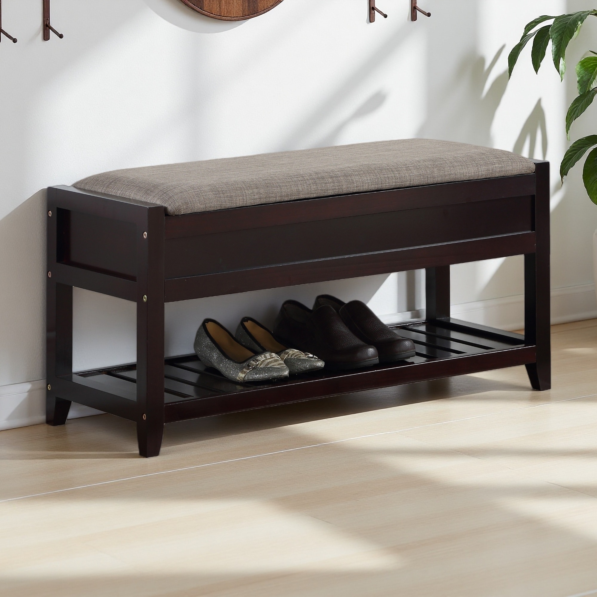 35.43"L Fabric Upholstered Bench with Wood Frame, Lift-Up Seat Storage, and Slatted Shoe Shelf