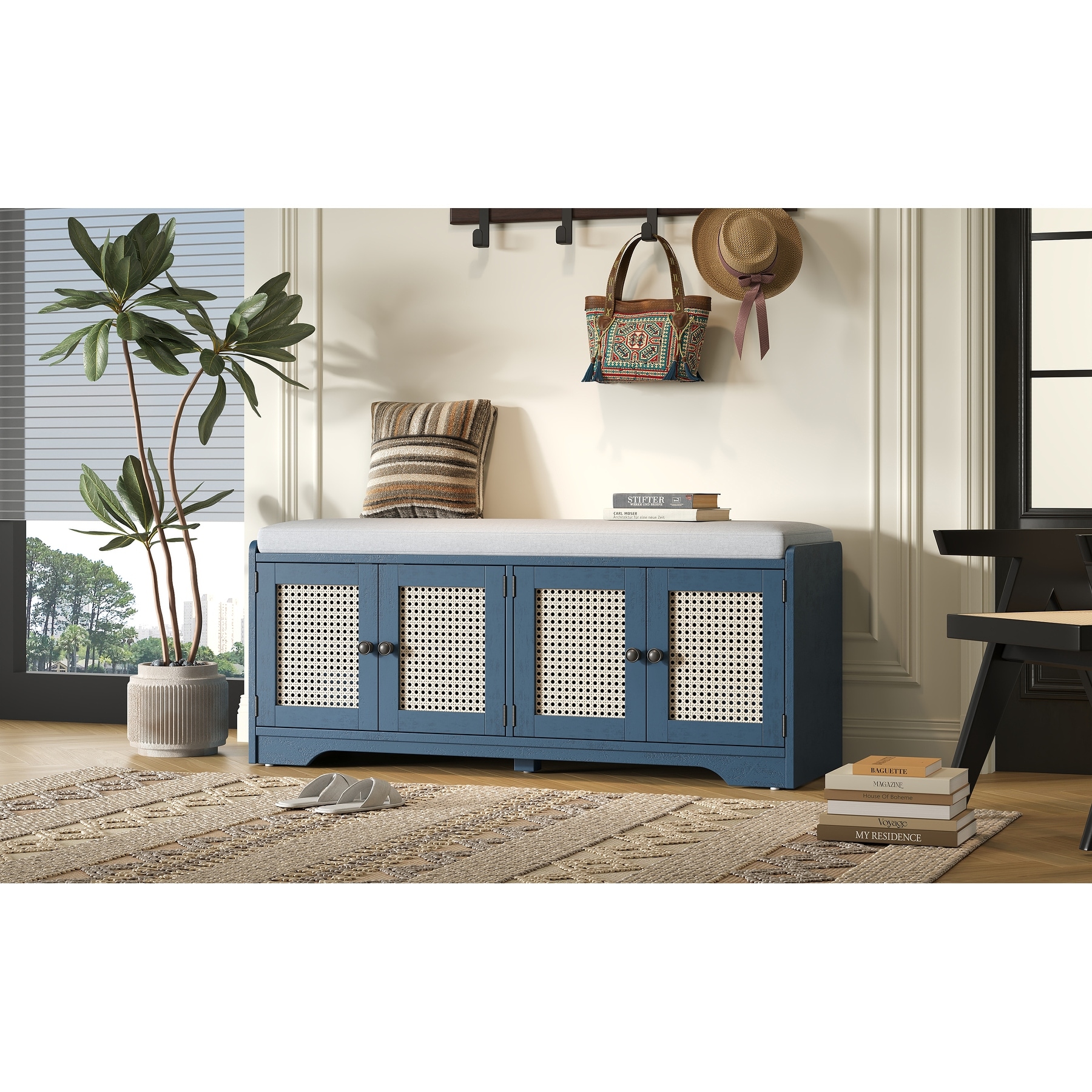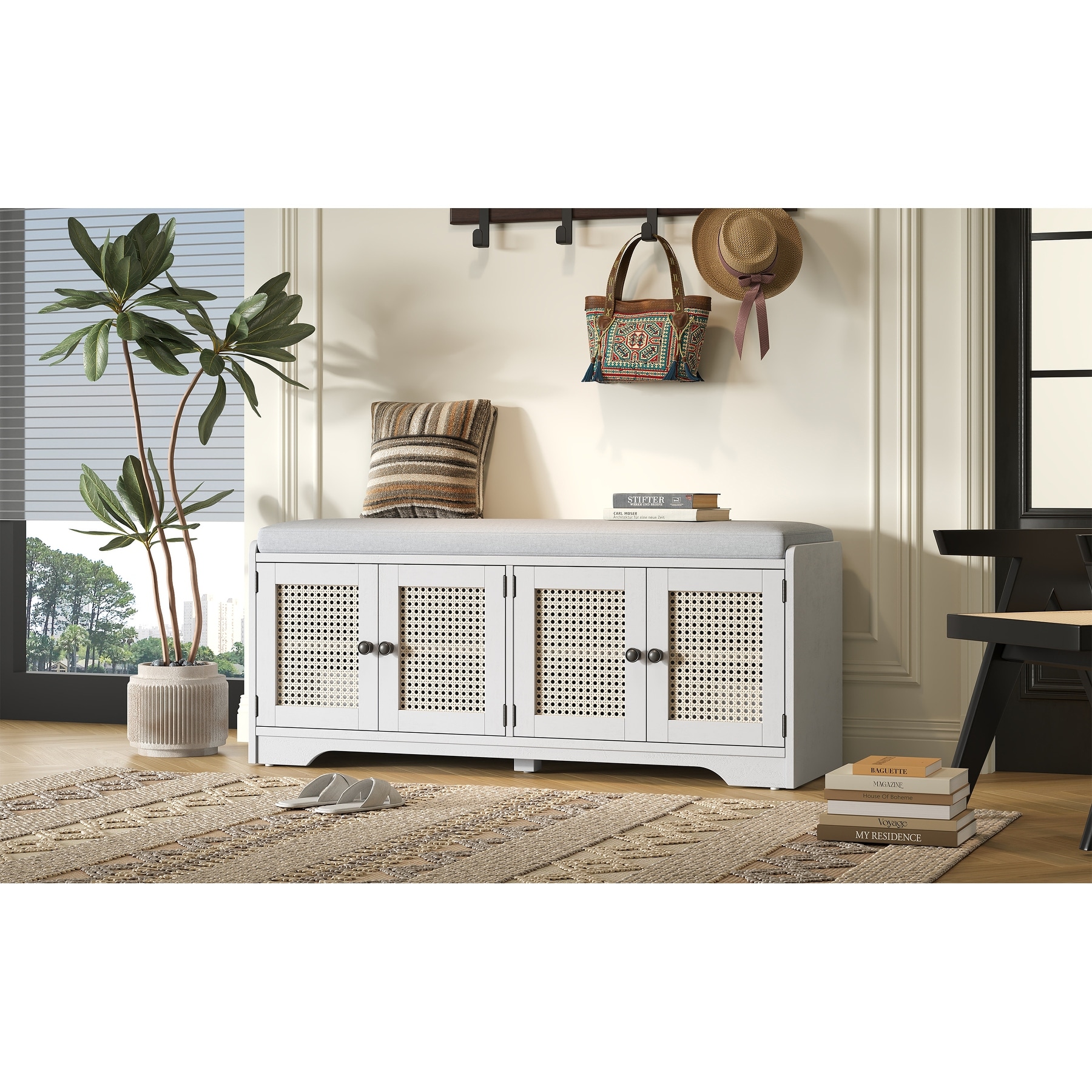 Modern Two-Tone Asymmetrical Shoe Storage Bench with Cabinet Doors - MDF Construction