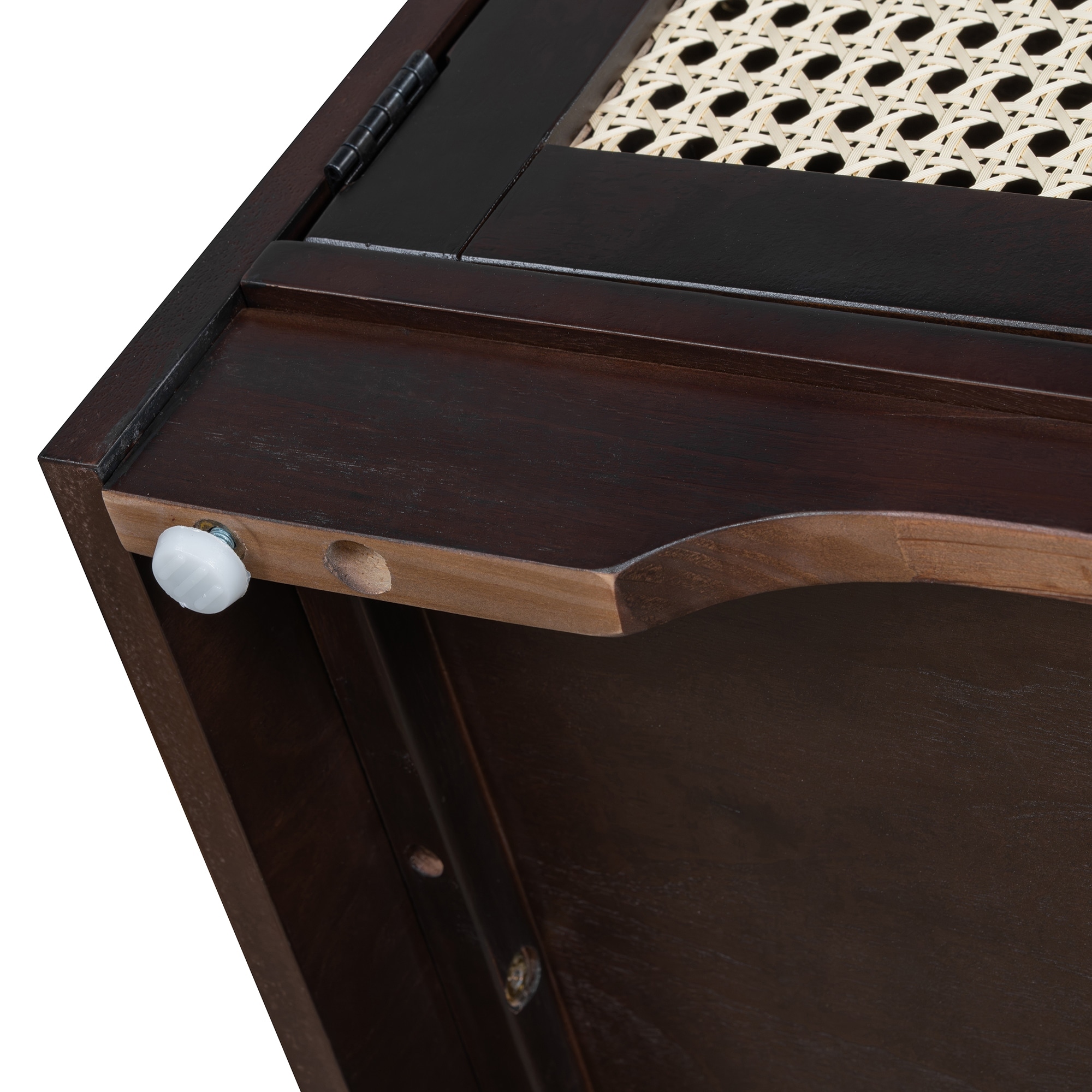 Living Room Side Cabinet with Bamboo Slats Door - Natural/White