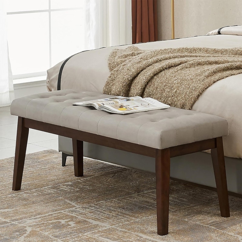 Semi-Circle Bed Bench with Tufted Design and Rubberwood Legs