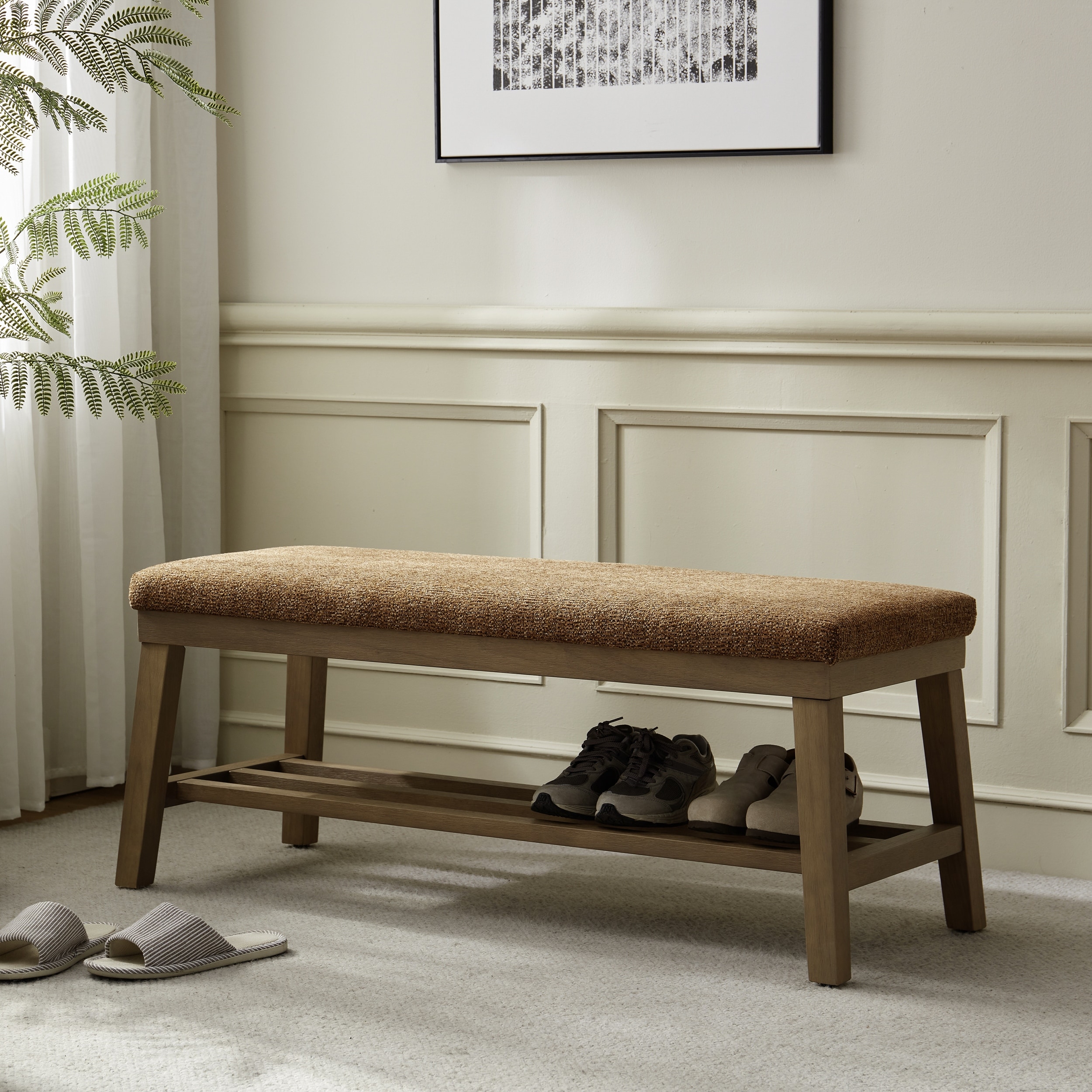 Entryway Shoe Bench Storage Bench Fabric Solid Wood, 43-inch Upholstered Bench for Living Room, Bedrooms