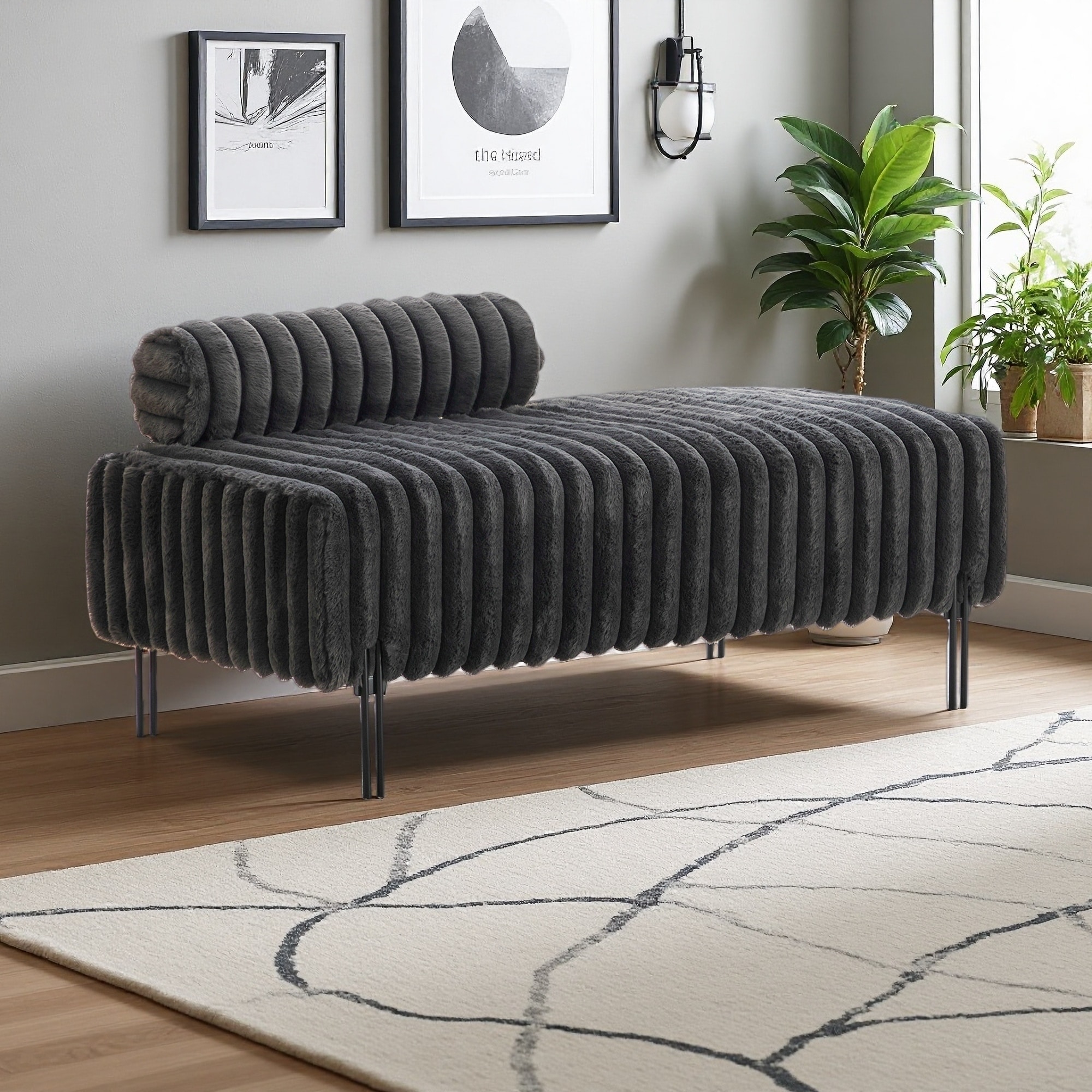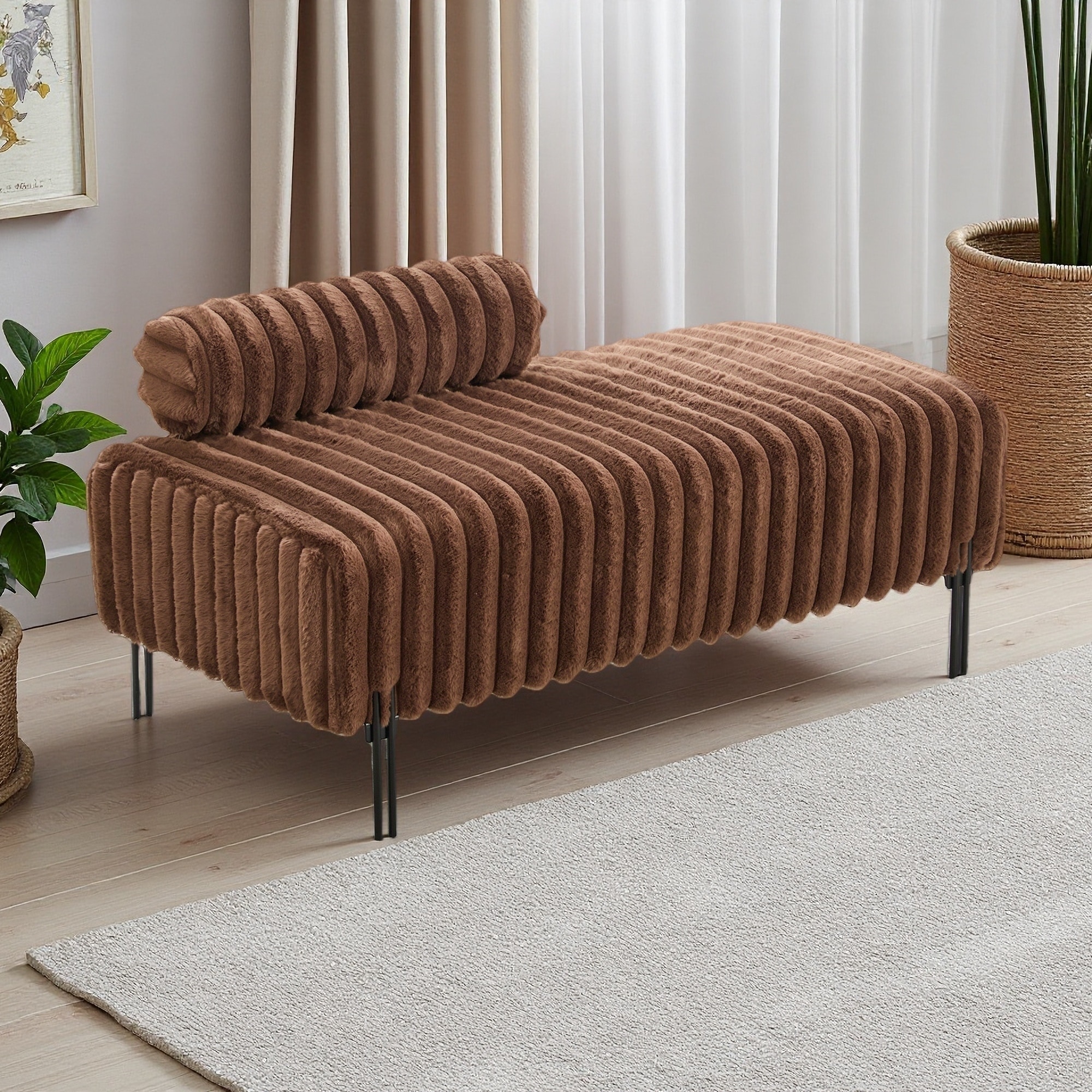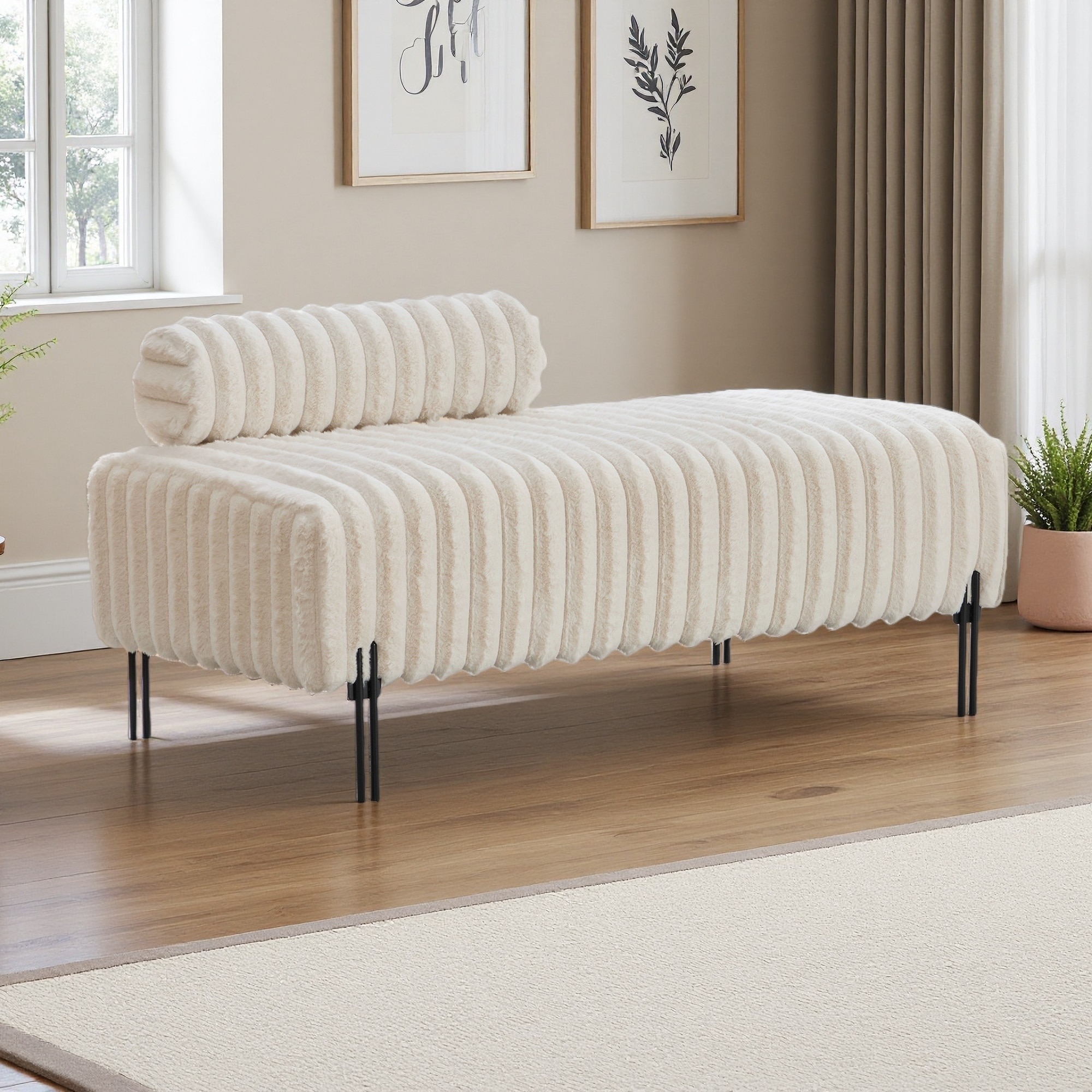 49.6"L Faux Fur Upholstered Mini Loveseat with Metal Legs, Adjustable Backrest, 2-Seater Small Sofa for Living Room, Bedroom