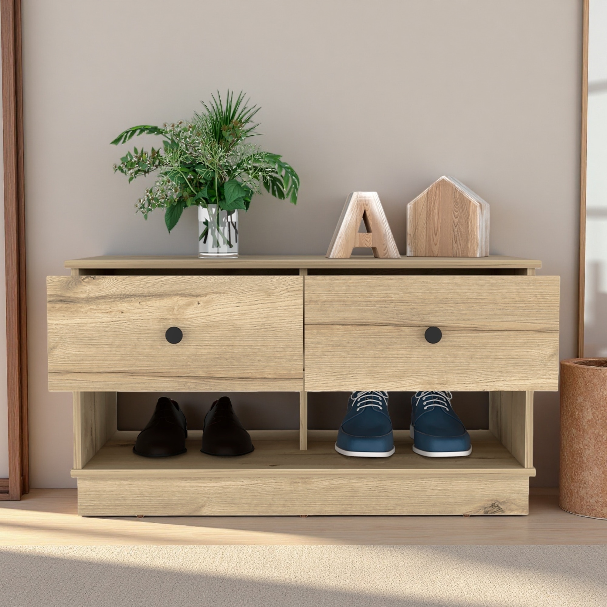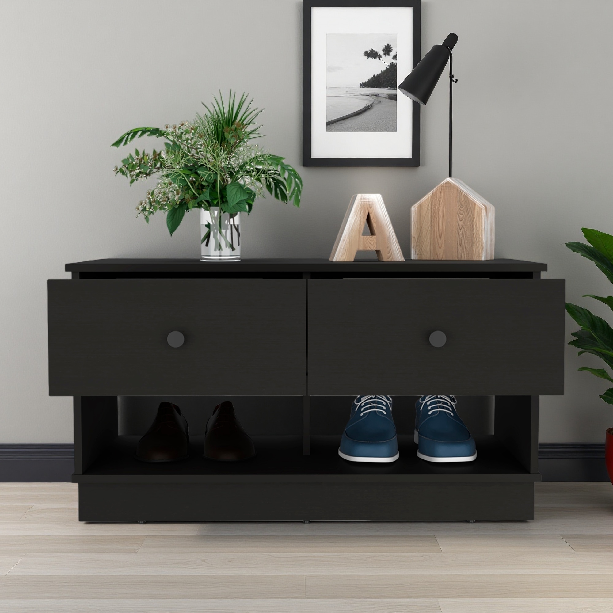35.8"L Storage Bench Beji with Two Drawers & Lower Shelf, with Storage Space, Elegant Design